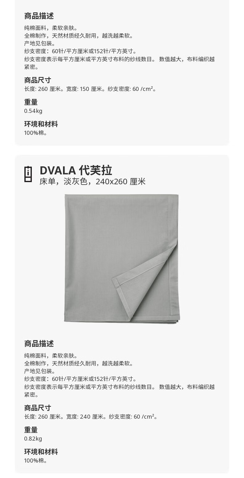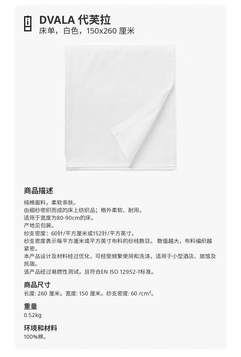 宜家(IKEA)【新品】SCHERSMIN斯奇斯敏被套枕套被套单件纯棉被罩 白色单被套和枕套150X200cm+床笠0.9m床