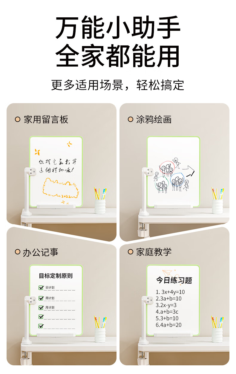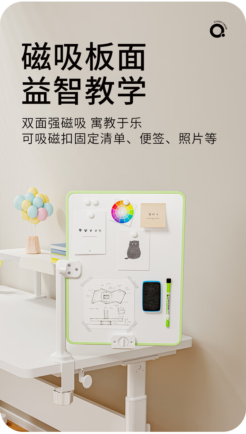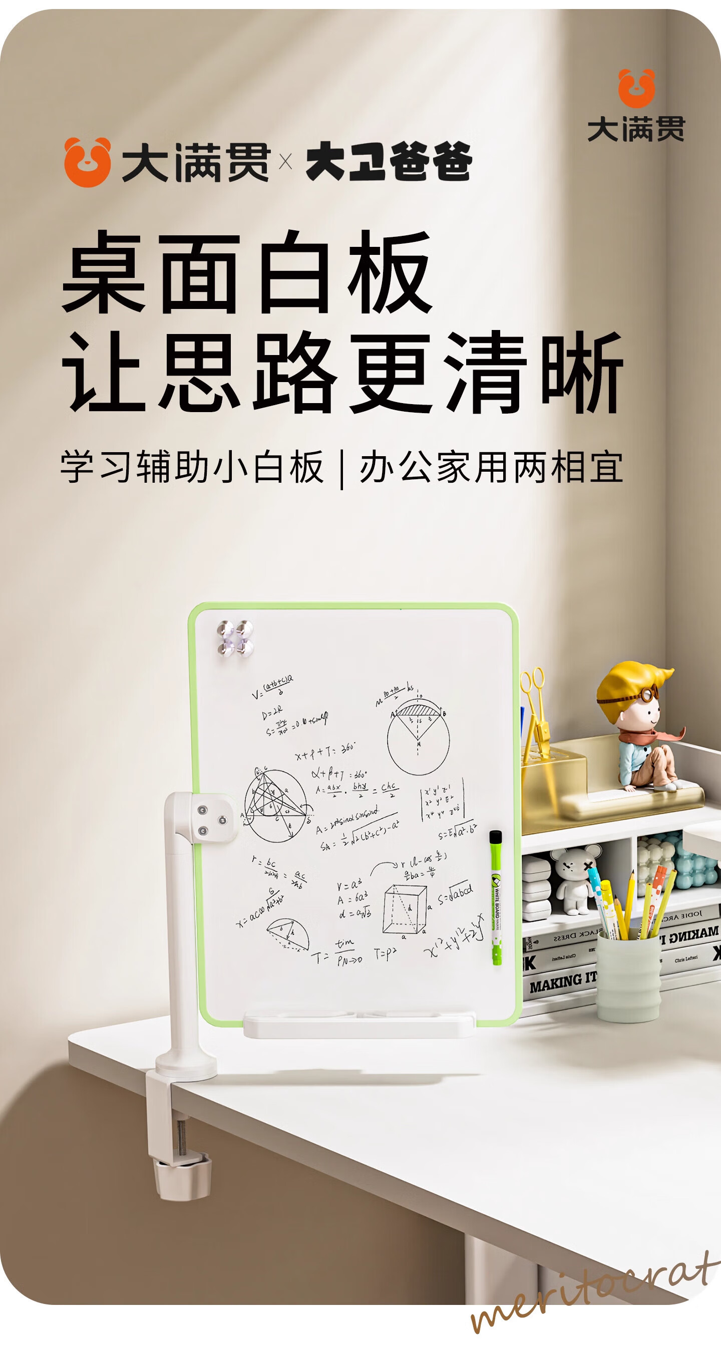 大满贯【大卫爸爸联名款】写字板白板儿童学习桌移动双面磁吸学习辅助板 41*31cm【绿边】带阅读架