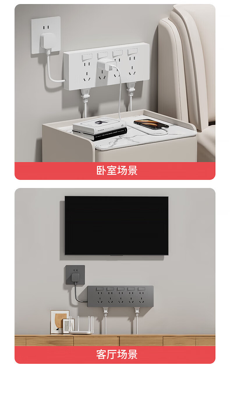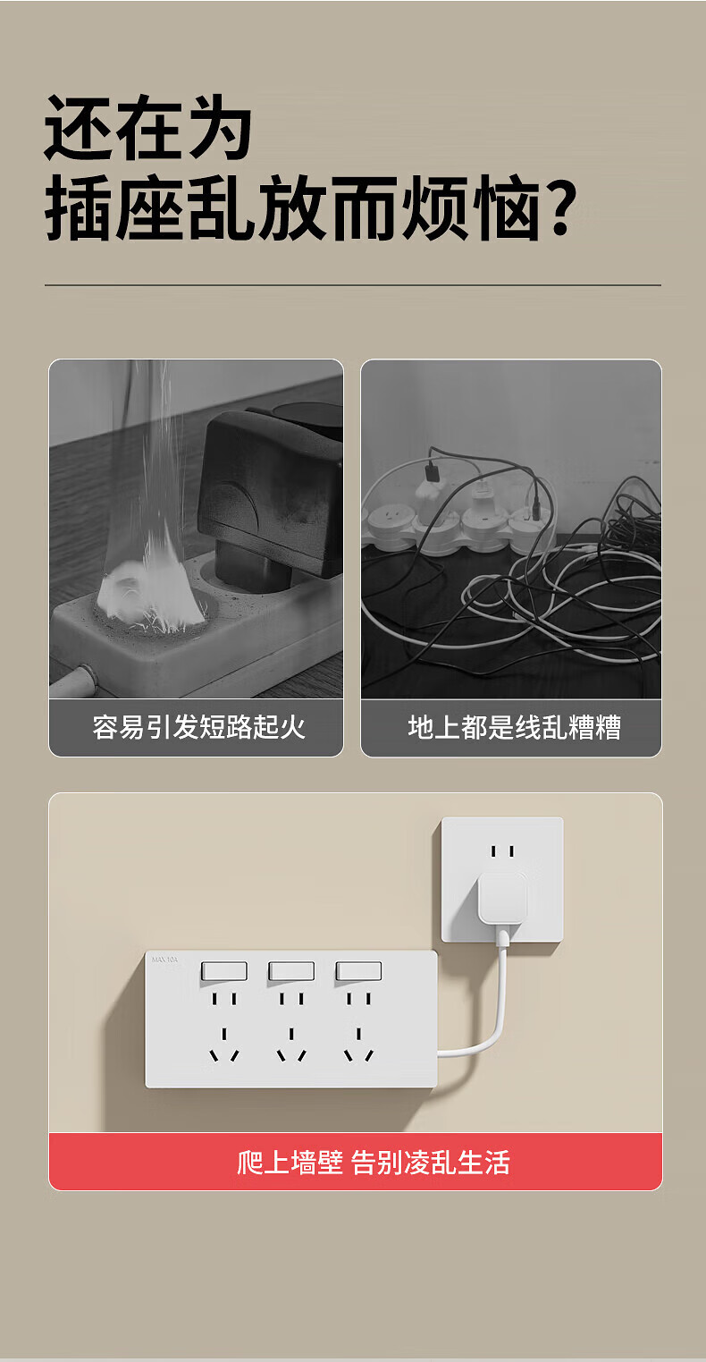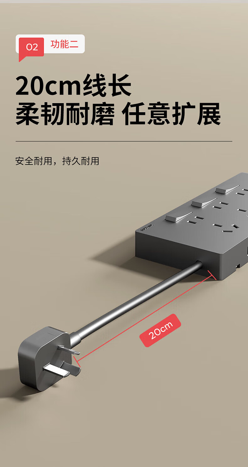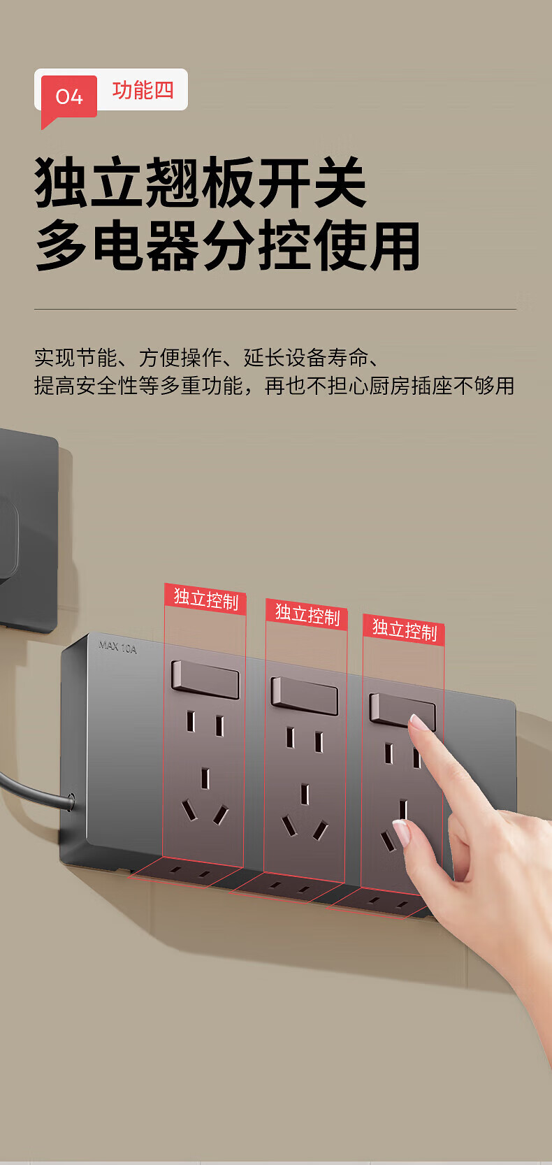 国际电工家用86型扩展插座带电源线厨房多功能墙壁拓展转换插座插排插线板 21孔向左扩展插座-白色三开分控+20厘米线