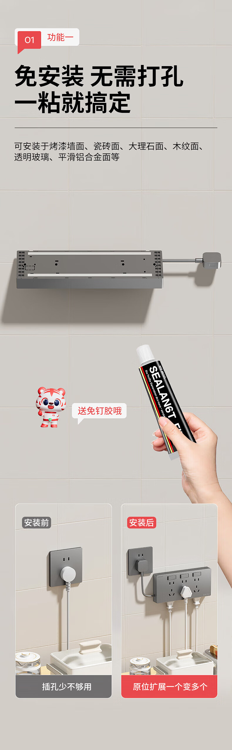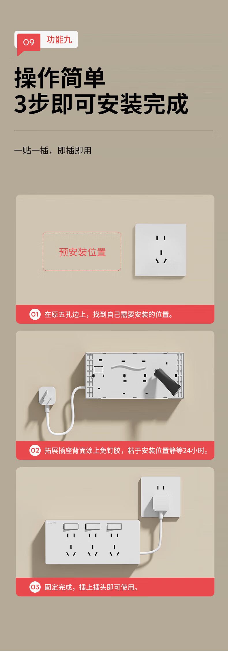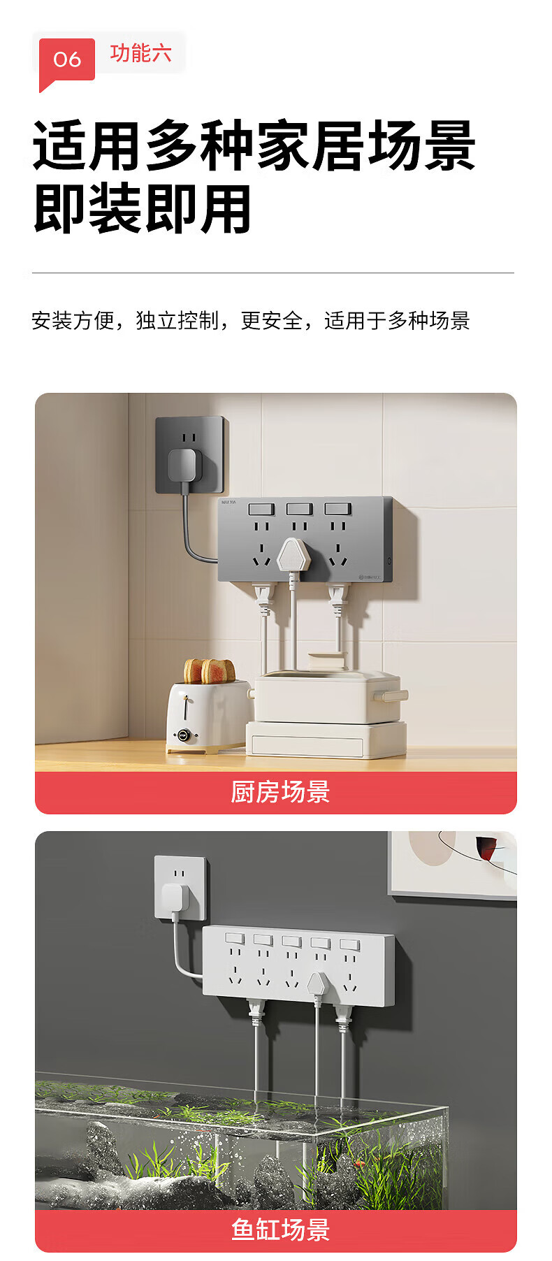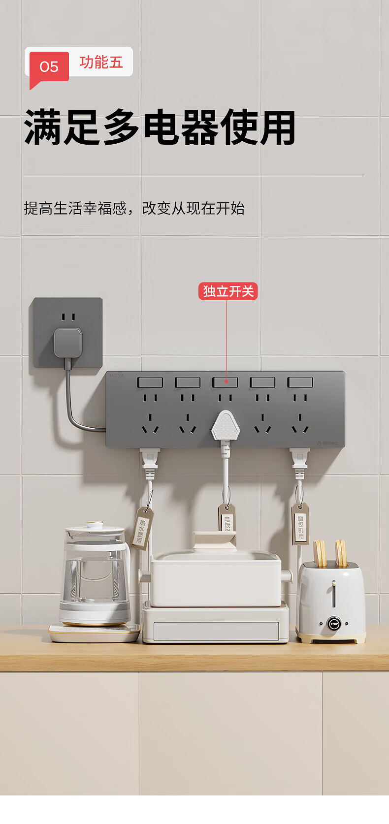 国际电工家用86型扩展插座带电源线厨房多功能墙壁拓展转换插座插排插线板 21孔向左扩展插座-白色三开分控+20厘米线
