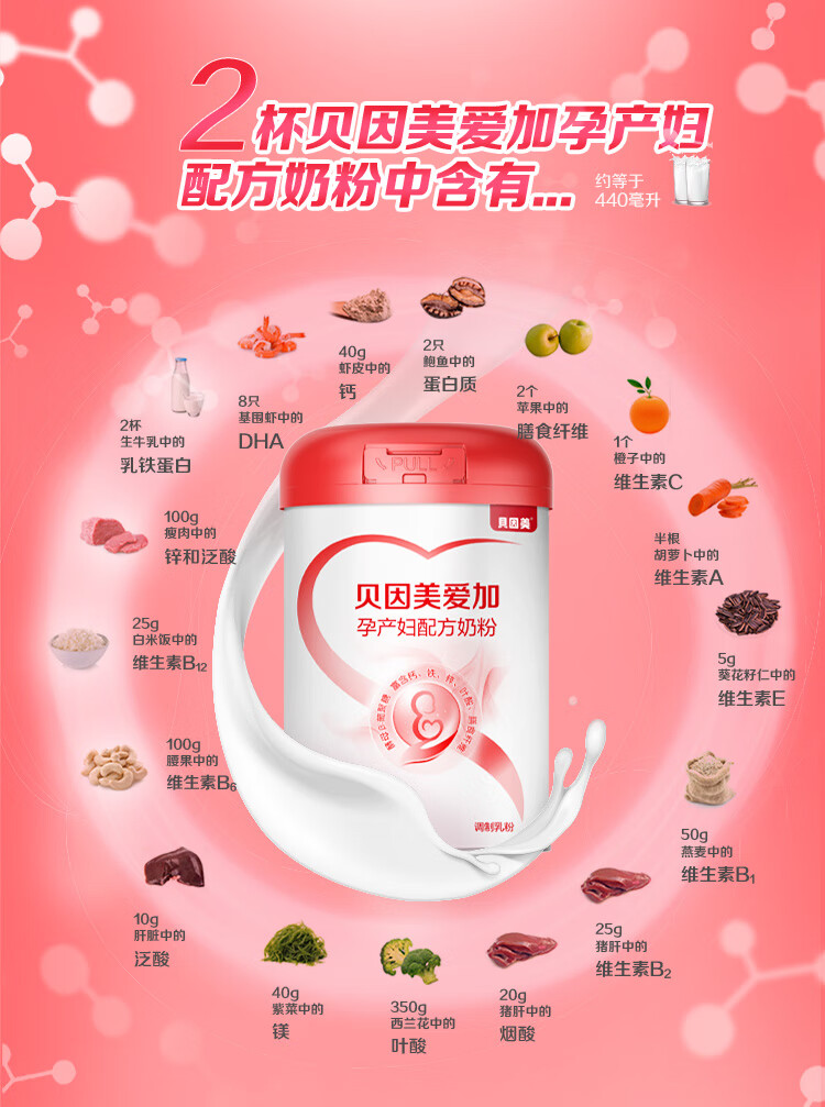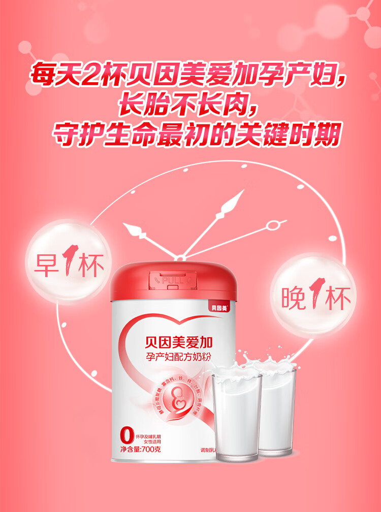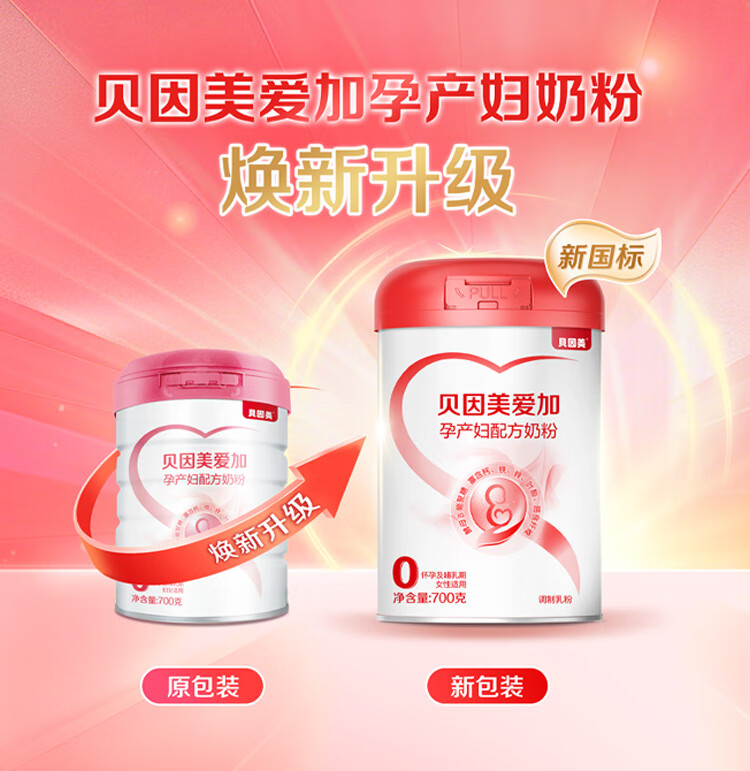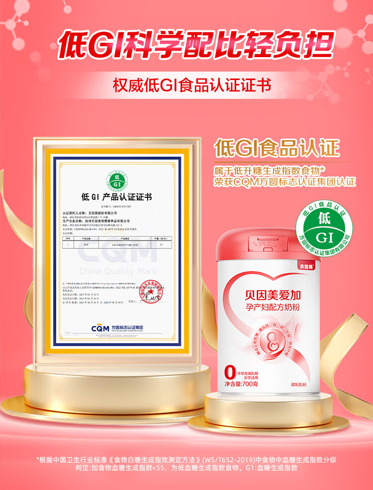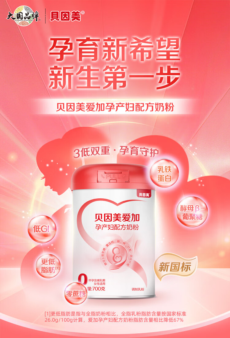贝因美爱加低GI孕妇奶粉大罐700g含乳铁蛋白酵母β-葡聚糖膳食纤维0蔗糖