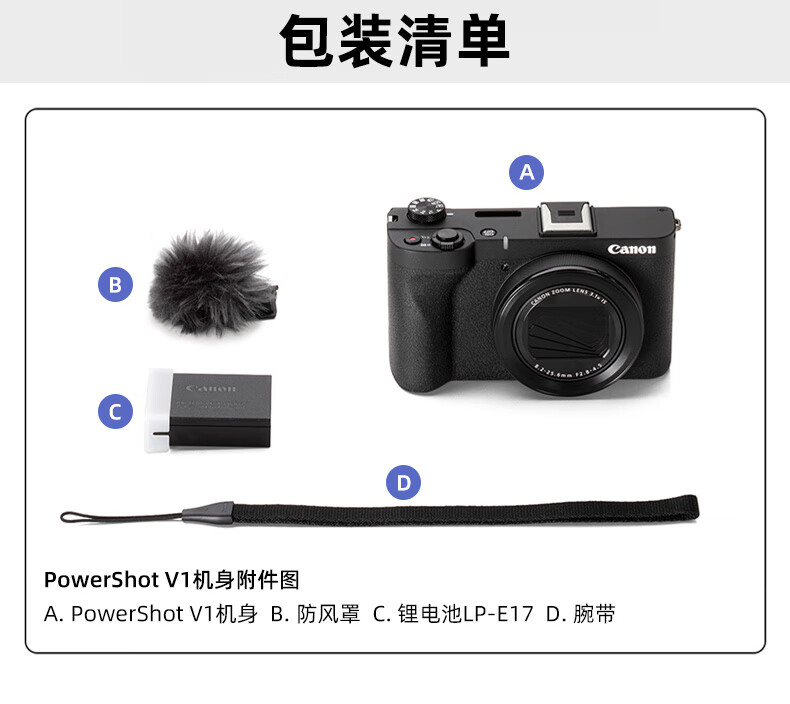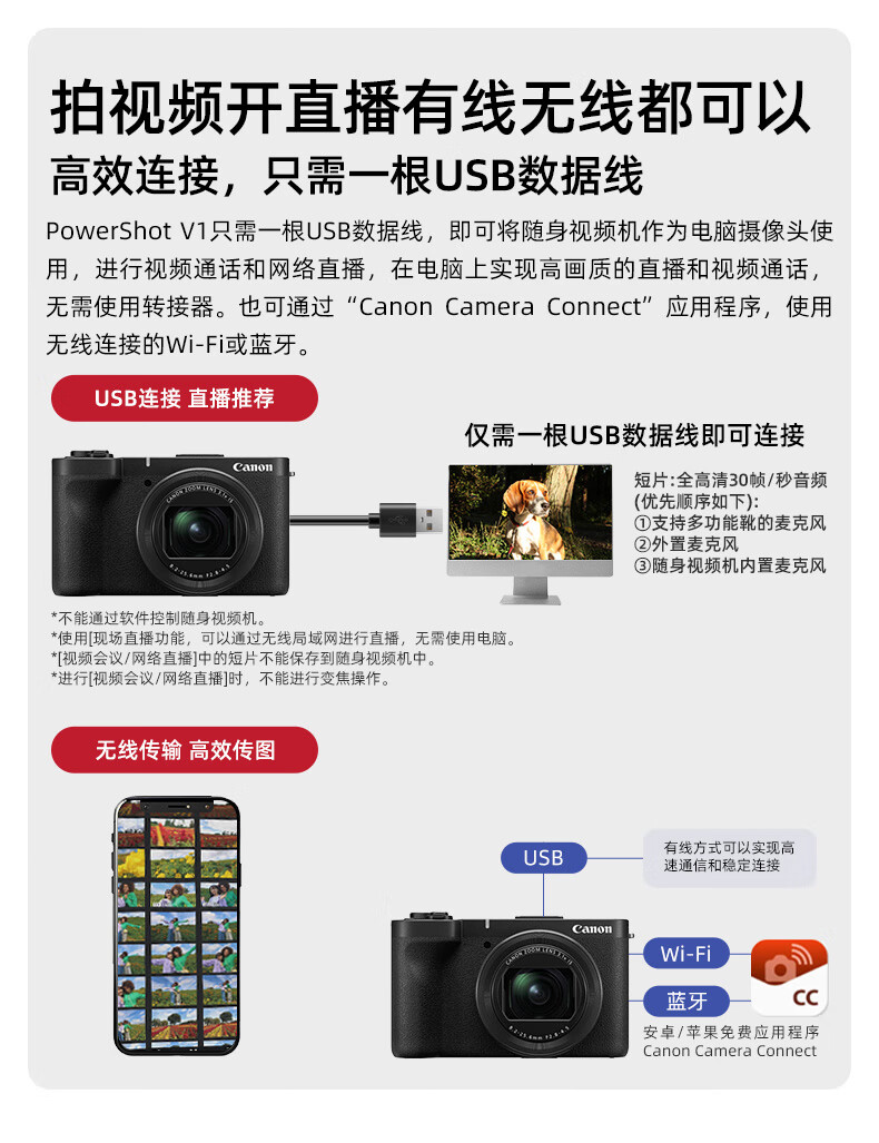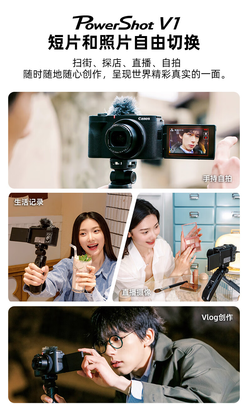 佳能Canon [旗舰店] PowerShot V1 小巧便携4KVlog旅游直播高清随身视频机 PowerShot V1