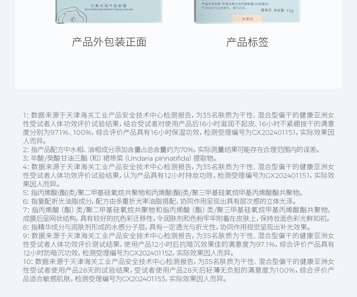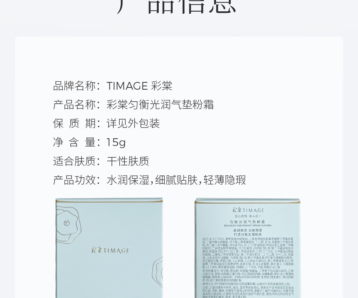 彩棠(TIMAGE)均衡光润奶皮气垫粉底液持久持妆100鹅绒白15g+替芯15g生日礼物