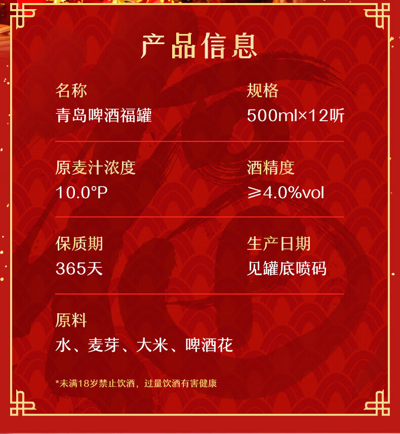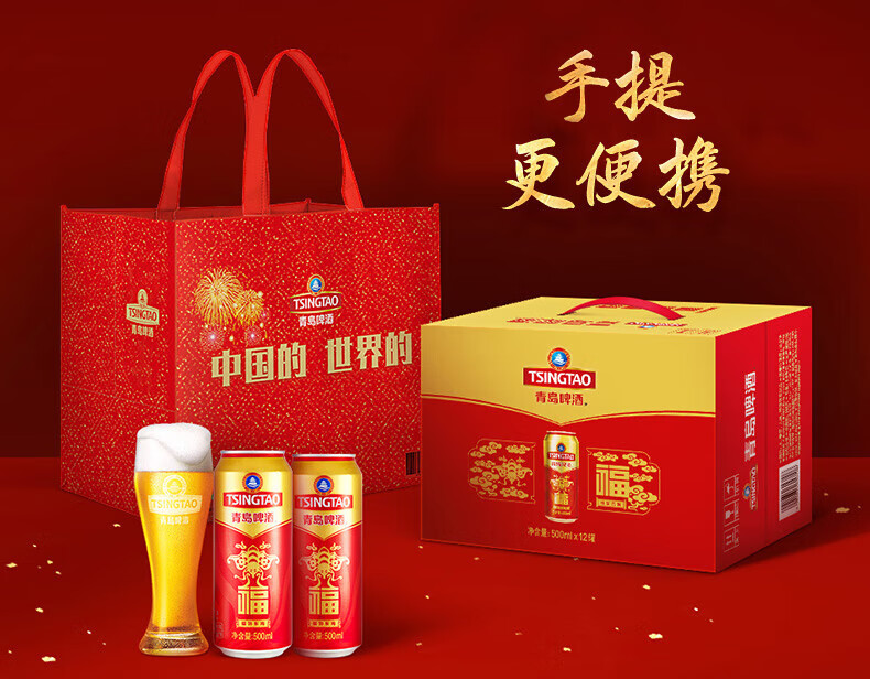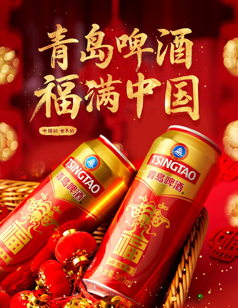 青岛啤酒福如东海 罐啤喜宴酒啤酒 原麦汁浓度10°P 500mL 12罐