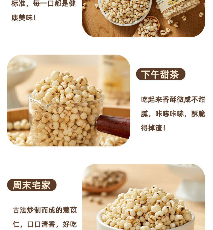炒薏米无油干炒酥脆熟薏米仁即食零食干货杂粮 炒薏米 2瓶