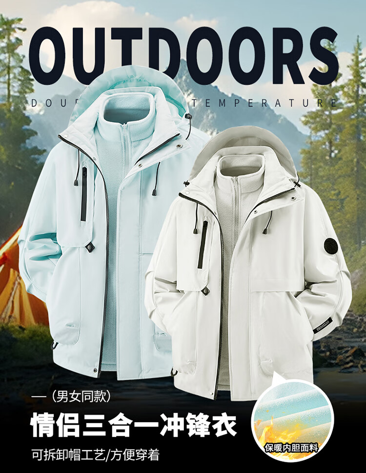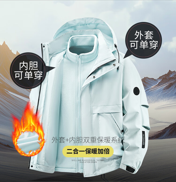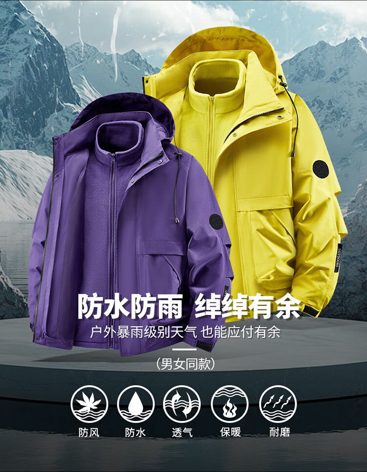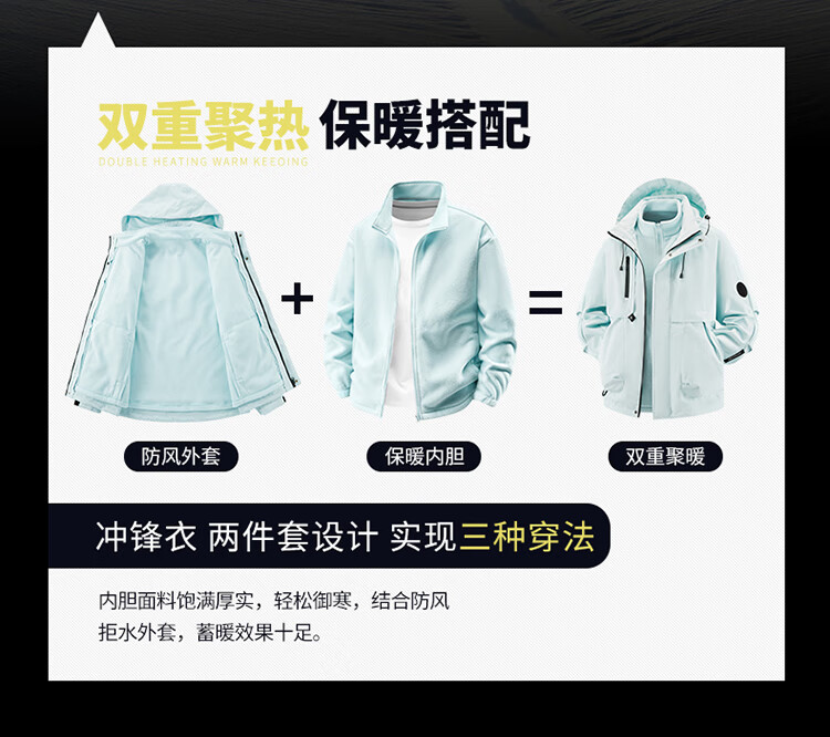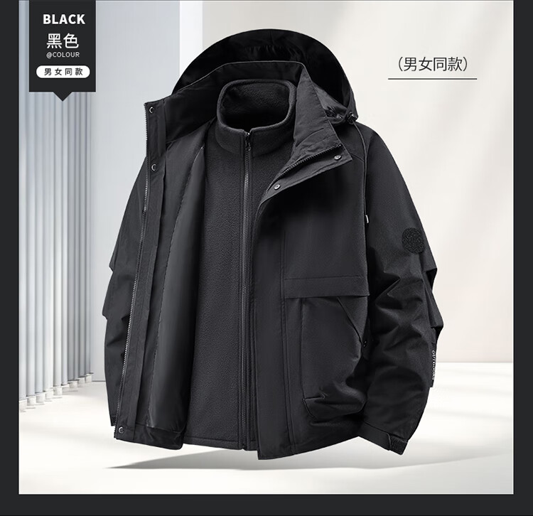 【三合一登山服】冲锋衣男女2025冬季防风防水户外保暖外套夹克 黑色9588【三合一】 L-【120-140斤】