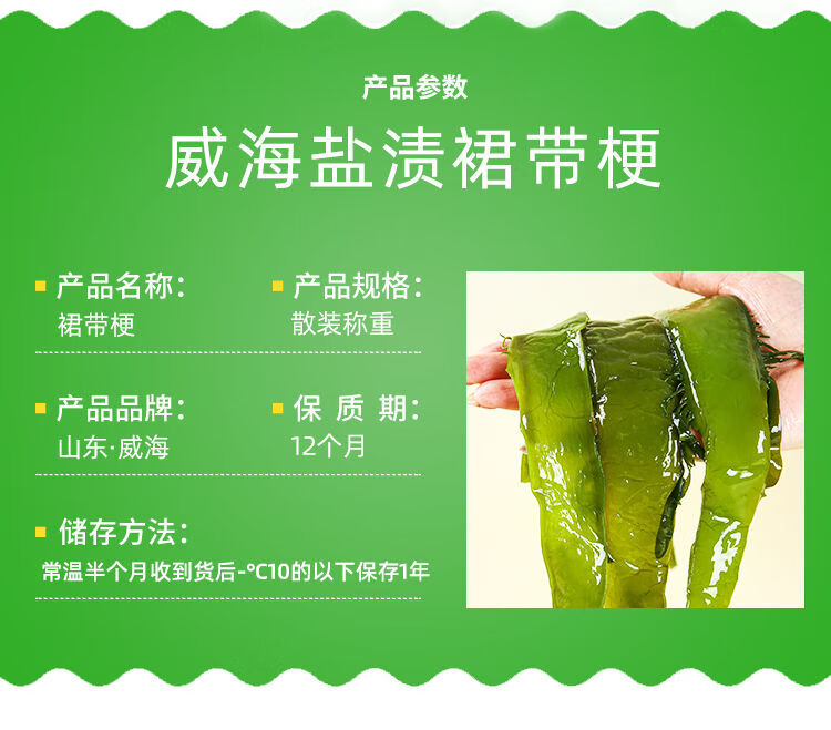 翡小翠大连裙带菜梗 海带梗海藻海芹菜聚餐凉拌小菜火锅煲汤热门商品 【含盐量15%】【一级品】裙带菜梗【净重】5斤