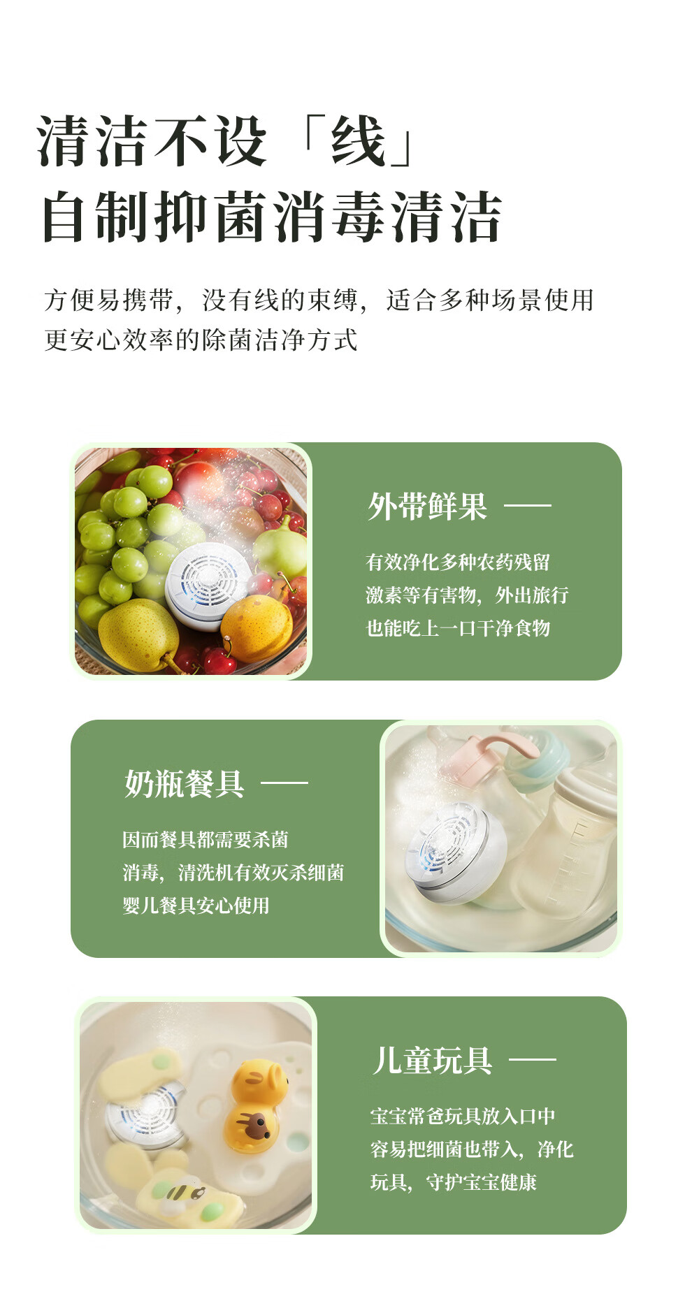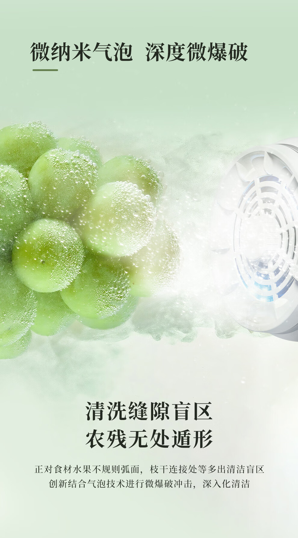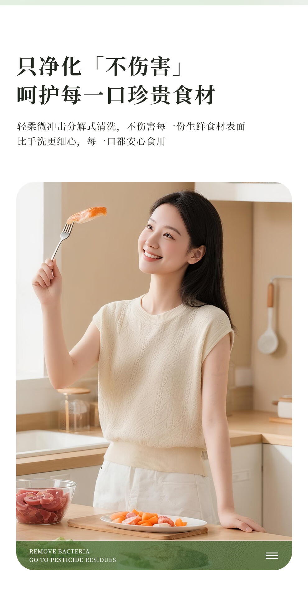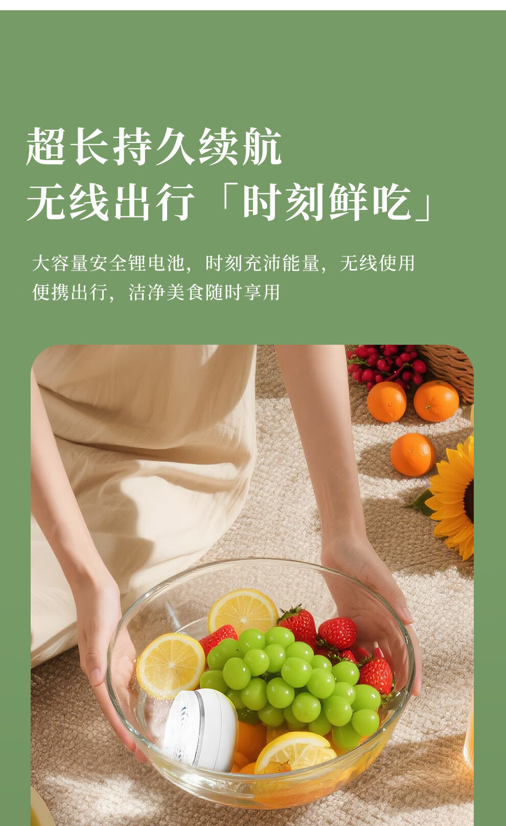 小米猴果蔬清洗机无线去农残去虫卵抗生素深度净化零污染果蔬净化清洗机果蔬清洗器洗菜机 纯净白-果蔬/肉/海鲜通用