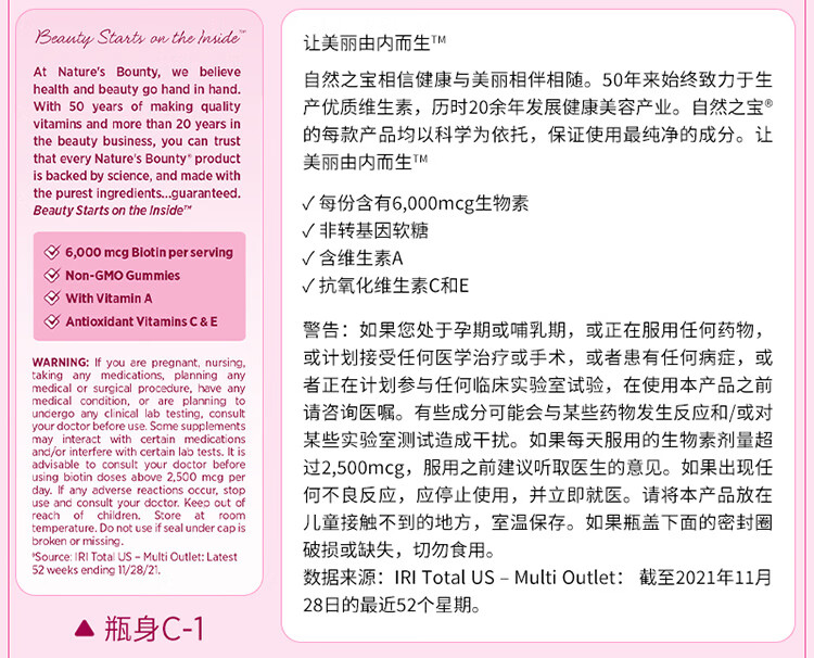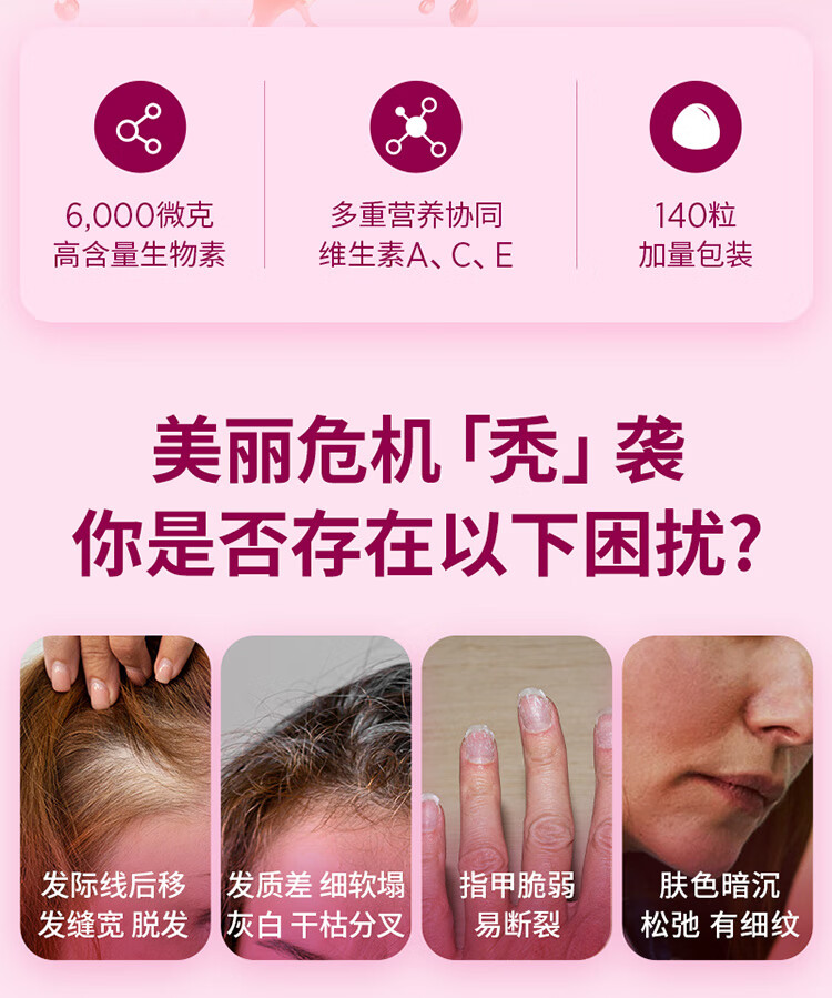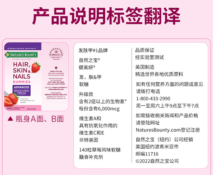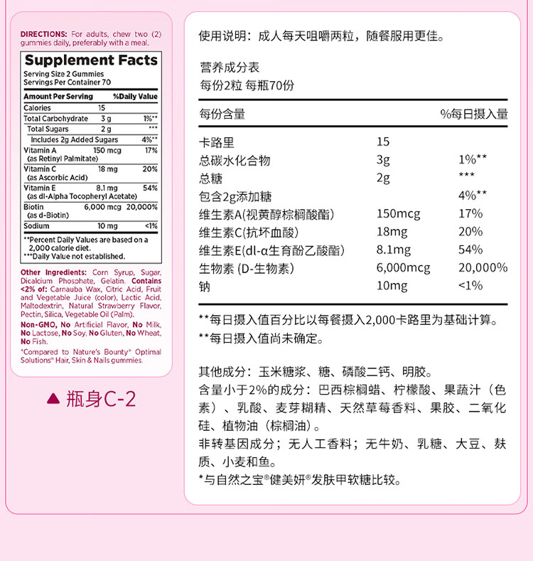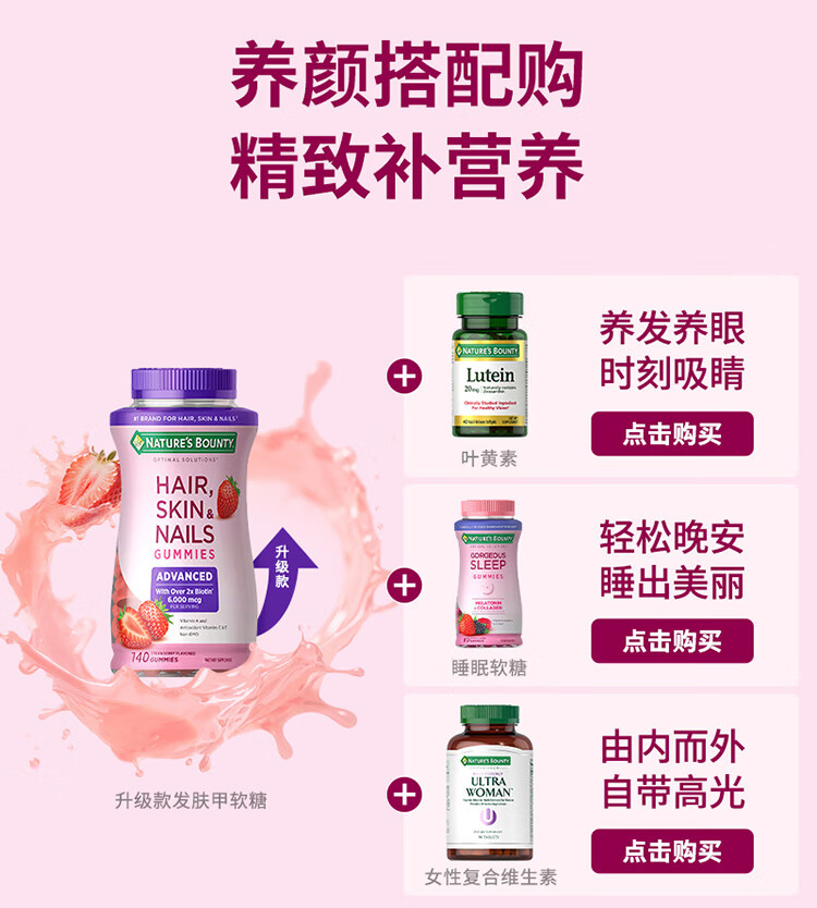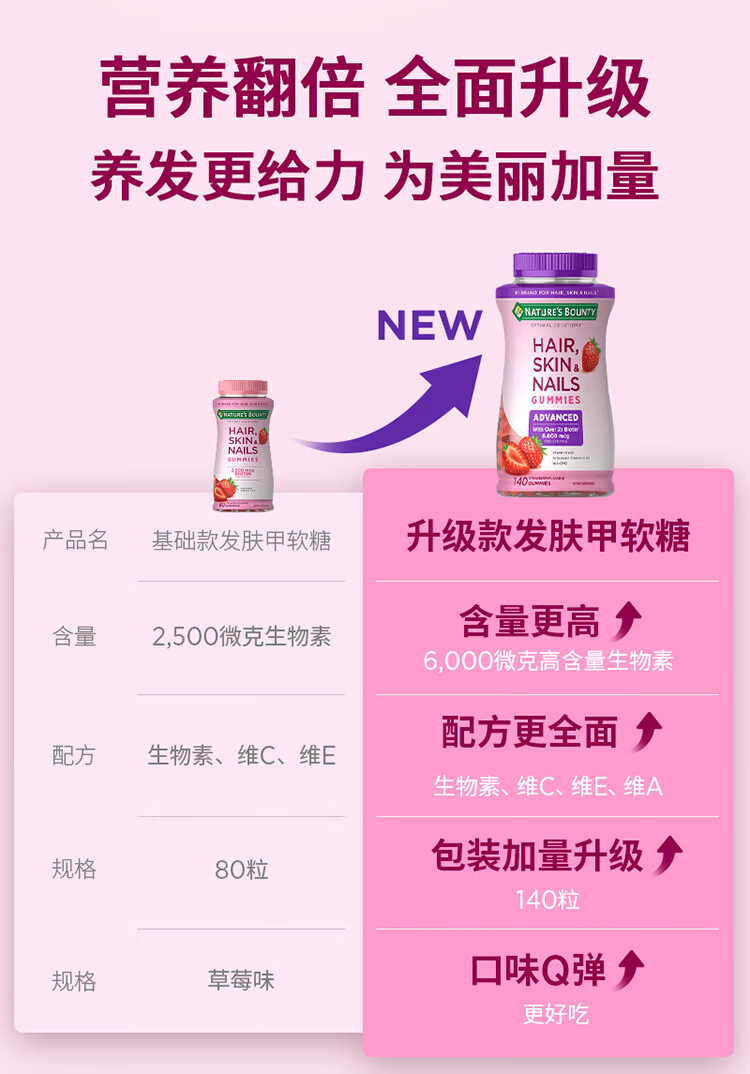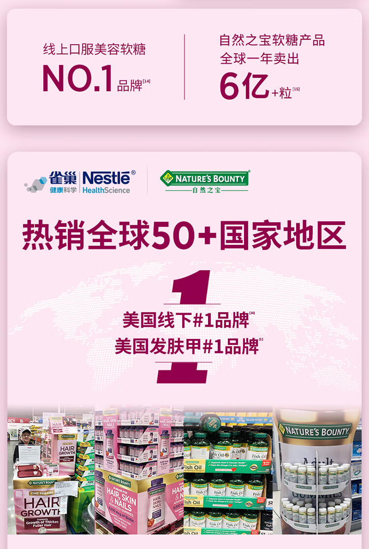 自然之宝雀巢旗下发肤甲软糖升级款女士生物素胶原蛋白花少好营养140粒