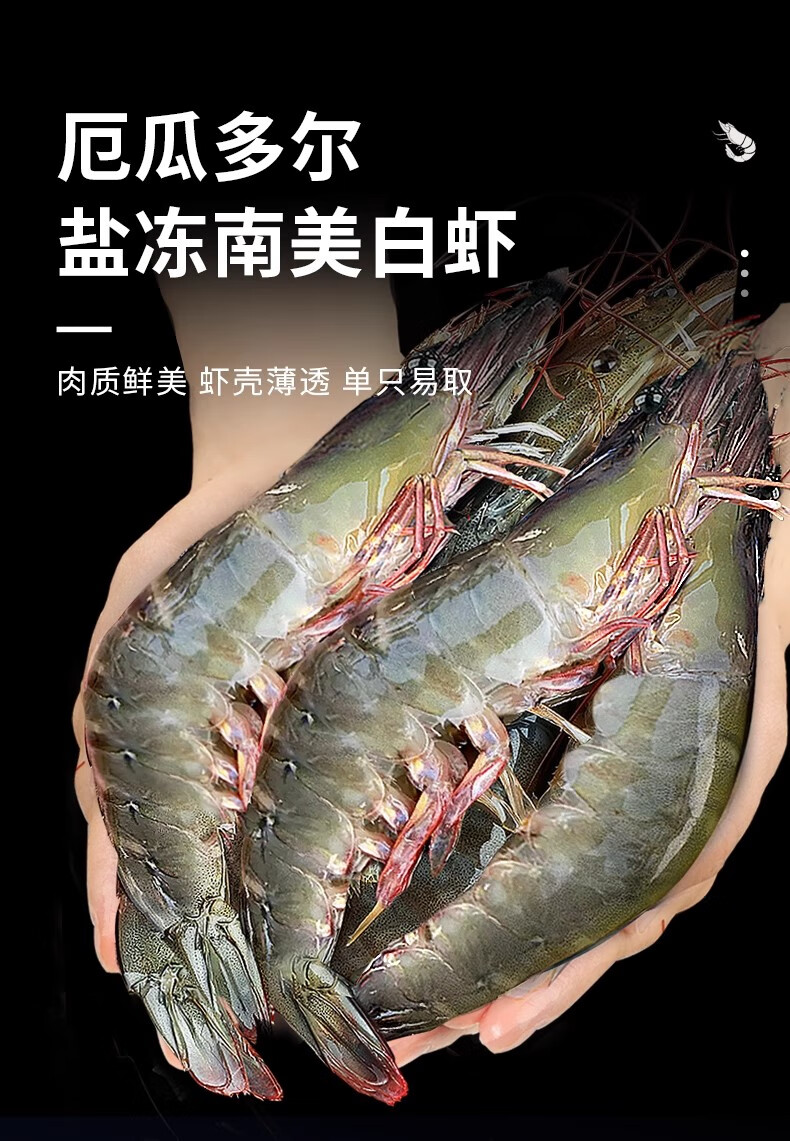 缤鲜 厄瓜多尔白虾大虾 鲜活速冻特大生鲜 海鲜水产鲜活冰冻虾基围虾 17-22cm 3斤(净重) 【原装特大】