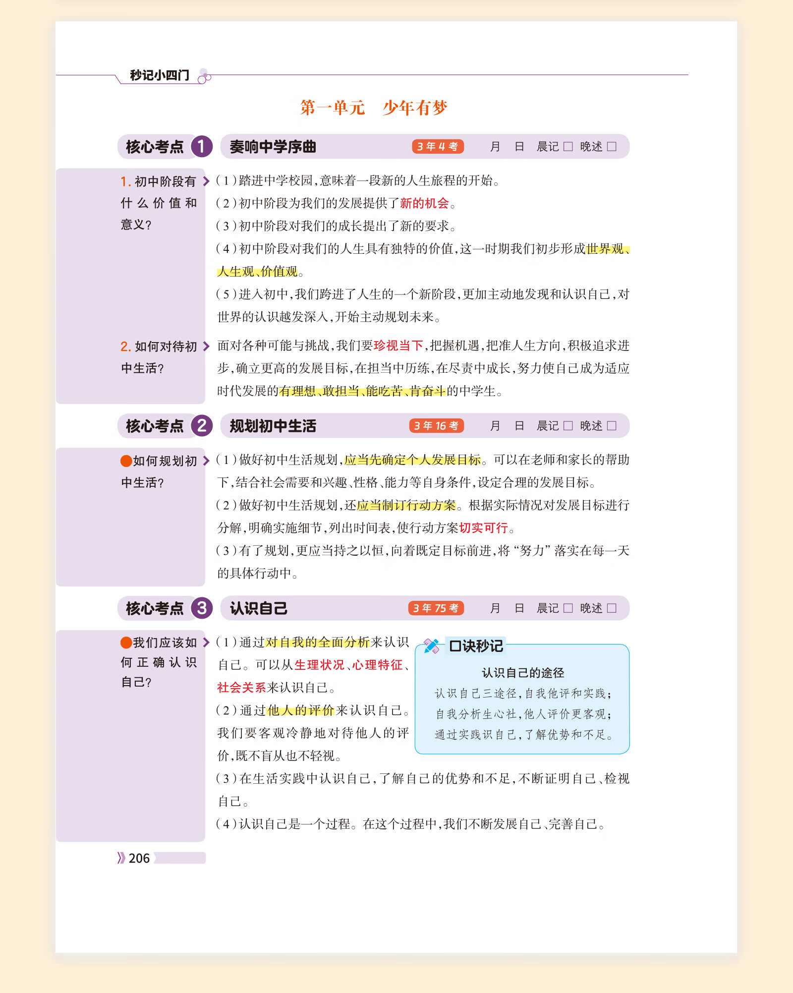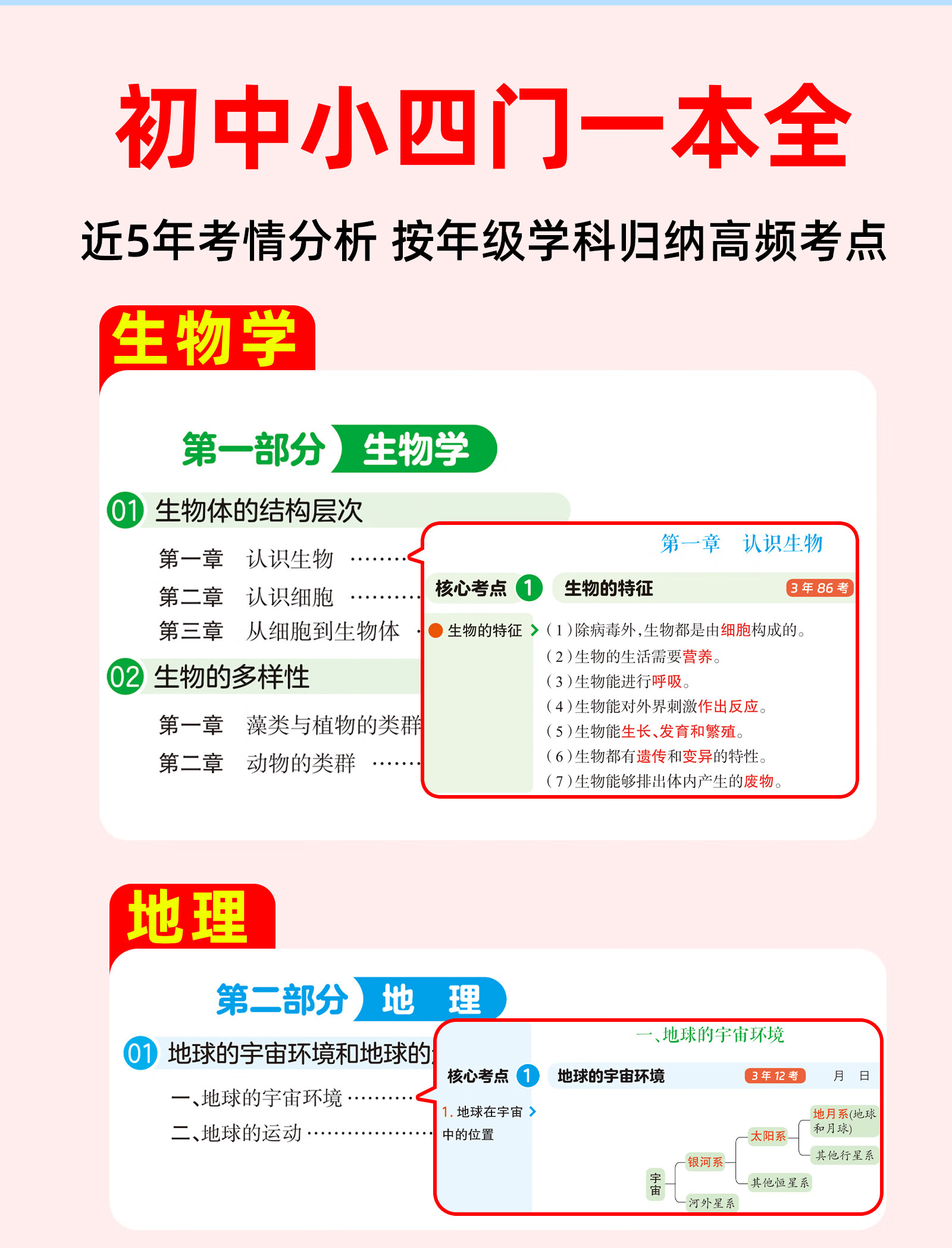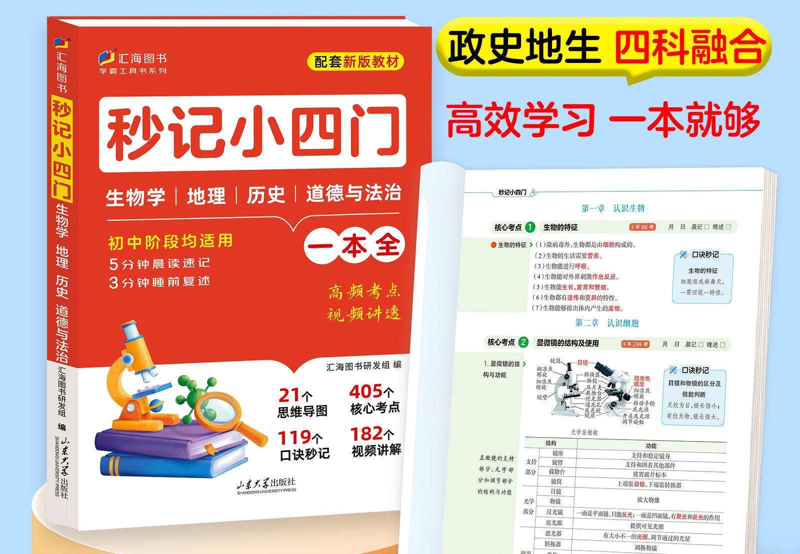 【当当 正版】初中秒记小四门 生物学地理历史道德与法治初一初二初三通用配套新版教材