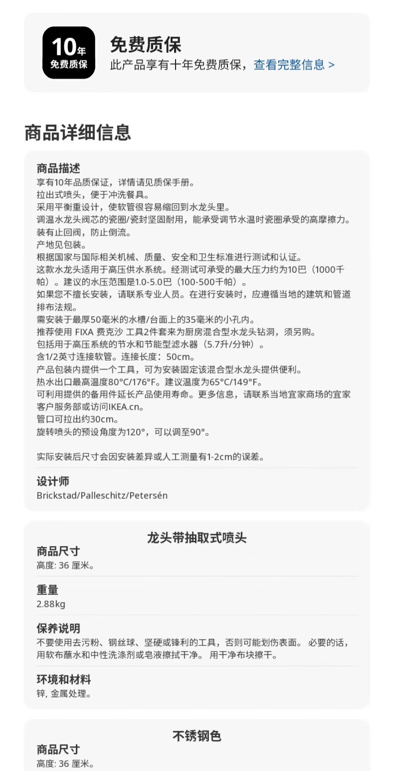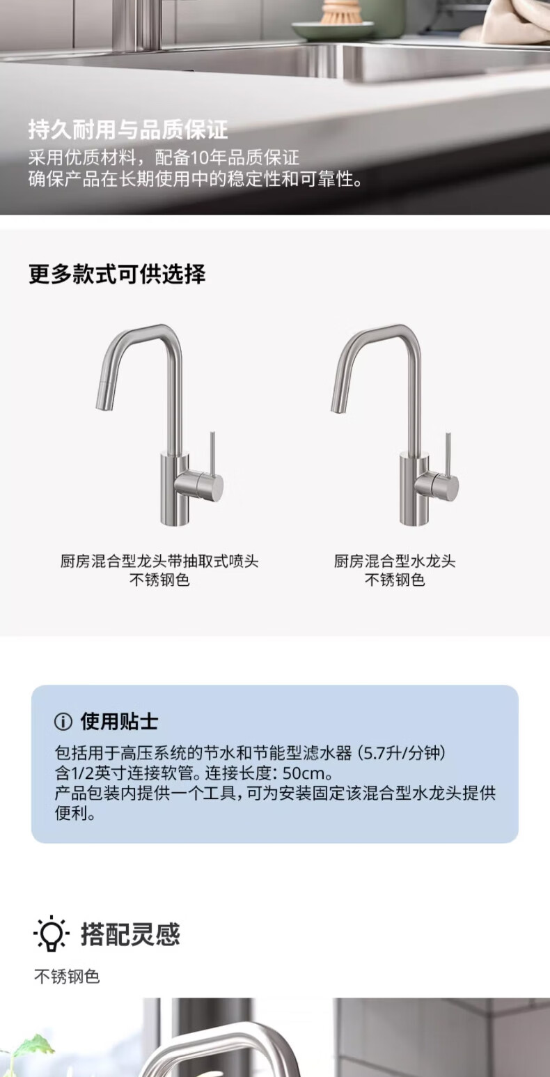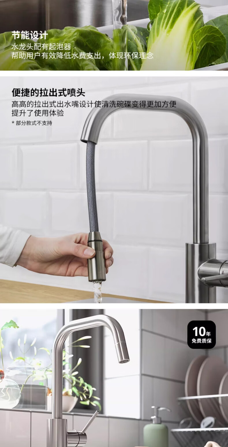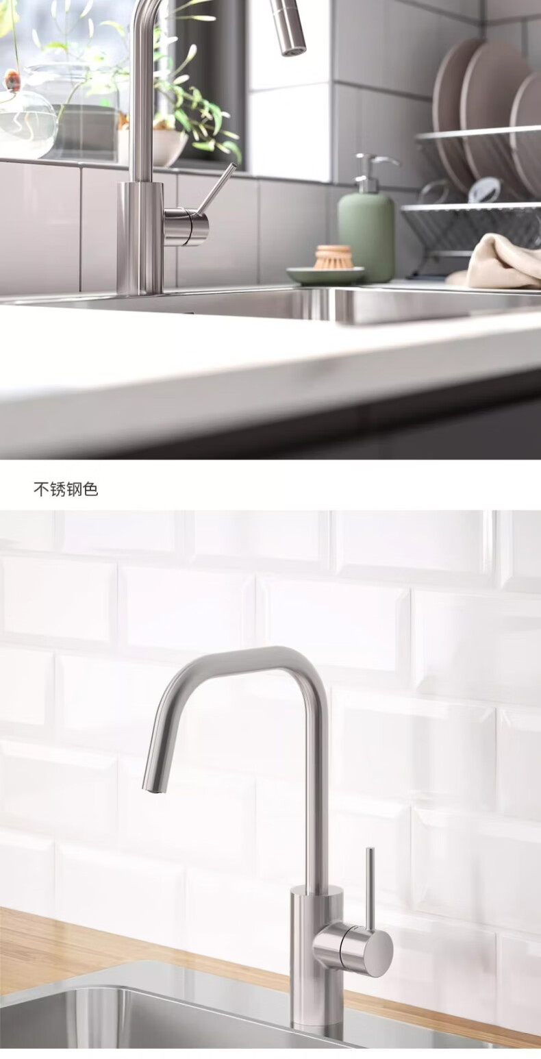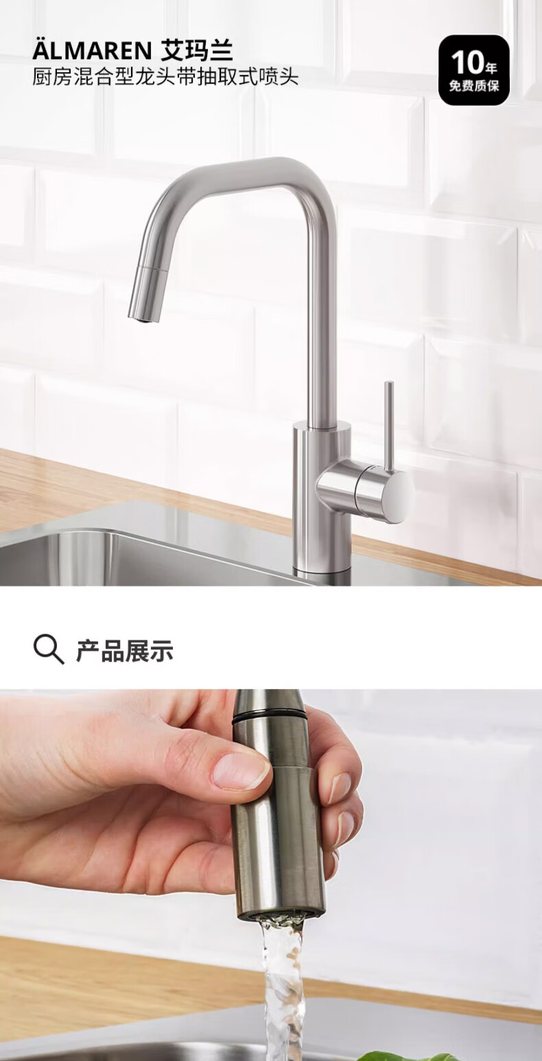 宜家(IKEA)ALMAREN艾玛兰厨房龙头喷头冷热水洗菜盆洗碗池水槽 带抽取式喷头不锈钢色