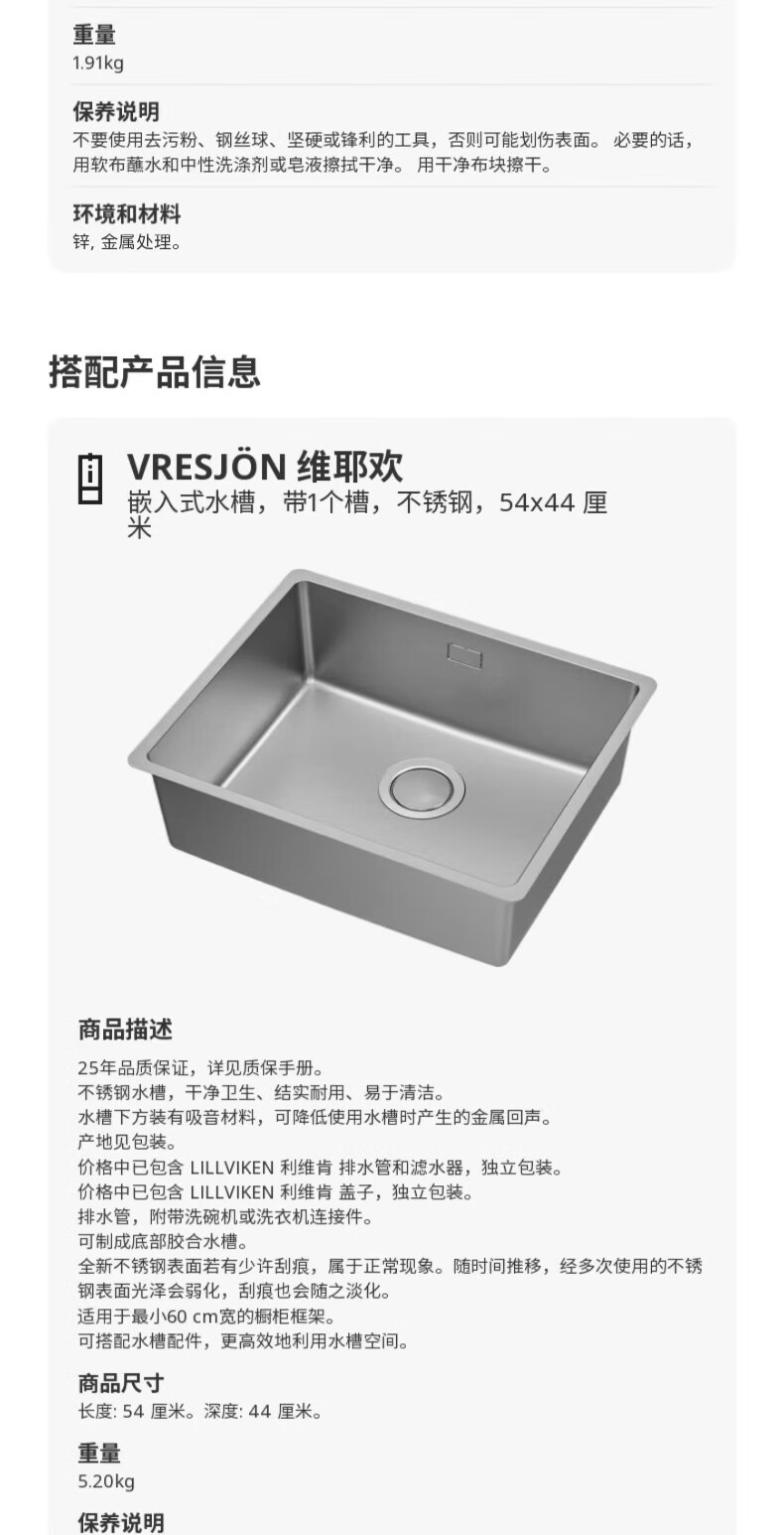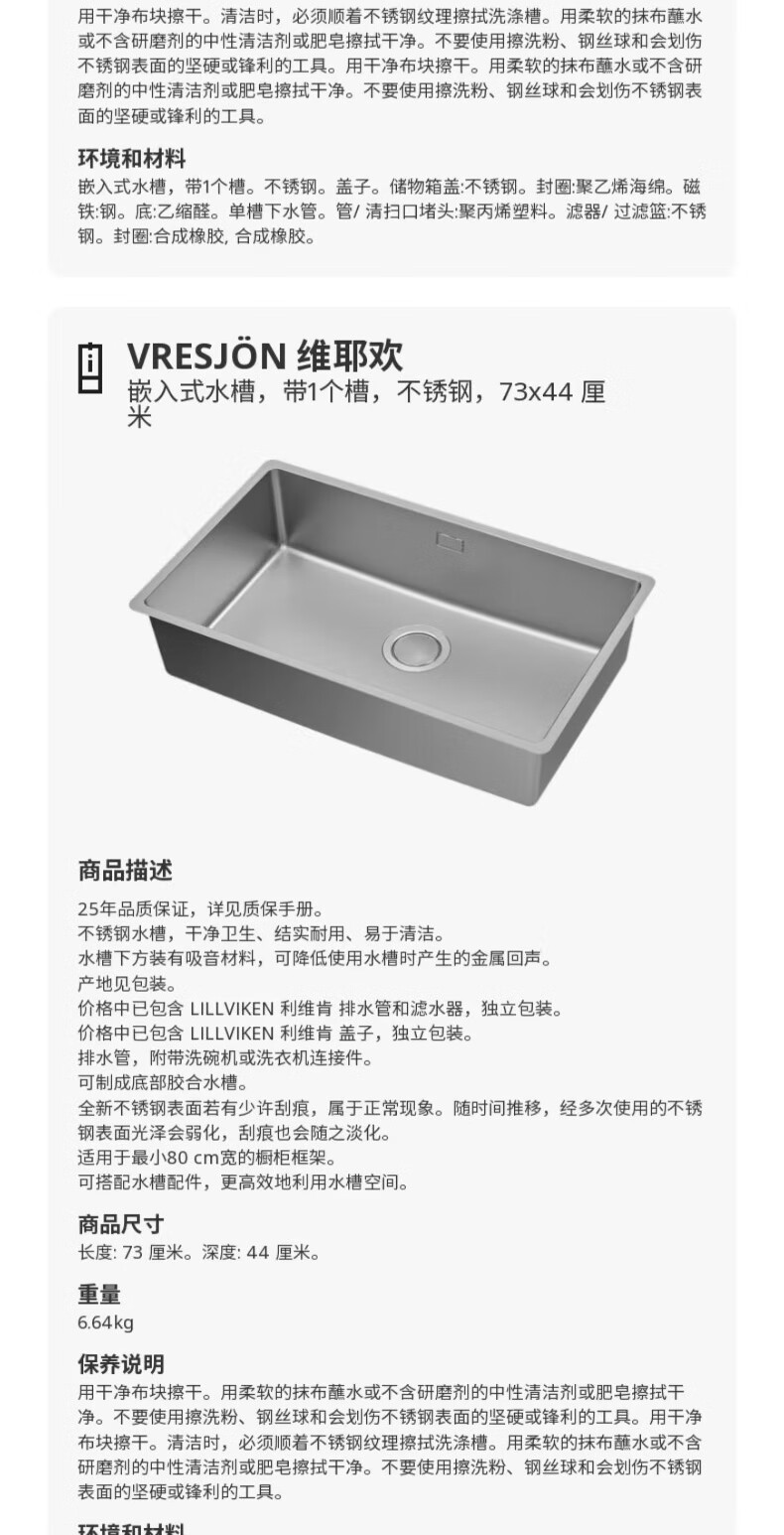 宜家(IKEA)LANGUDDEN兰加顿嵌入式水槽不锈钢简约北欧风厨房用家用 嵌入式水槽56x53cm+水龙头