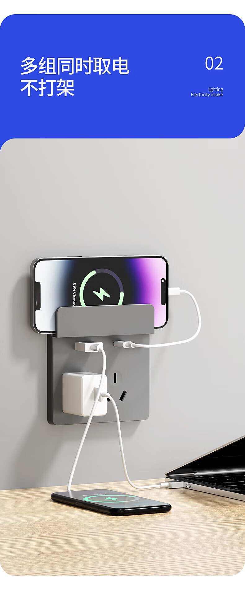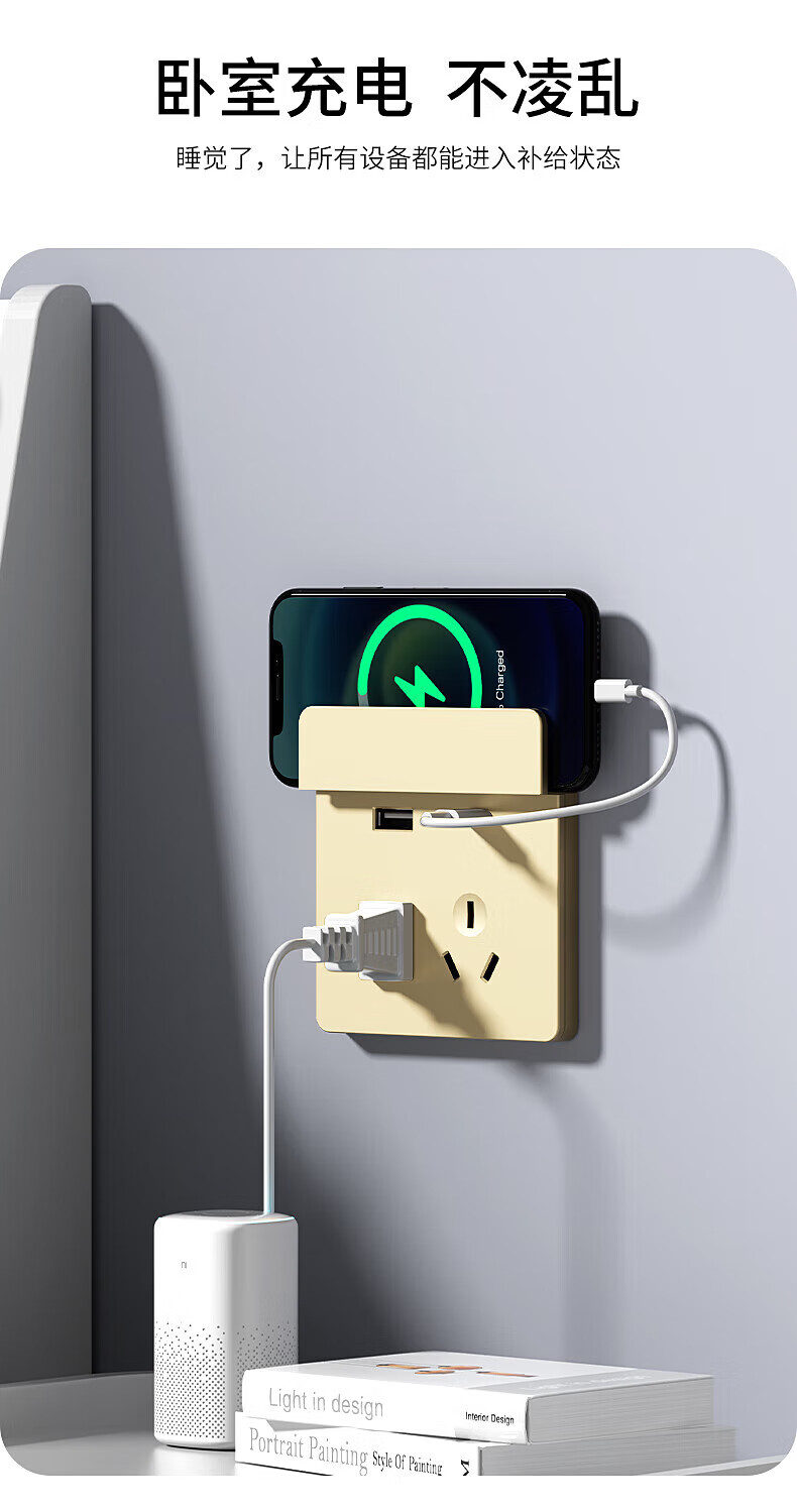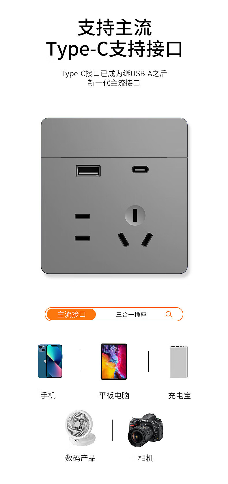 国际电工86型家用type-c快充隐藏伸缩手机支架插座面板开关五孔带USB插座 时尚白-20W快充五孔USB+C-带支架
