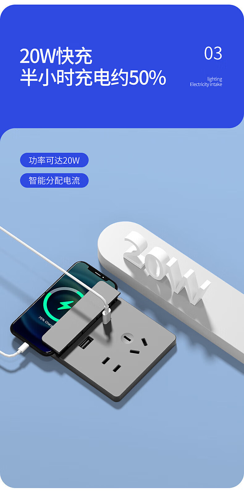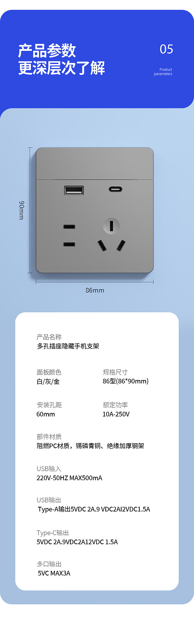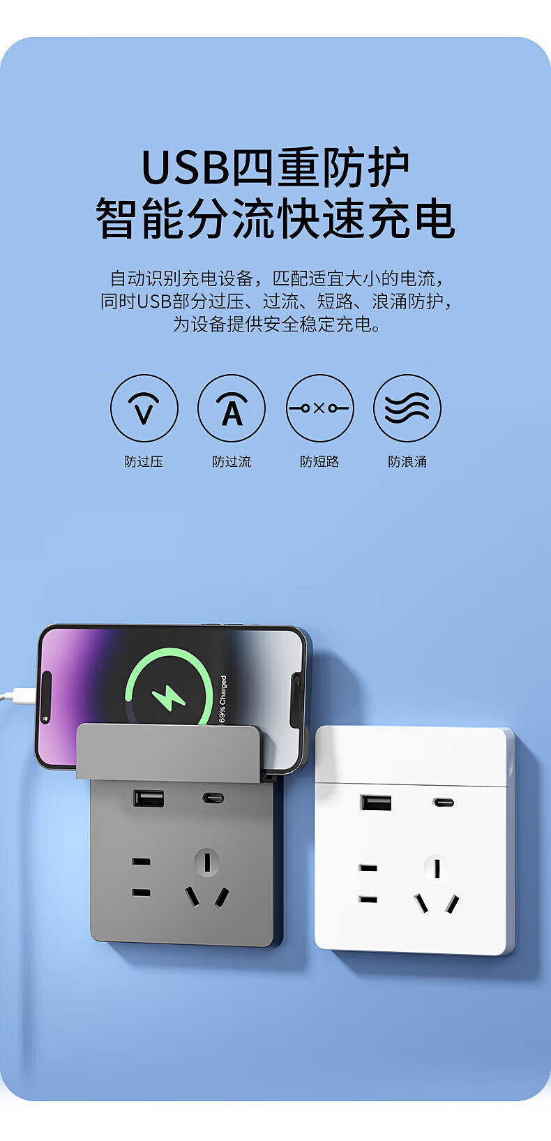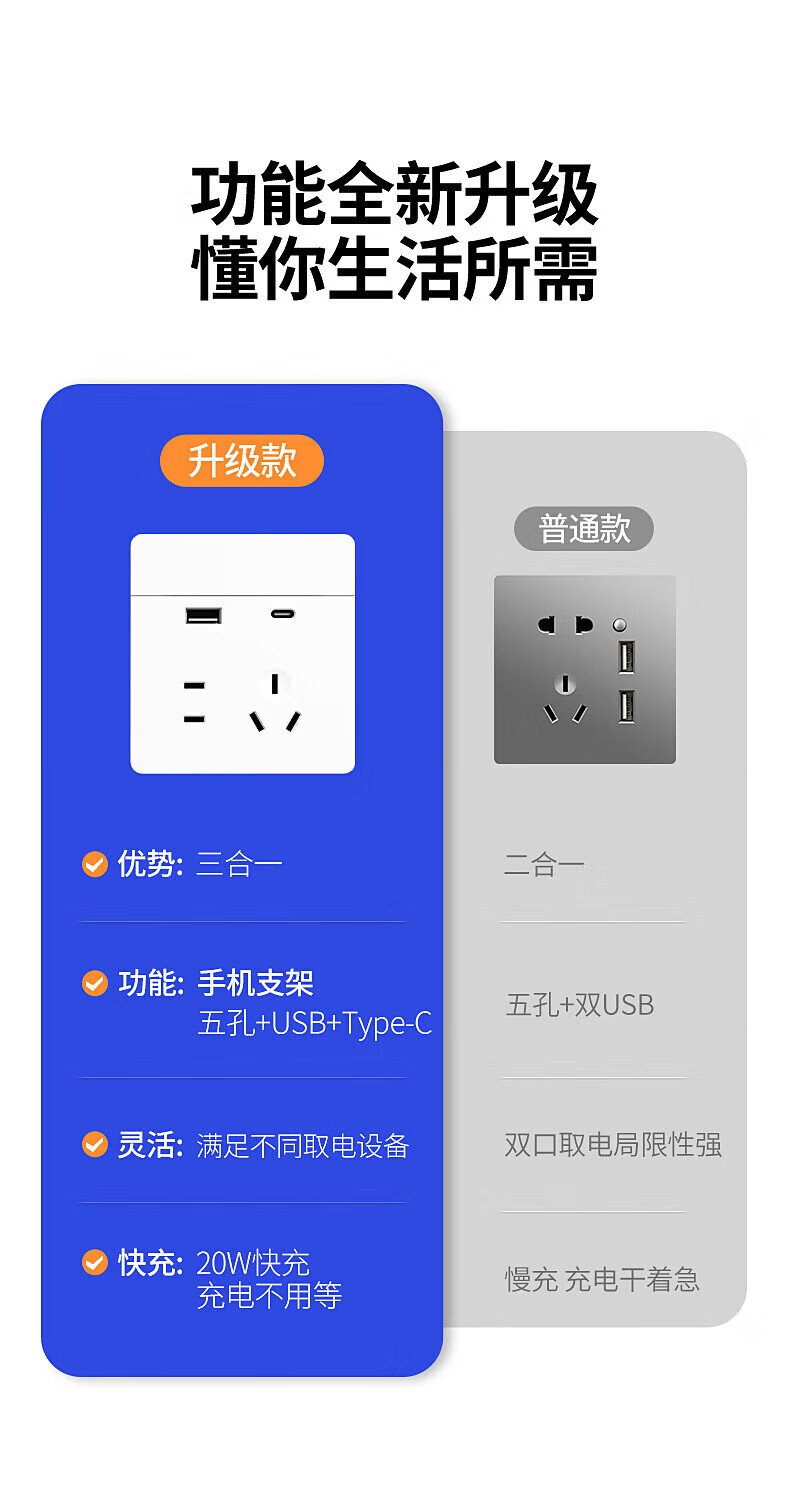 国际电工86型家用type-c快充隐藏伸缩手机支架插座面板开关五孔带USB插座 时尚白-20W快充五孔USB+C-带支架