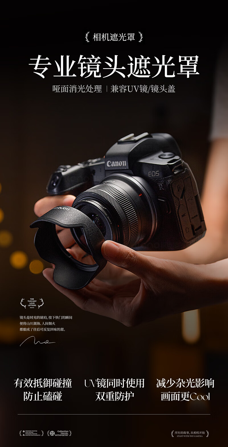 绿巨能(llano)相机镜头遮光罩ES-65B II适用佳能RF 50mm f/1.8 STM遮光罩 定焦小痰盂43mm镜头R7 R10 R50 RP配件