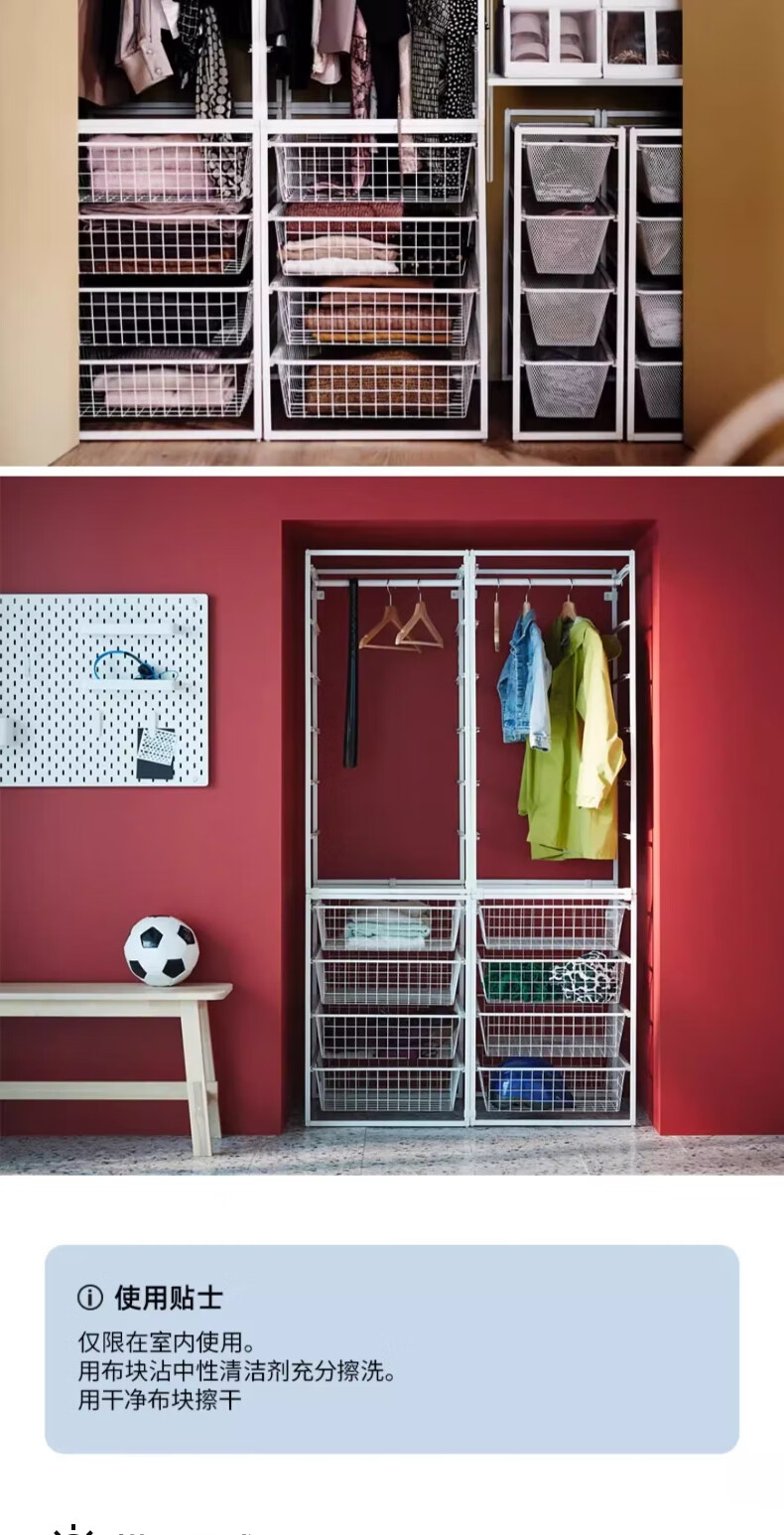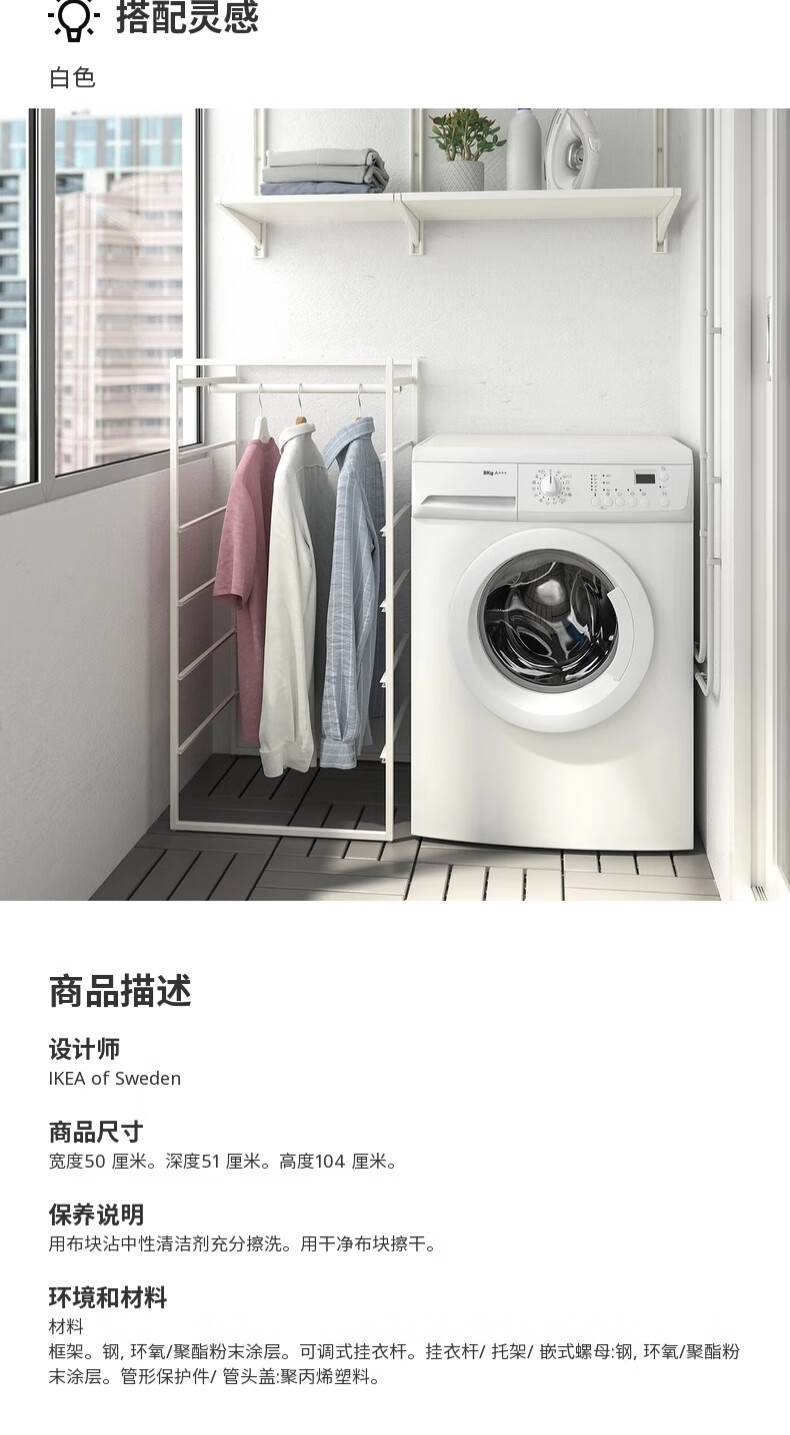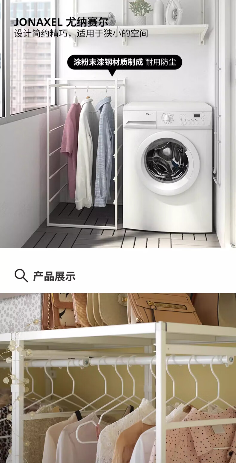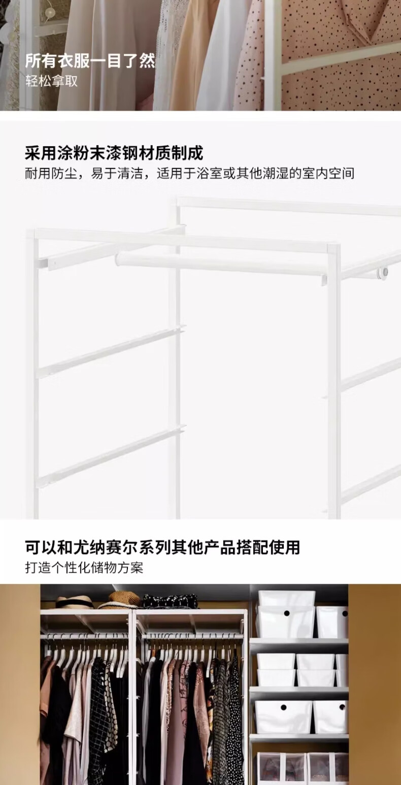 宜家(IKEA)JONAXEL尤纳赛尔框架带衣杆衣柜挂衣架落地卧室现代学生宿舍 白色框架带衣杆50x51x104cm