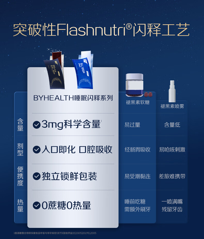 BYHEALTH汤臣倍健闪睡片二代褪黑素gaba氨基丁酸助眠改善睡眠安眠失眠 30片*1盒【方便携带 强效助眠】