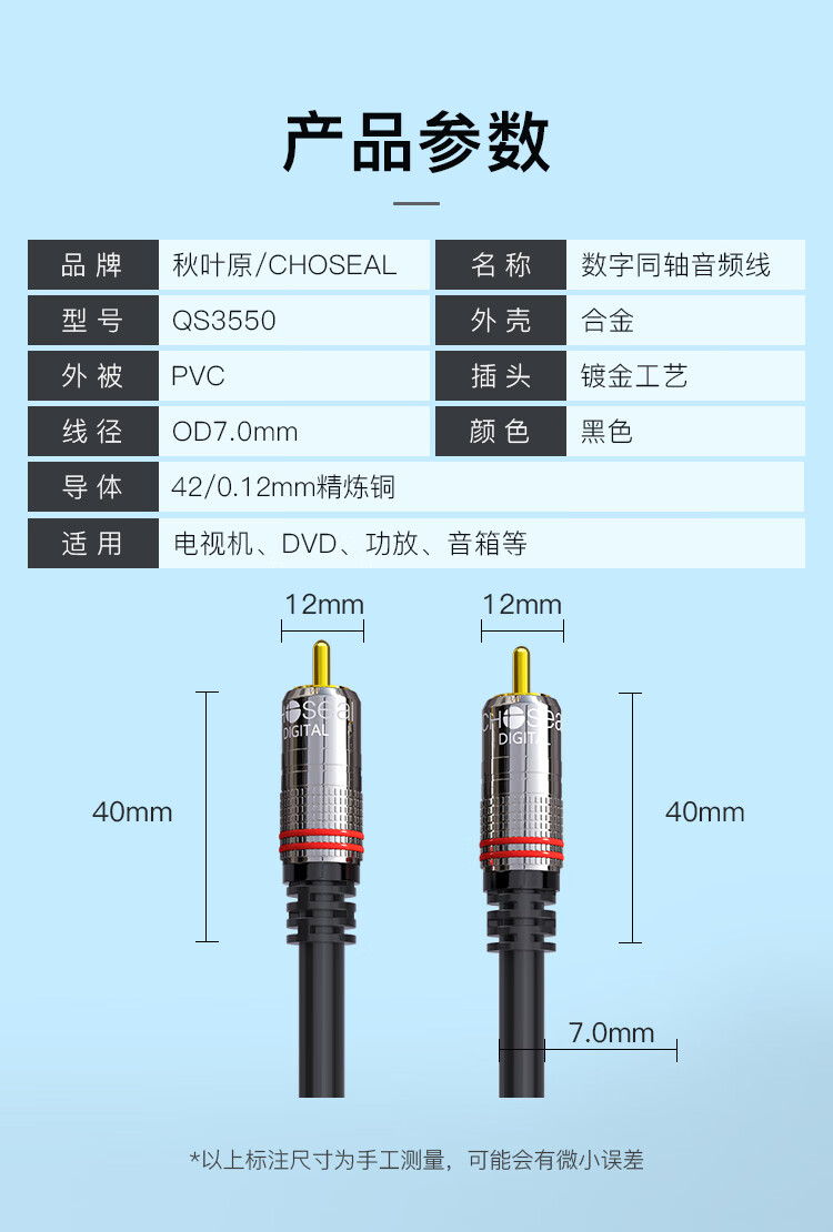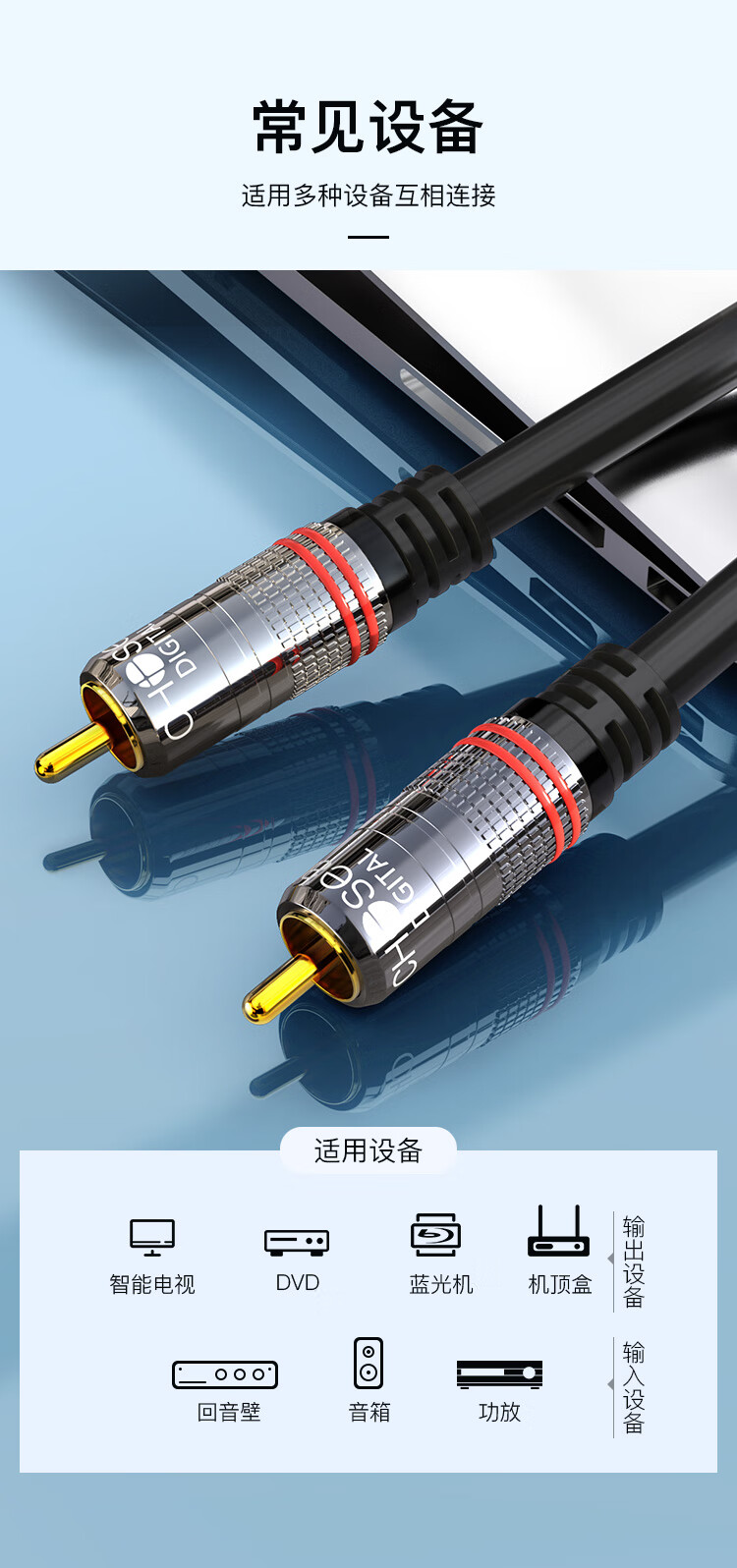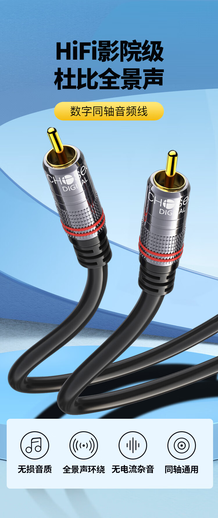 秋叶原(CHOSEAL)RCA莲花头数字同轴线音频线 发烧级公对公转接线 SPDIF音响功放连接线 1.5米 QS3550T1D5
