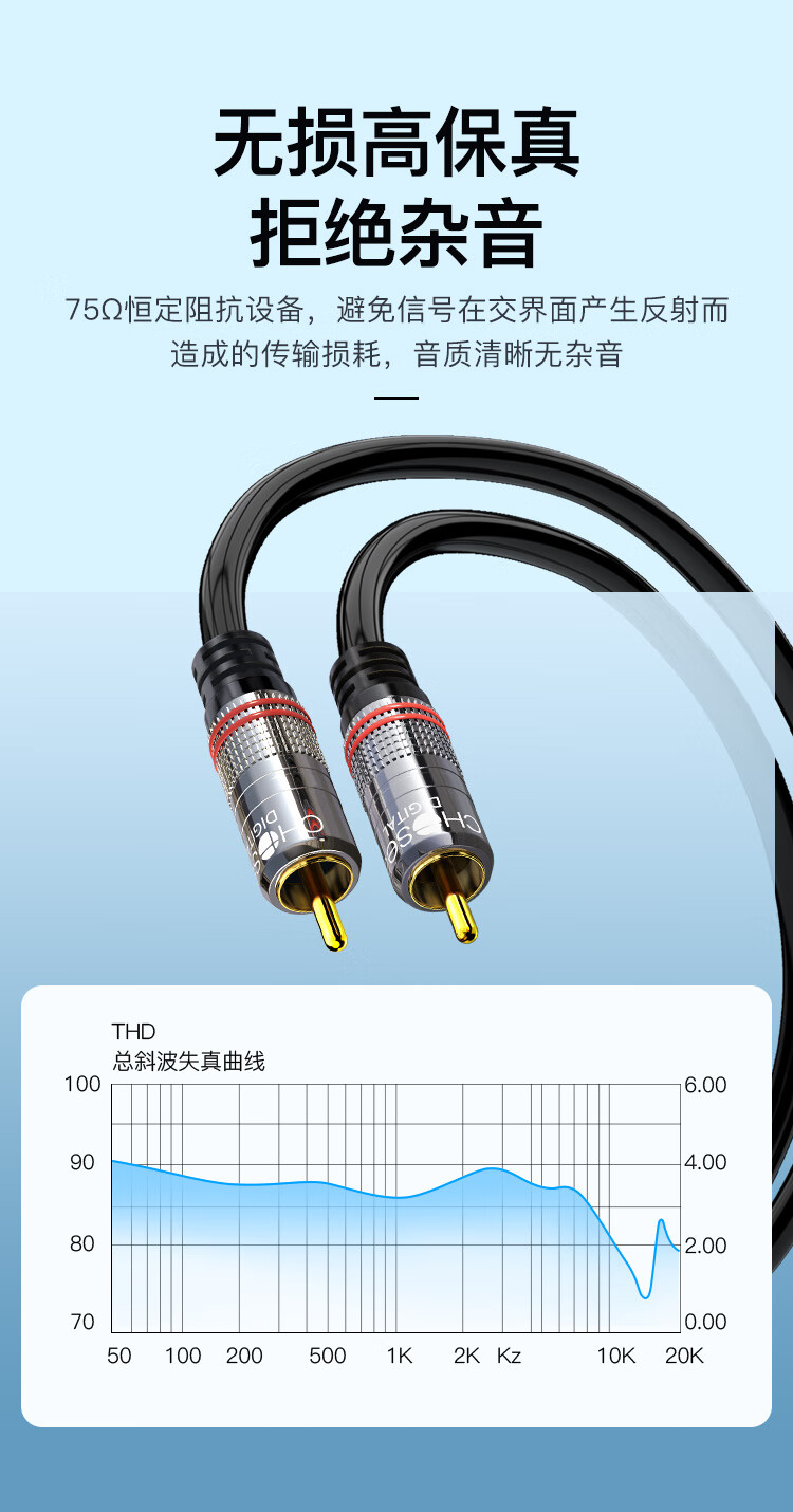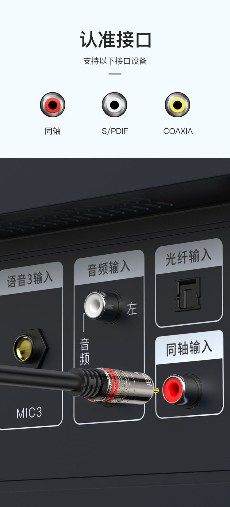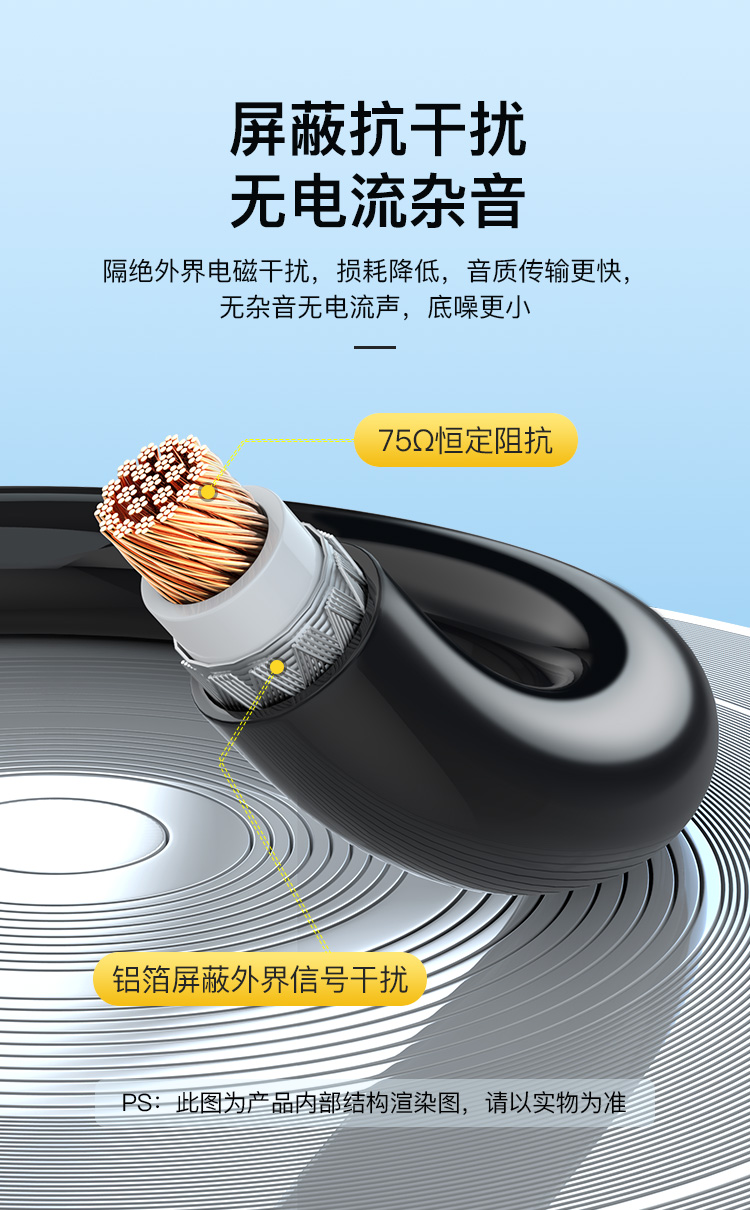 秋叶原(CHOSEAL)RCA莲花头数字同轴线音频线 发烧级公对公转接线 SPDIF音响功放连接线 1.5米 QS3550T1D5