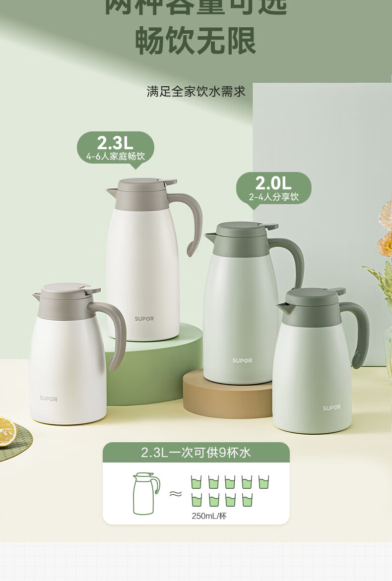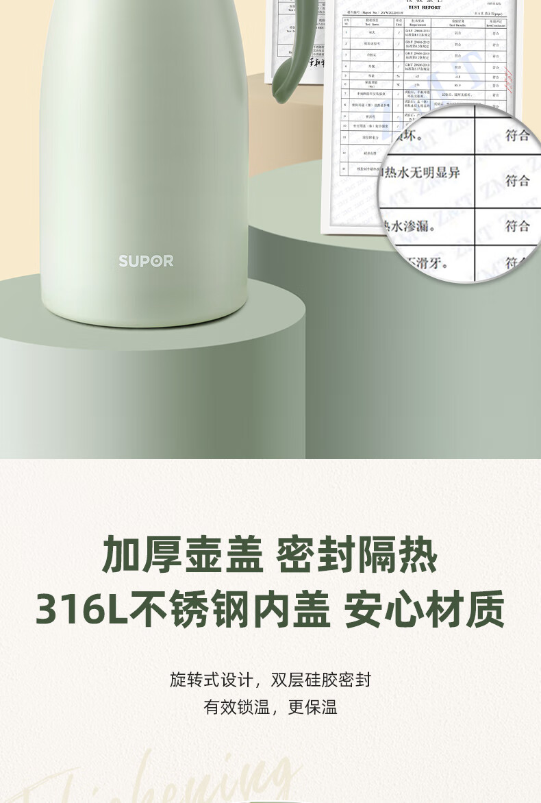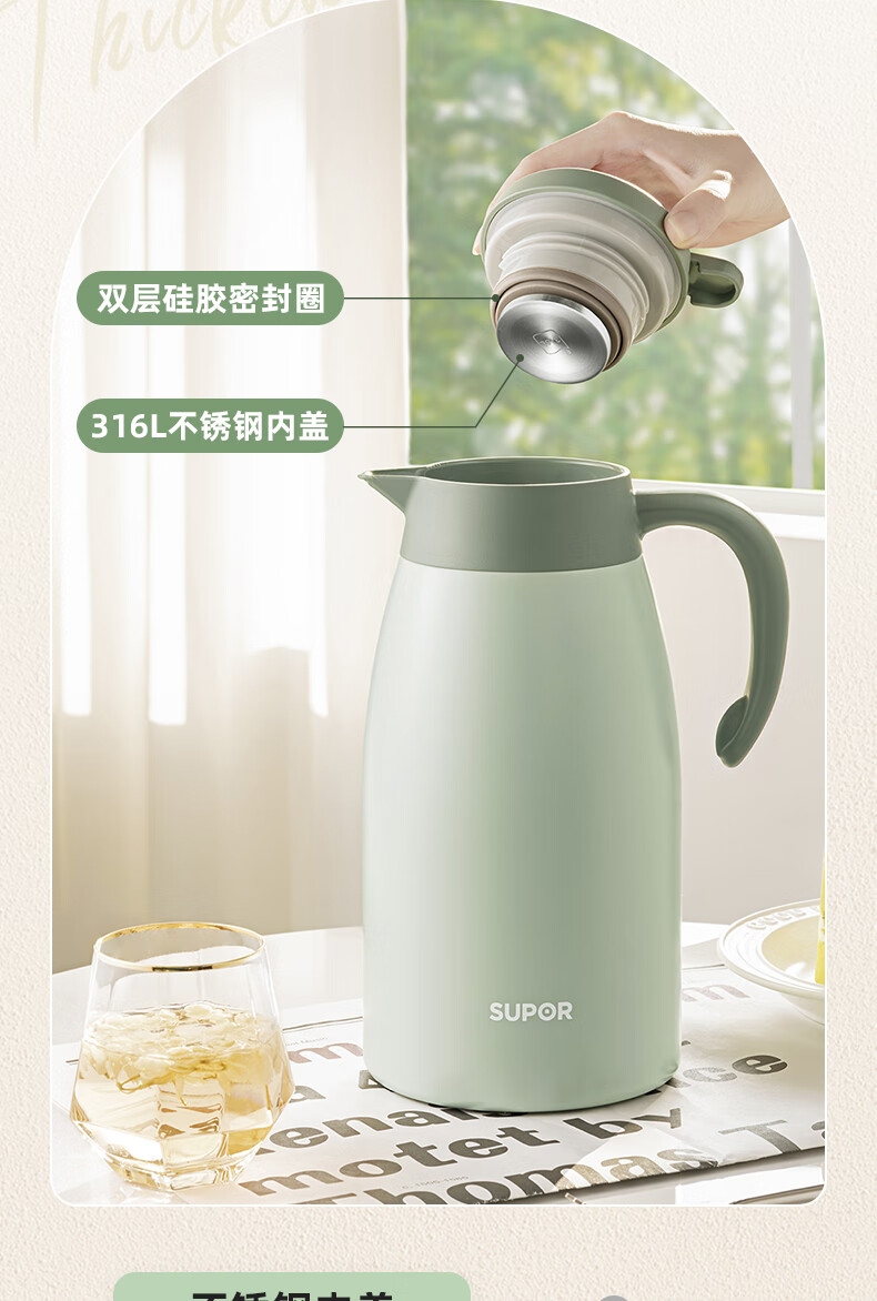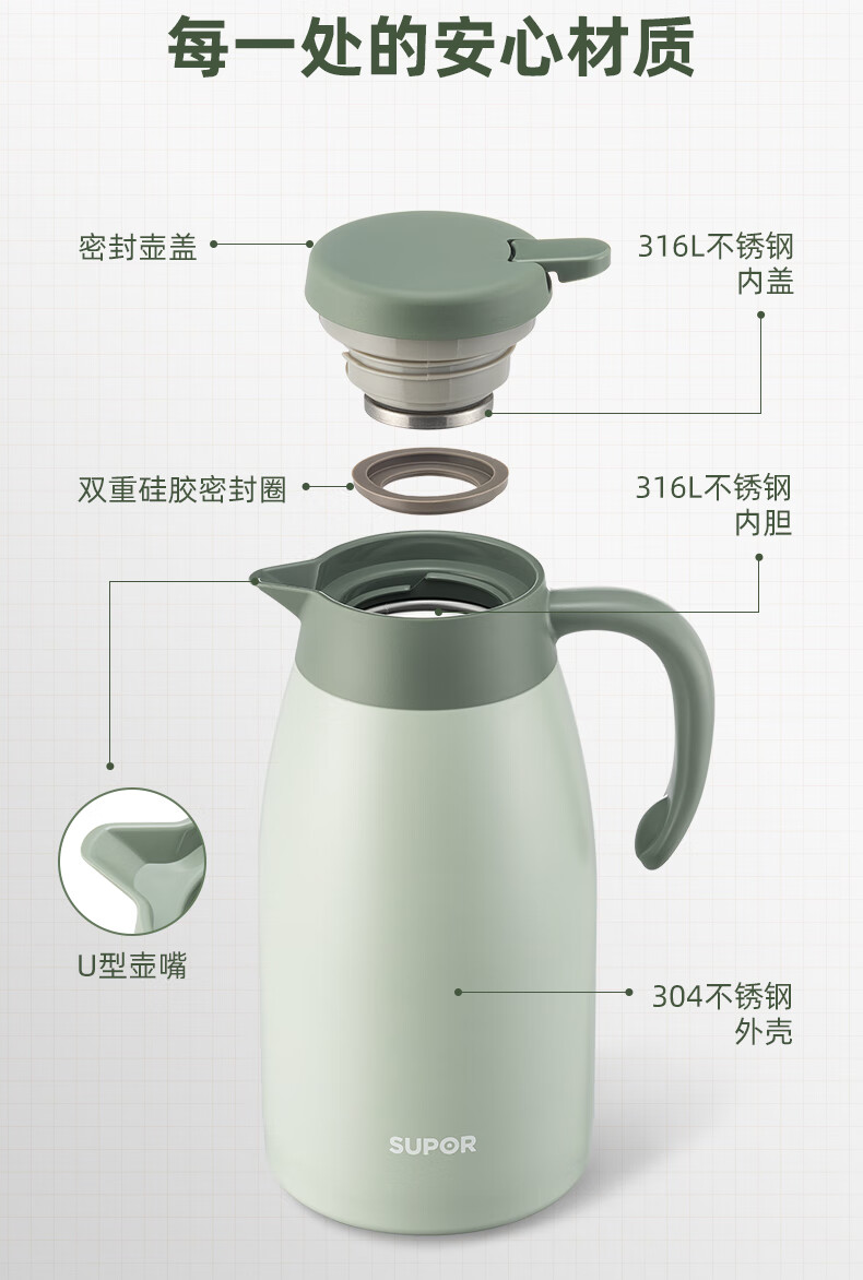 苏泊尔(SUPOR)保温壶家用大容量水壶316L不锈钢真空保温瓶热水壶暖壶开水瓶2.0L