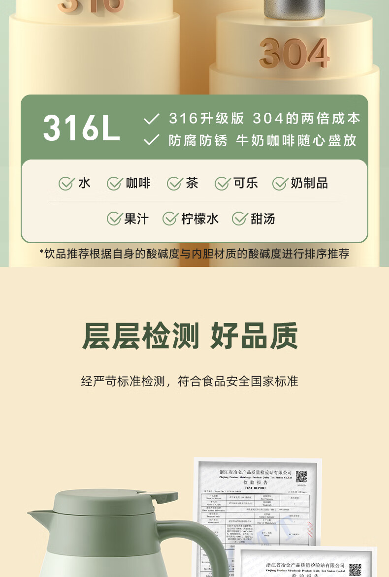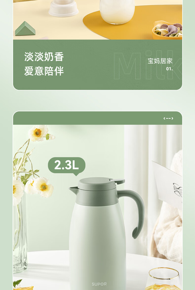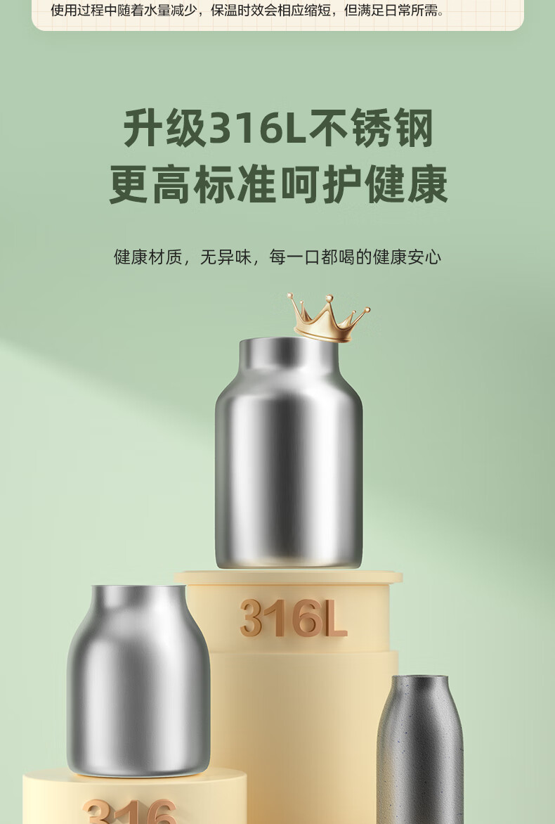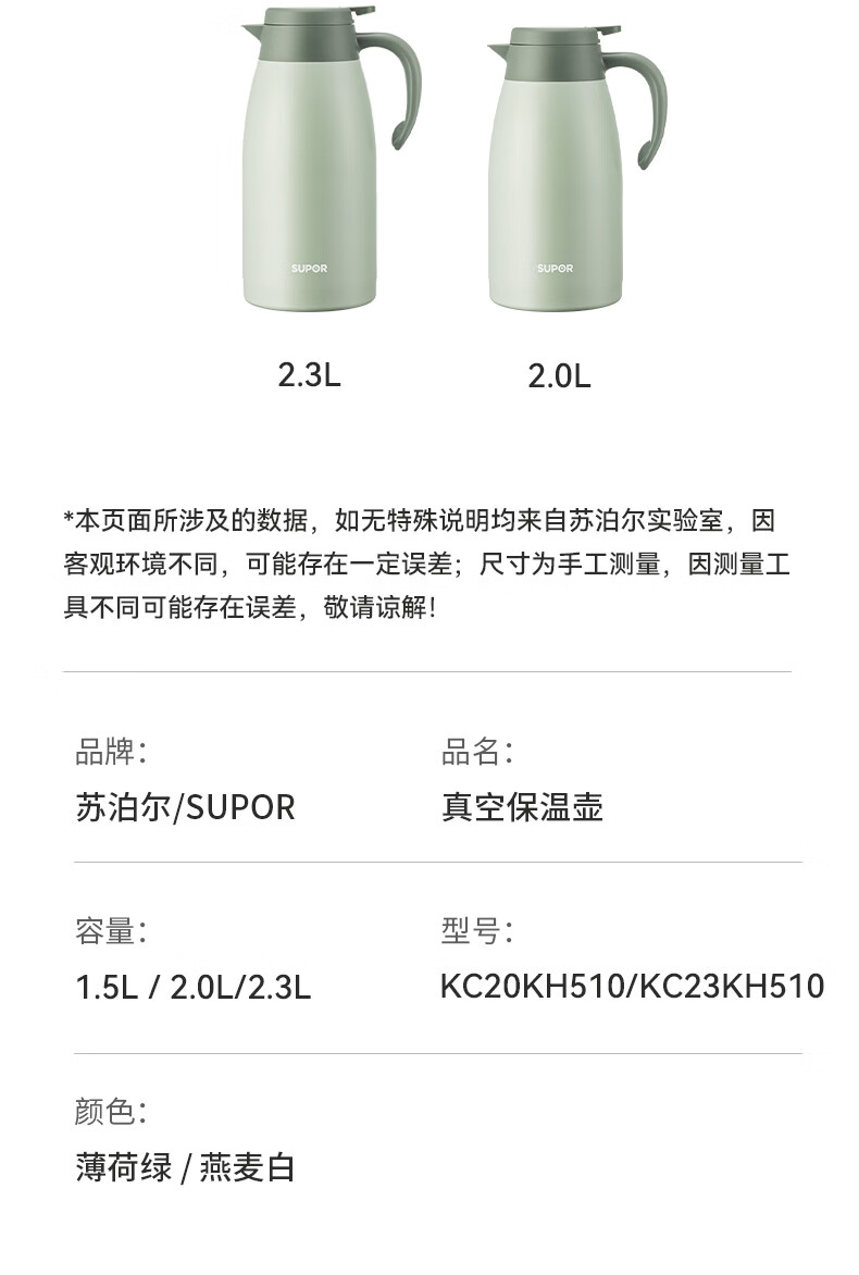苏泊尔(SUPOR)保温壶家用大容量水壶316L不锈钢真空保温瓶热水壶暖壶开水瓶2.0L