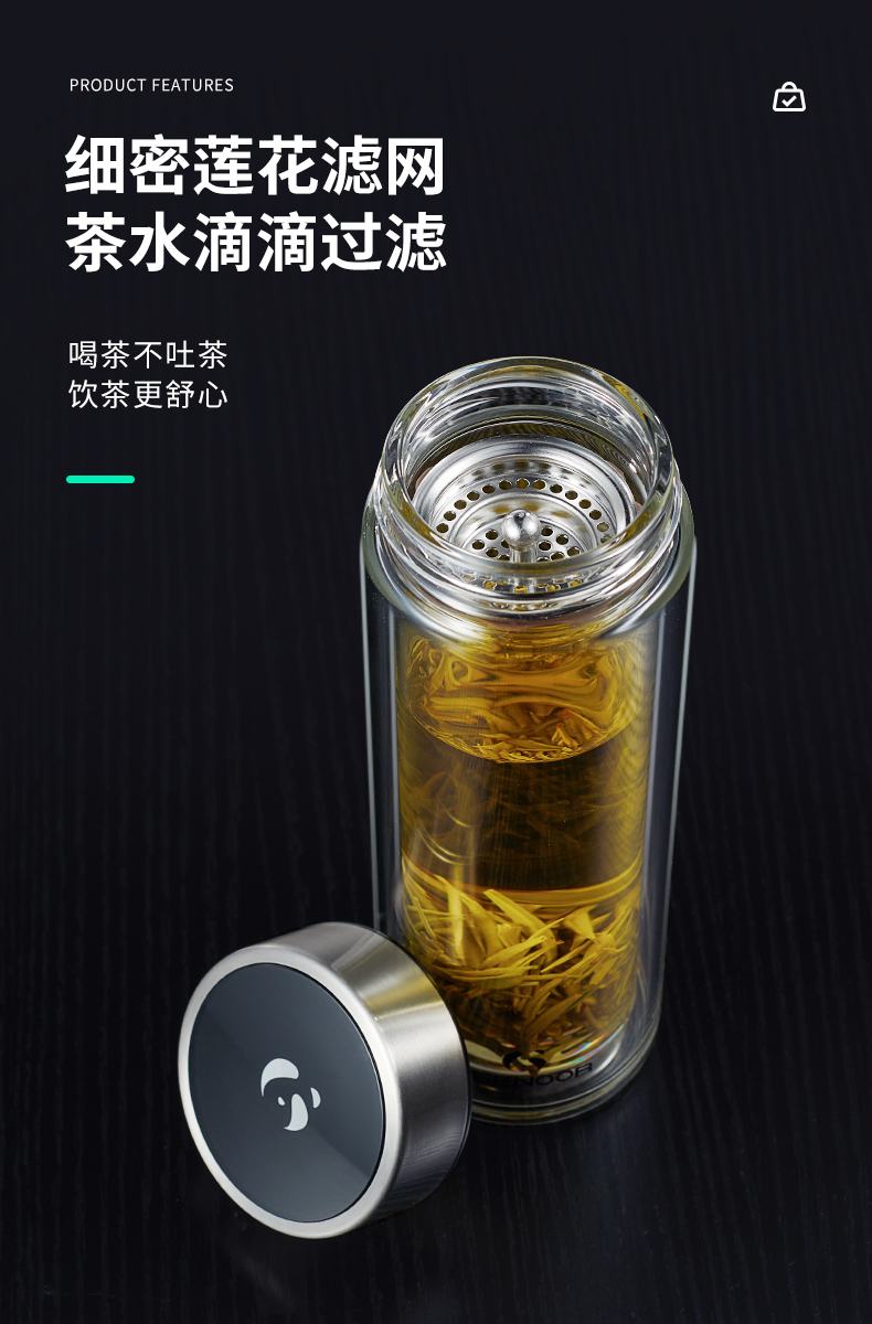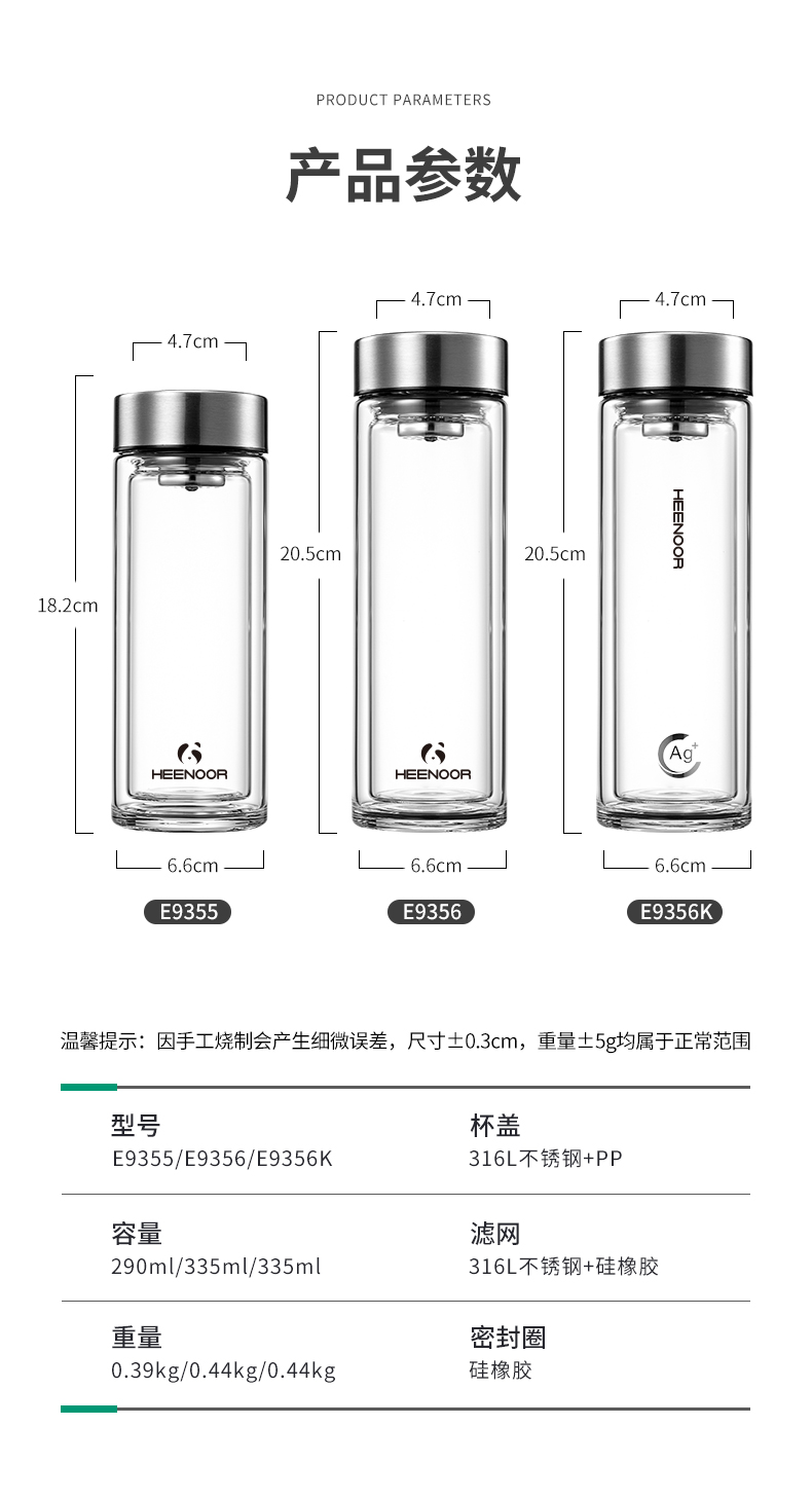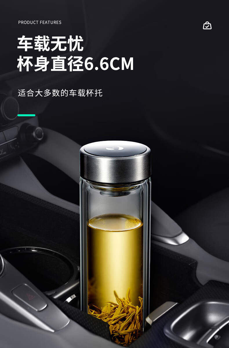 希诺(HEENOOR) 希诺玻璃杯双层官方直售男女士家用高档泡茶杯透明隔热车载水杯 本色-礼盒包装 335ml