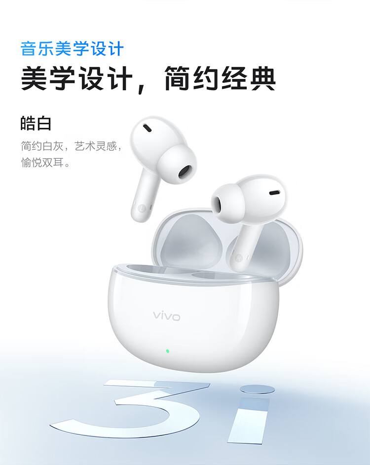 vivoTWS 3i 真无线蓝牙耳机 长续航AI通话降噪 蓝牙5.3 苹果华为小米手机适配入耳式 皓白情人节送礼物