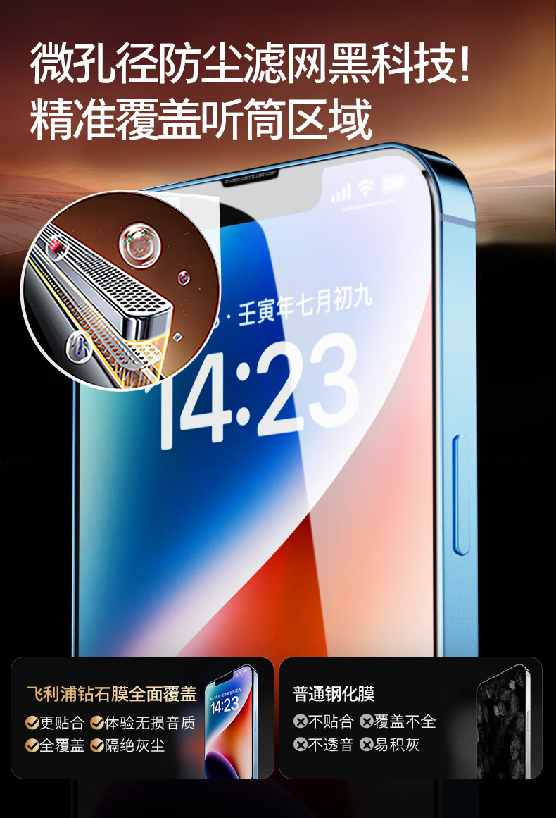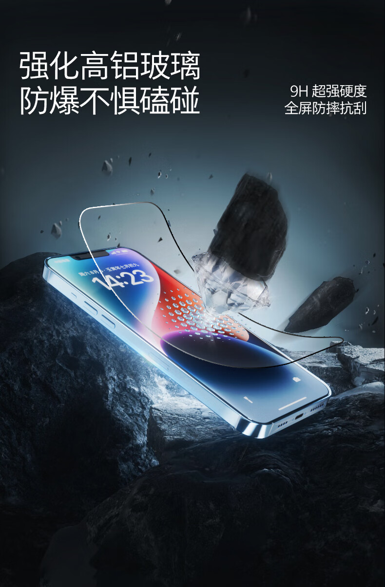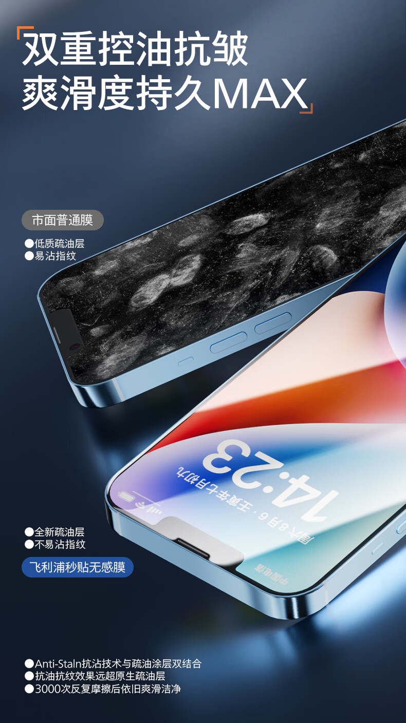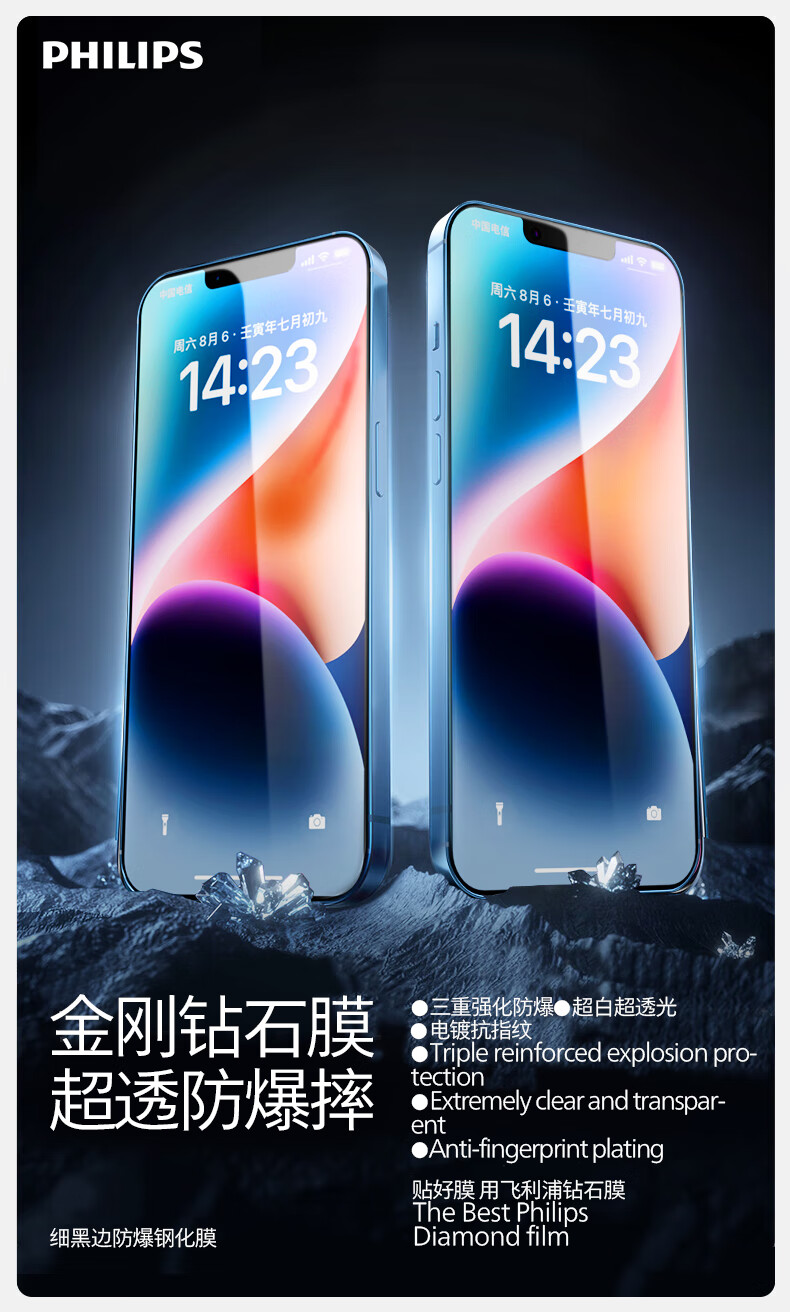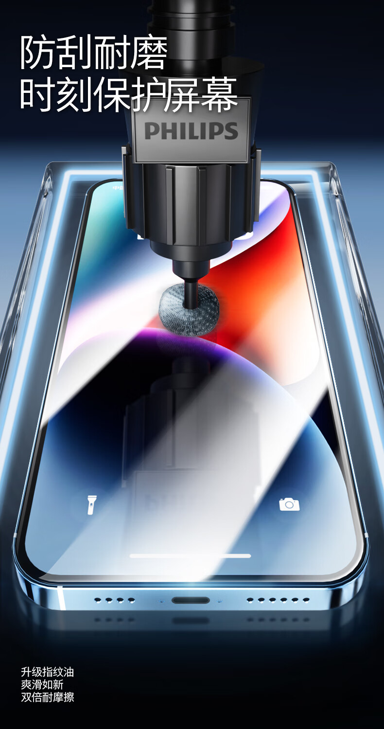 飞利浦适用苹果14Pro钢化膜 iPhone14pro手机膜全屏高清钢化膜防摔防爆抗指纹听筒防尘保护膜