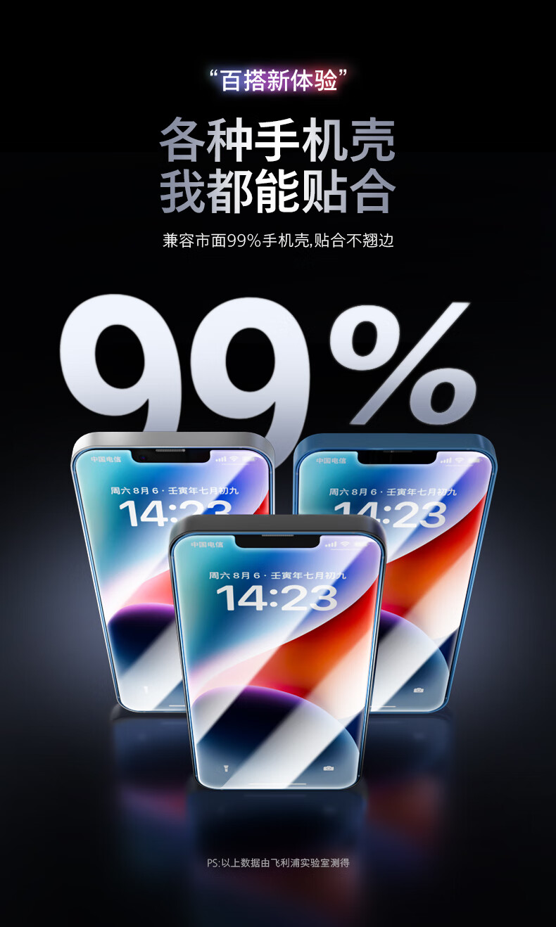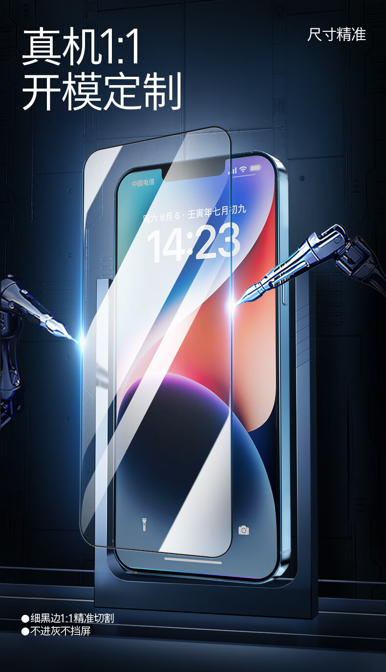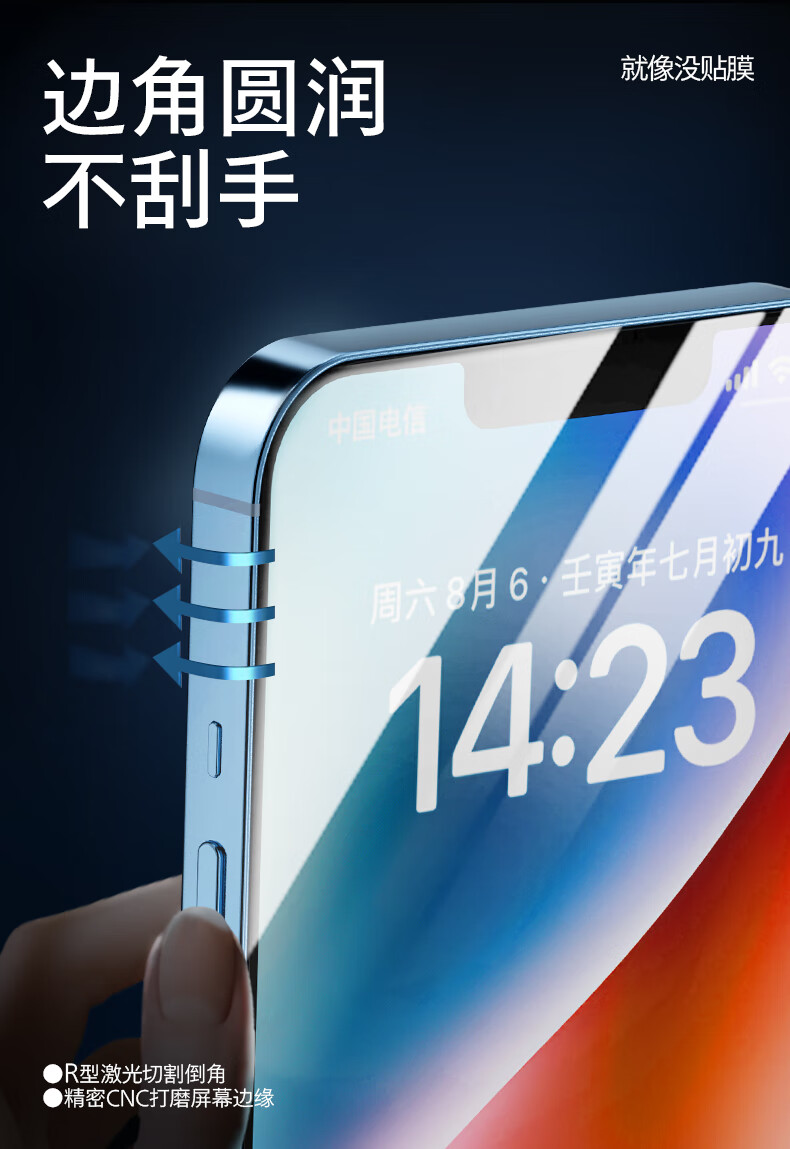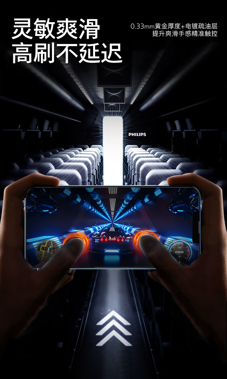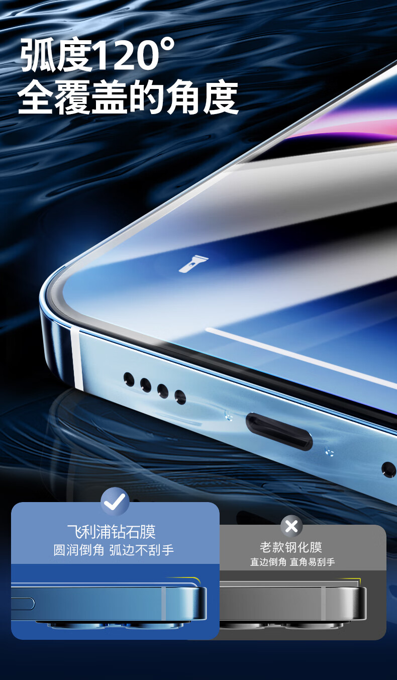 飞利浦适用苹果14Pro钢化膜 iPhone14pro手机膜全屏高清钢化膜防摔防爆抗指纹听筒防尘保护膜