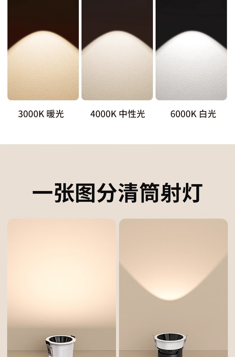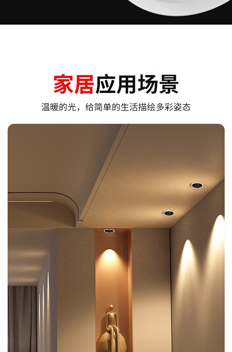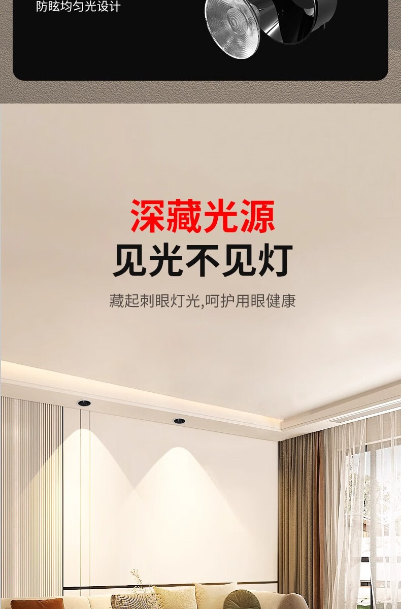 鹿家良品(LUUGAA)【4折起】小山丘射灯深防眩嵌入式全光谱筒射灯无主灯 斑鹿射灯开孔75mm|7W|3500K|亮黑杯