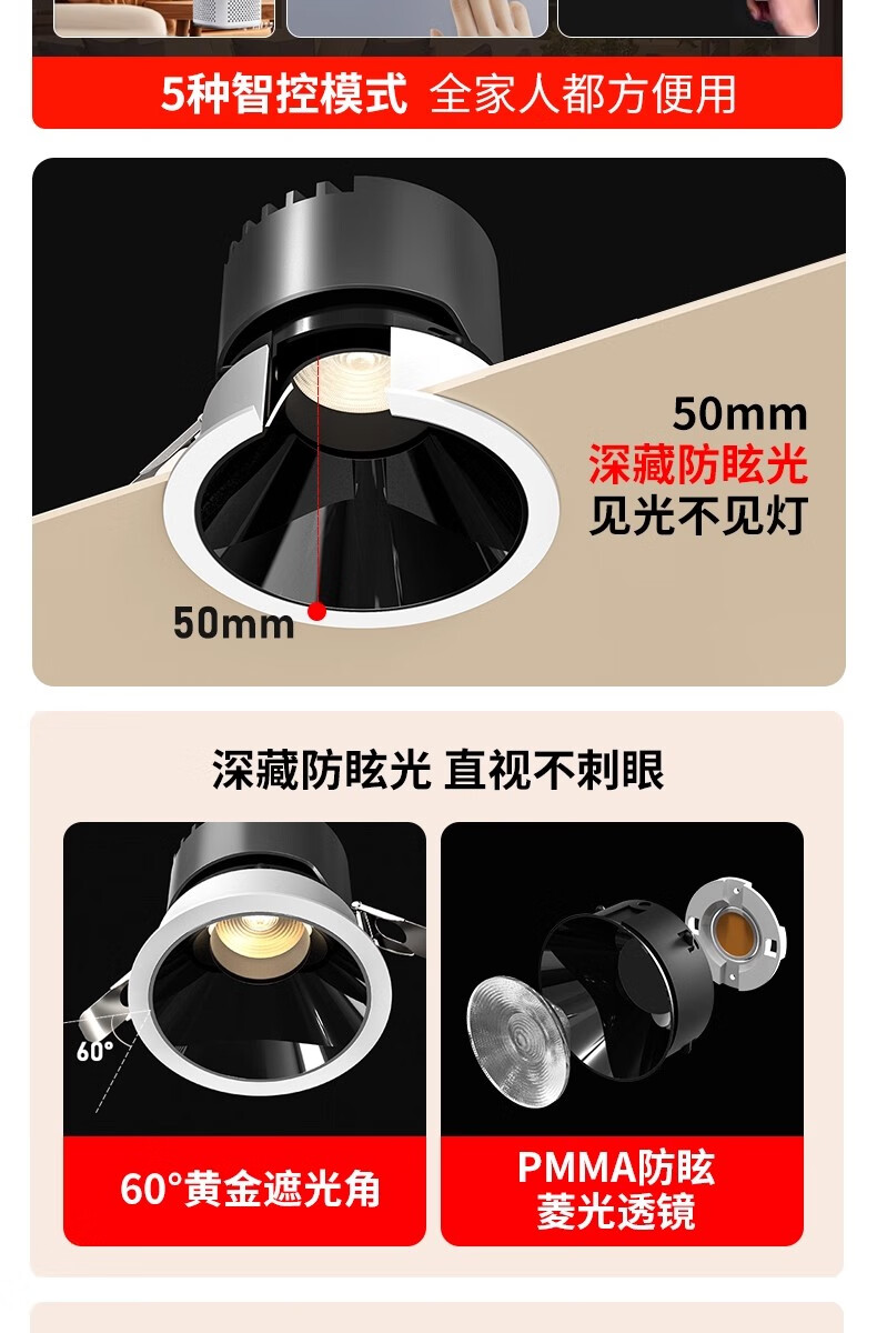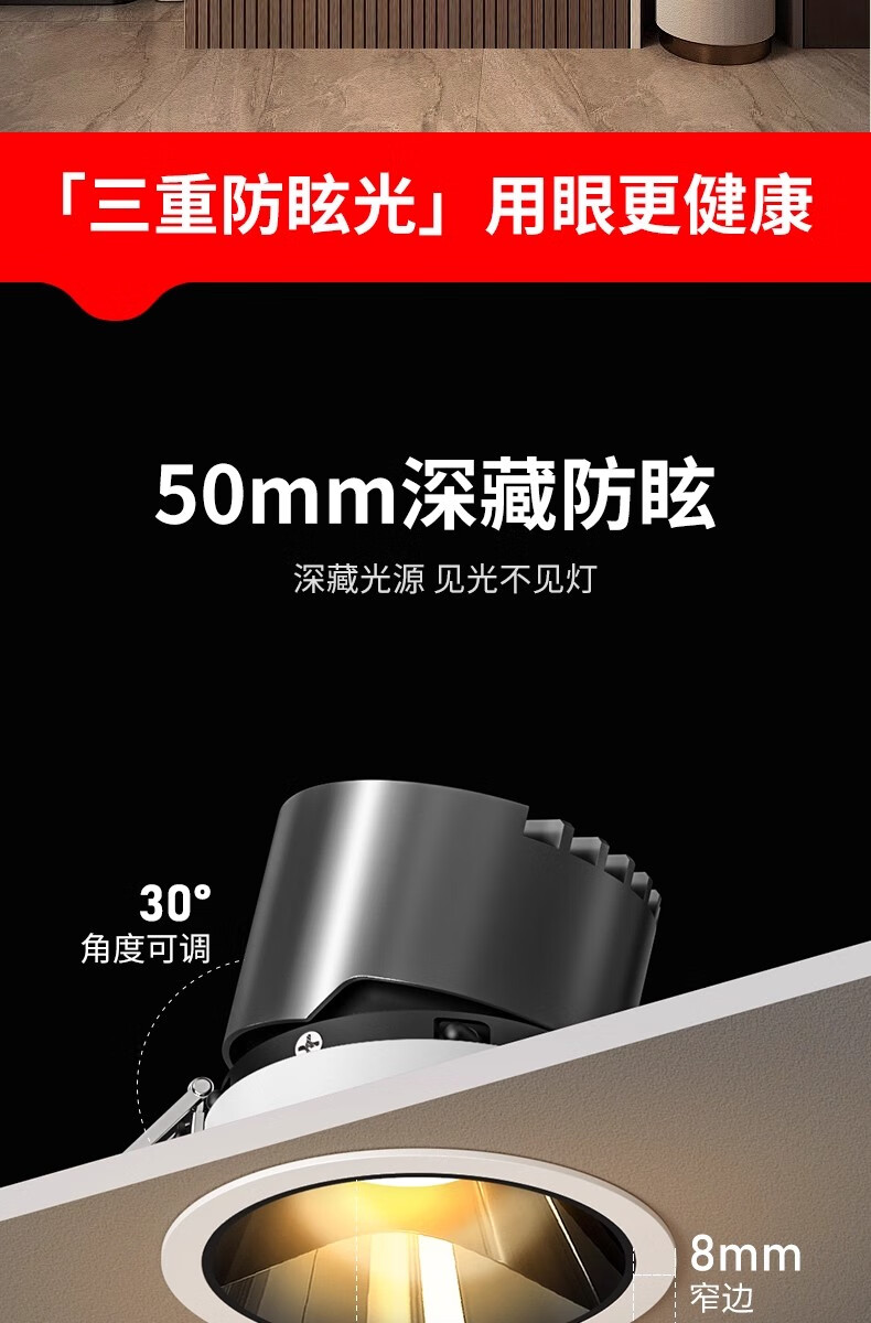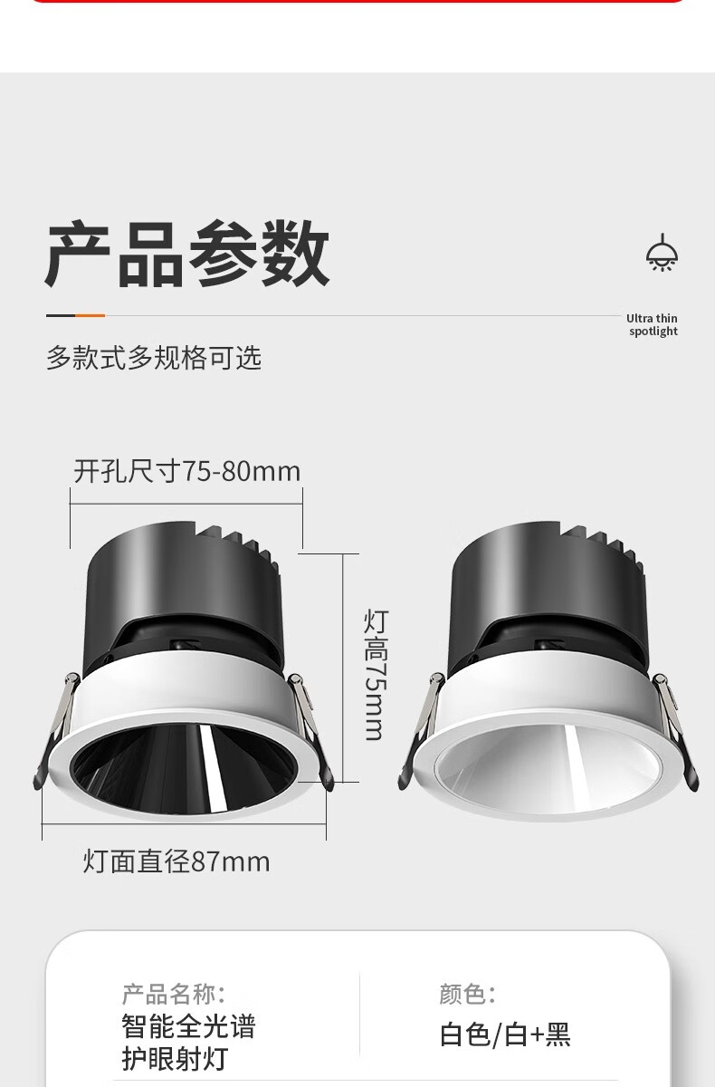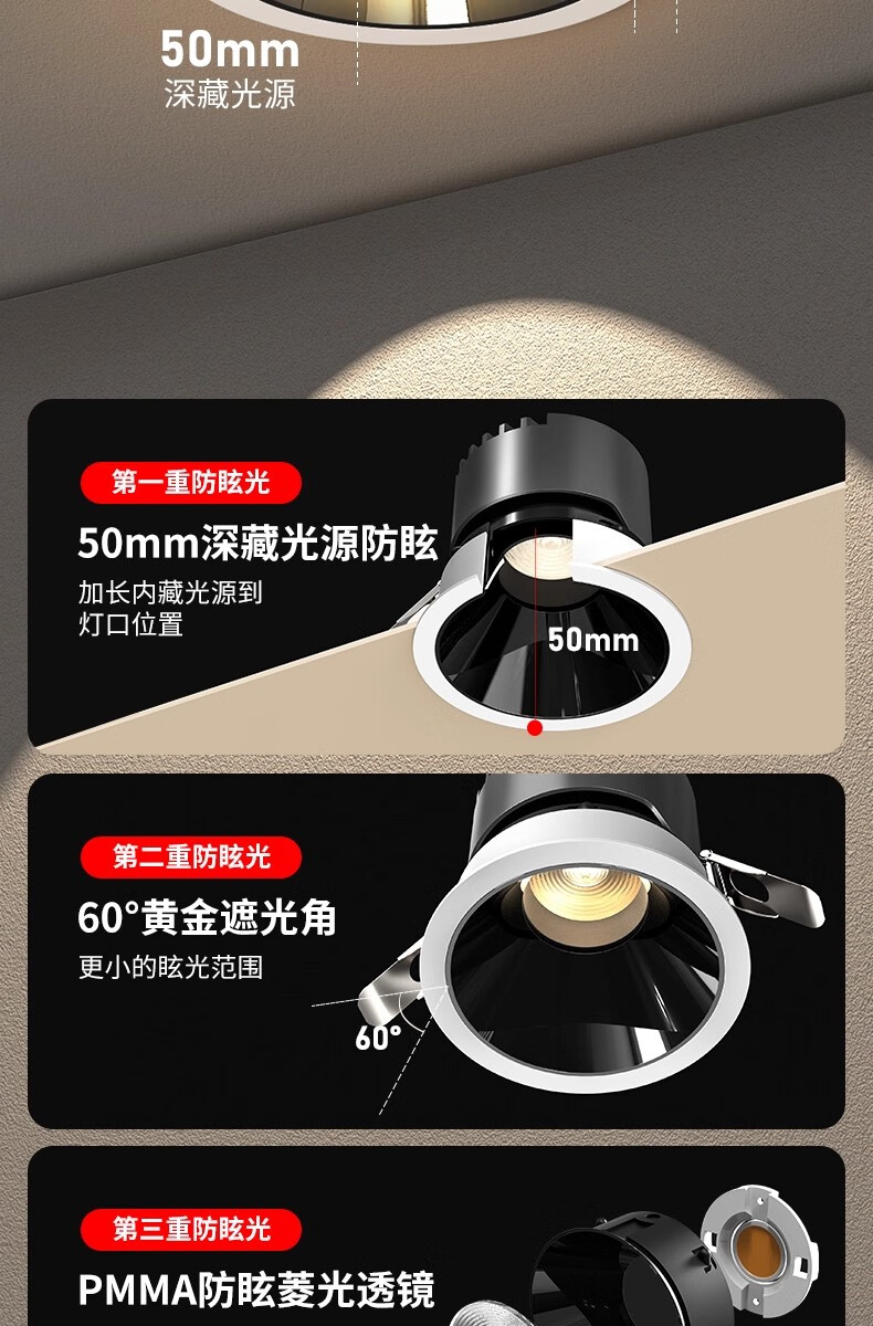 鹿家良品(LUUGAA)【4折起】小山丘射灯深防眩嵌入式全光谱筒射灯无主灯 斑鹿射灯开孔75mm|7W|3500K|亮黑杯