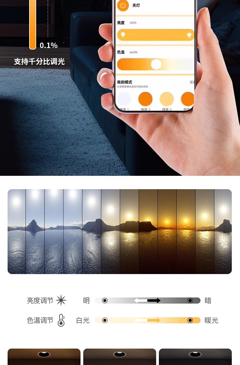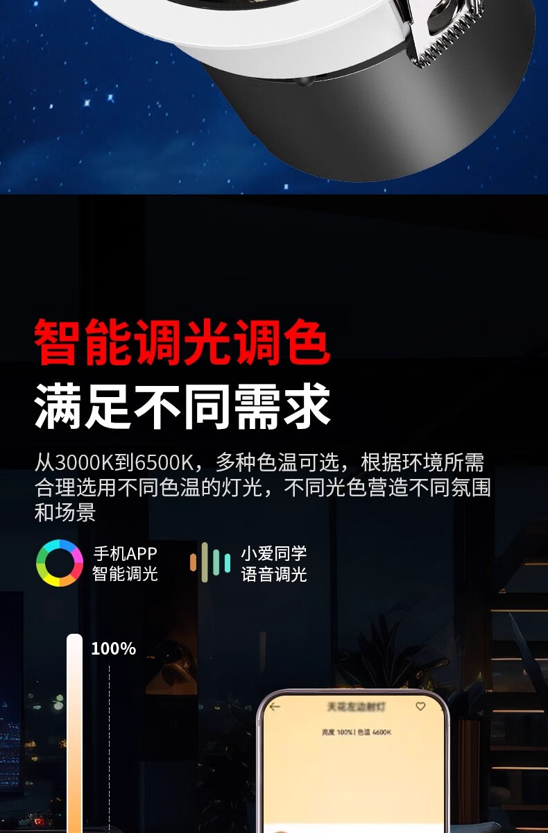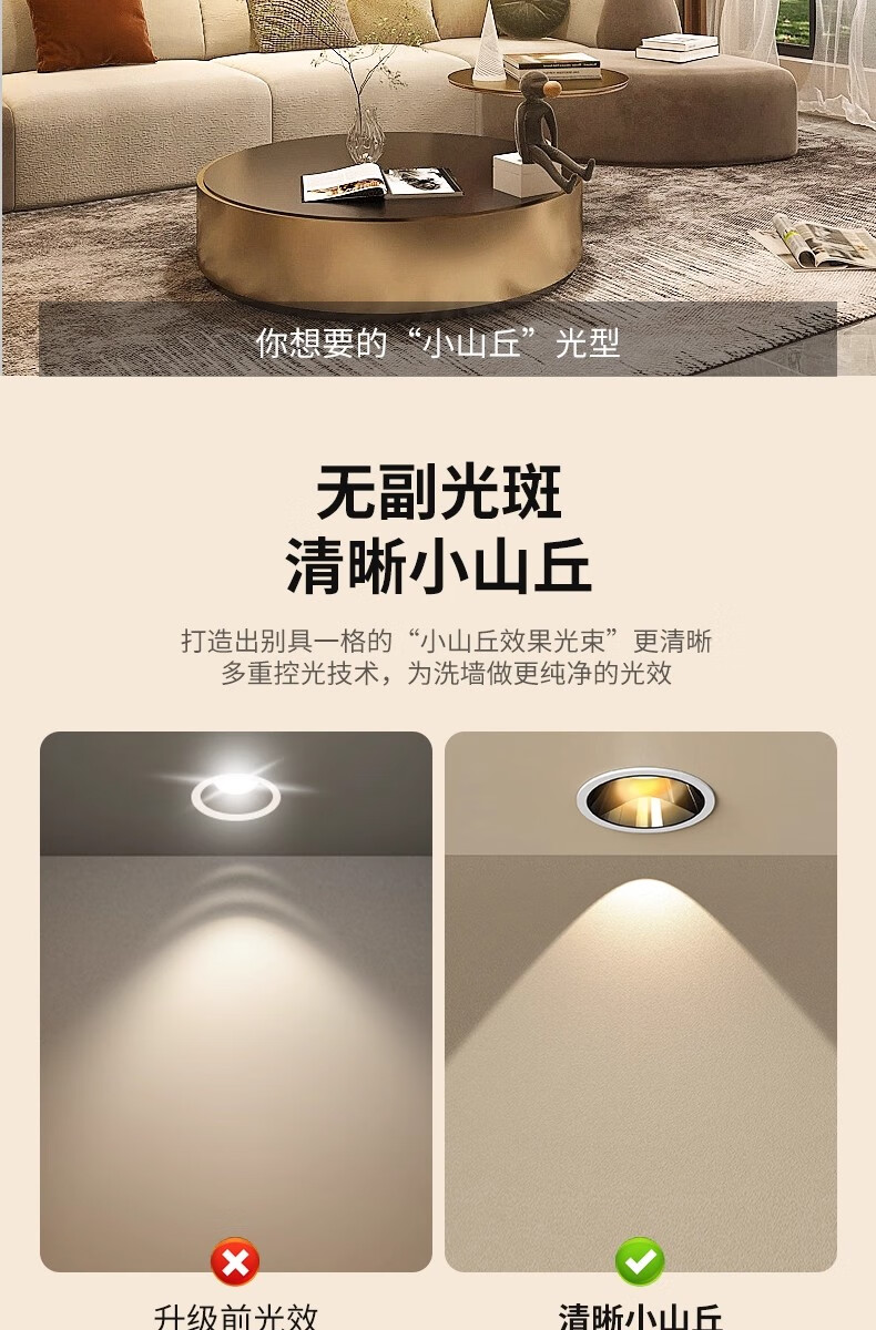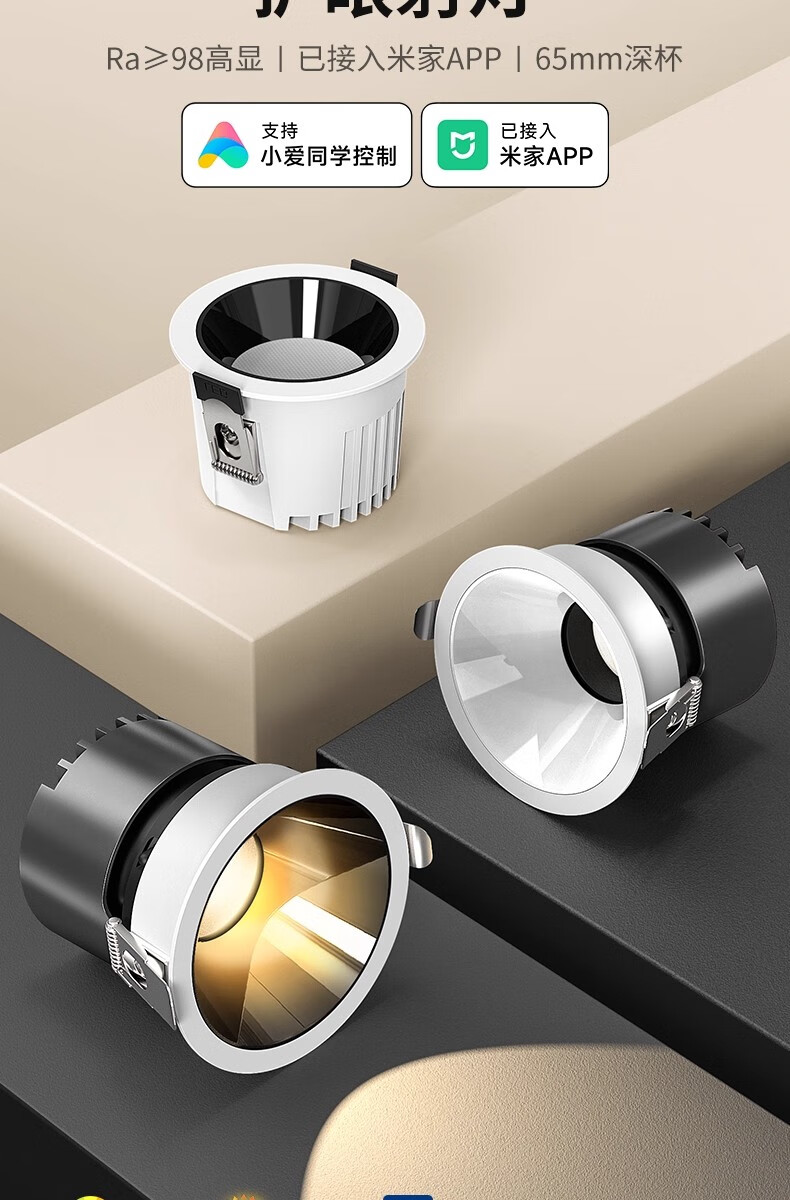 拉伯塔(LABOT)已接入米家智能小山丘射灯嵌入式COB客厅家用语音调光led防眩筒灯 75开孔-白杯/9W【接入米家APP】 【uItra版mesh2.0协议】