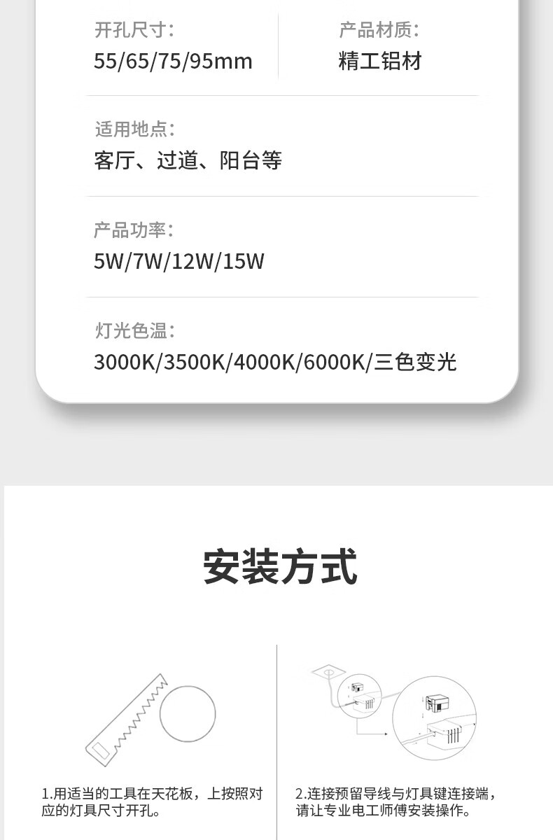 振牛嵌入式射灯12w18w24w商用天花灯眼镜店铺黄金珠宝灯led专用灯聚光 磨砂银【3W白光】开孔7.5cm 商用级珠宝射灯