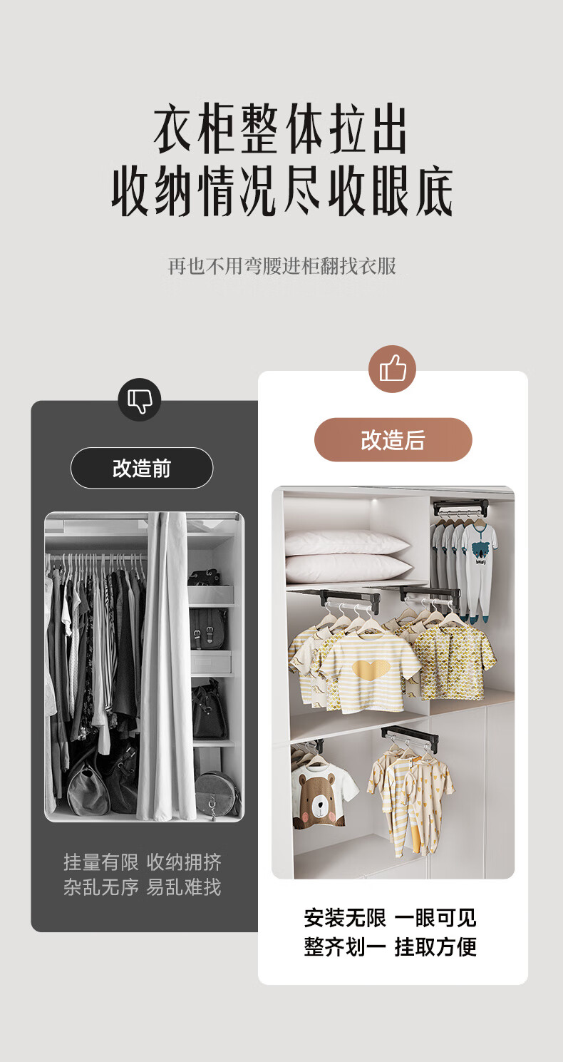 固特抽拉伸缩裤架滑轨衣柜柜内裤挂裤抽收纳架多功能挂衣杆衣架 028阻尼旗舰款(柜深≥260)黑色 1个