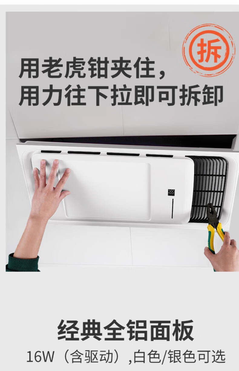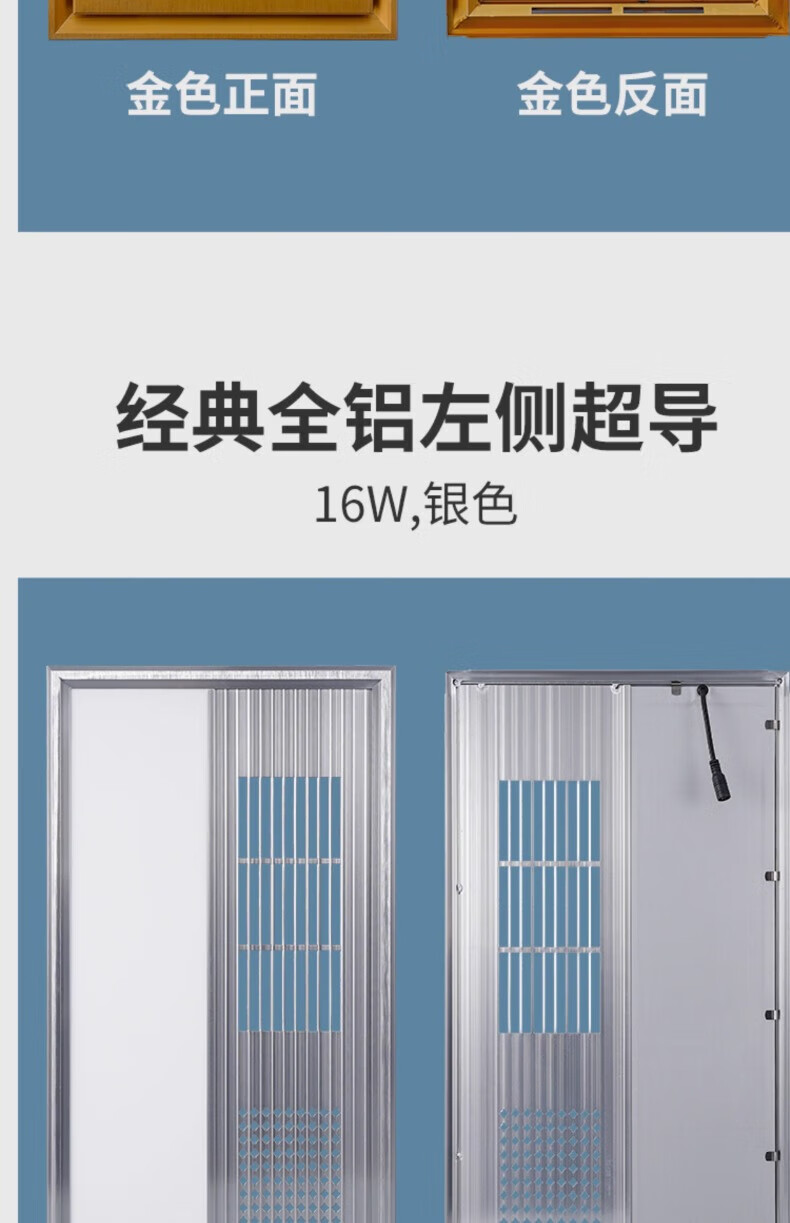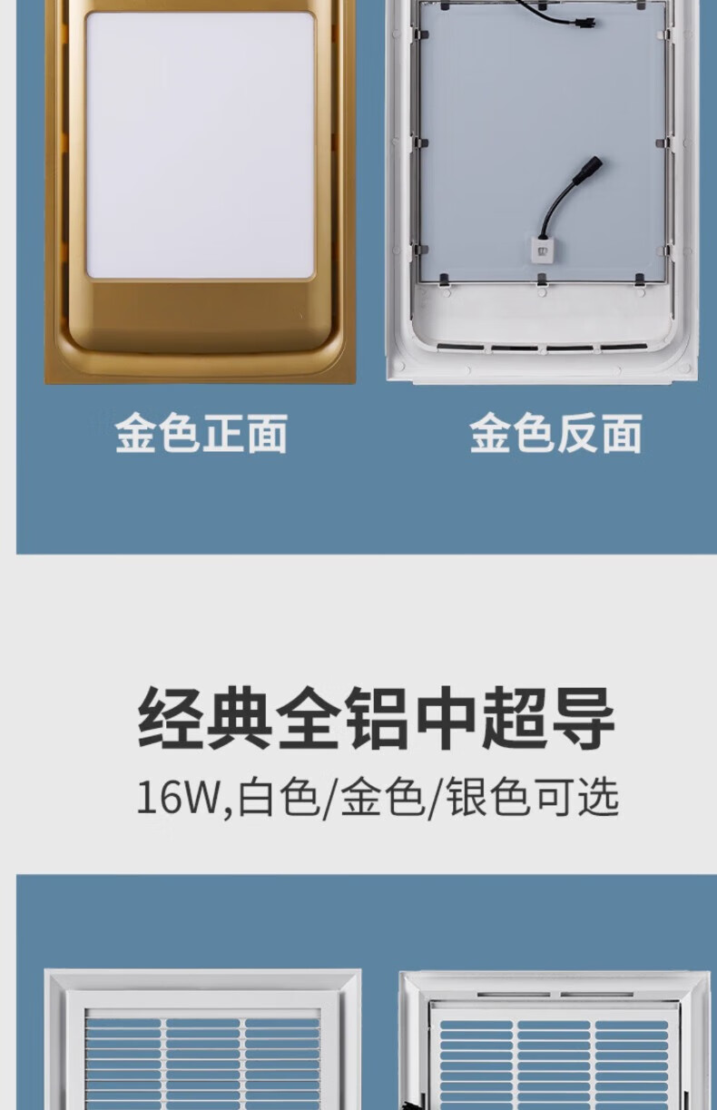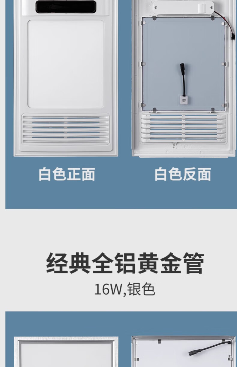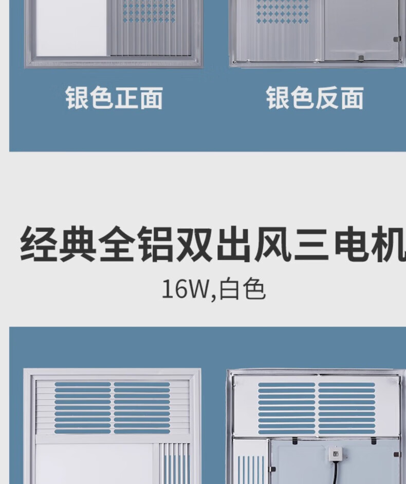 拉伯塔集成吊顶风暖浴霸面板面罩灯嵌入式浴霸外壳通用配件LED灯板浴霸 经典全铝基础款-30*60-银色 送驱动器不含主机