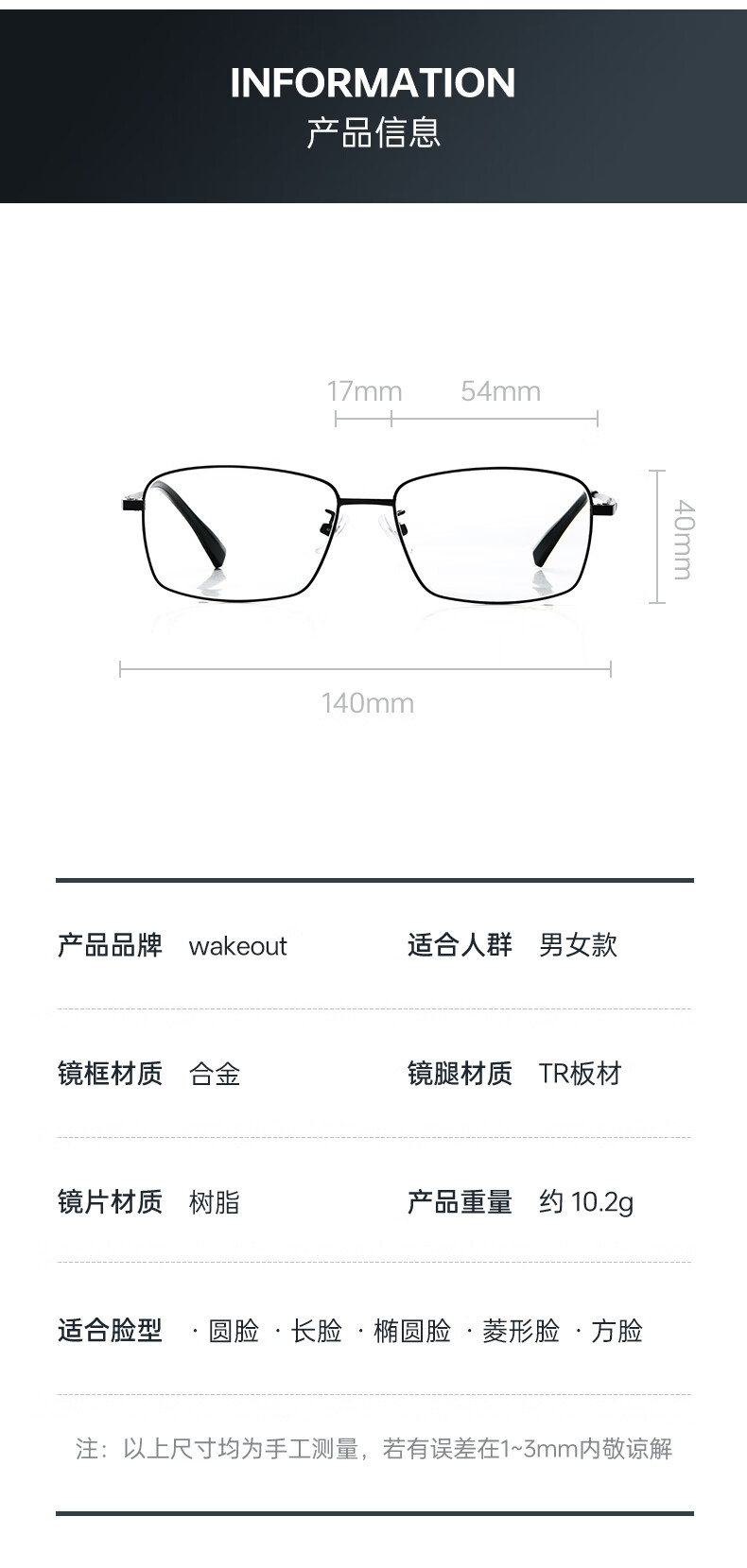 wakeout老花镜防蓝光高清时尚便携 超轻老花眼镜老光眼镜150度开学