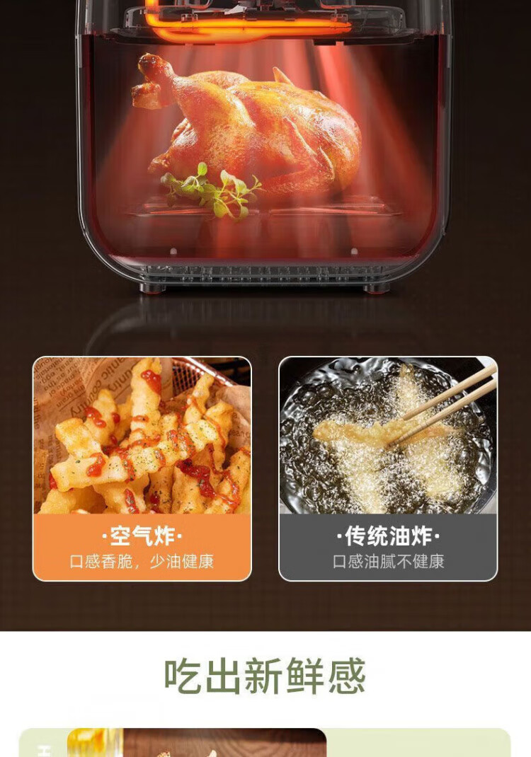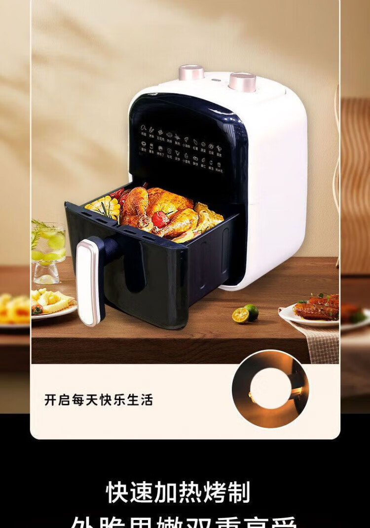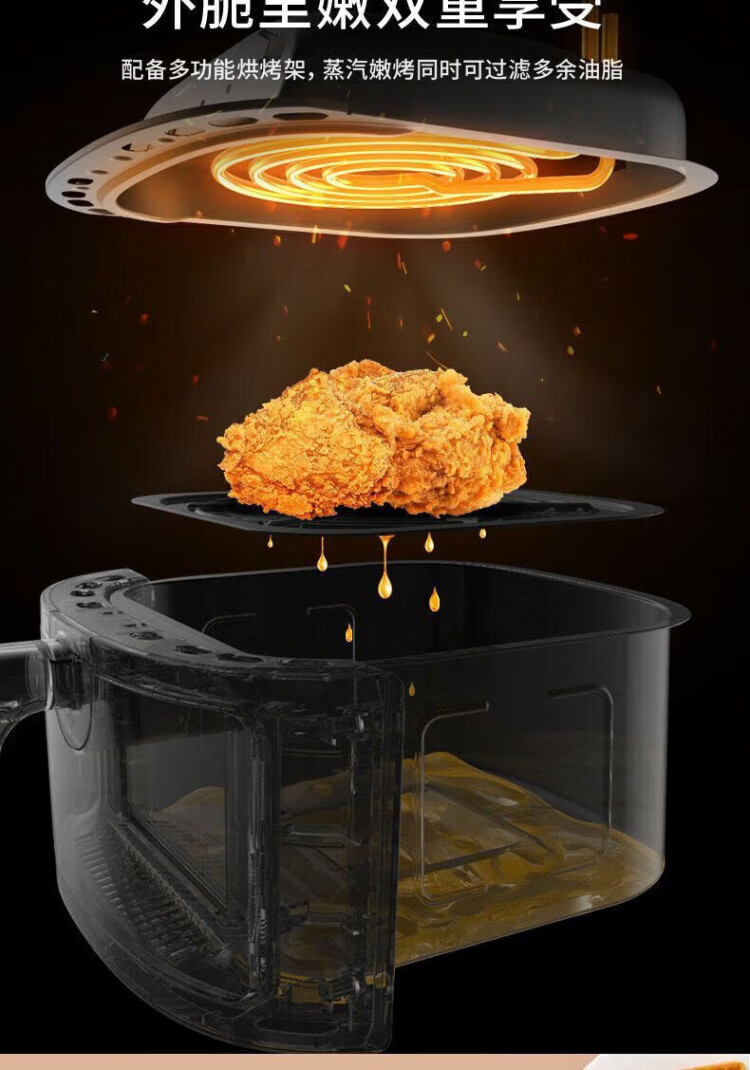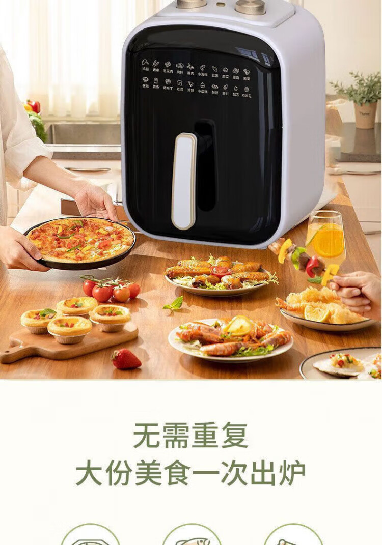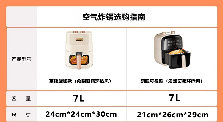 空气炸锅多功能烤箱智能7L大容量电炸锅 免翻面无油烟电炸锅低脂煎炸锅大功率 基础旋钮款(免翻面循环热风) 7L 京东快递送货到家