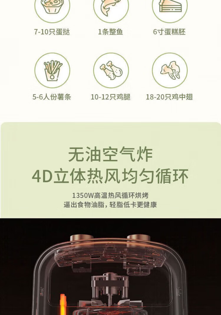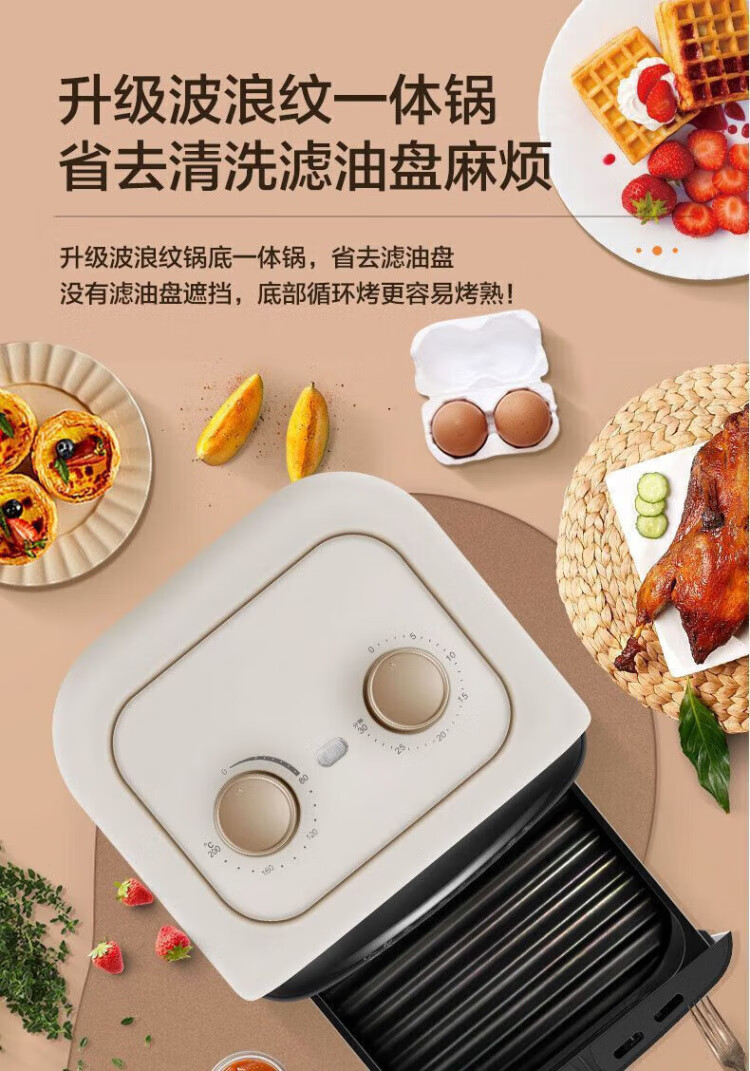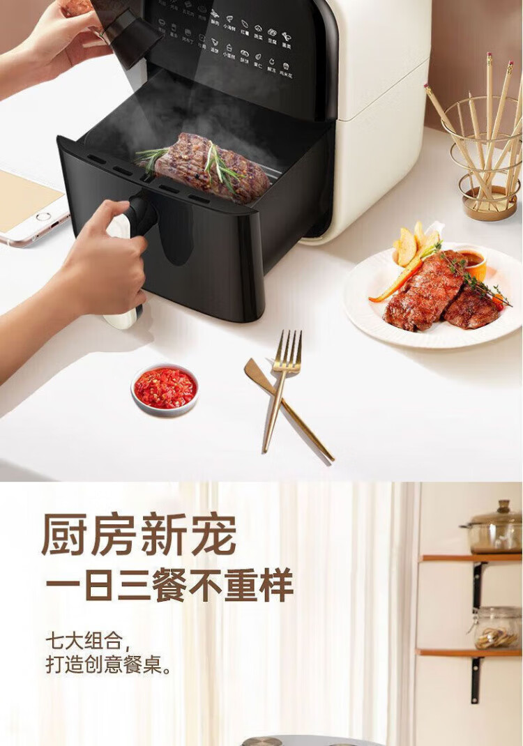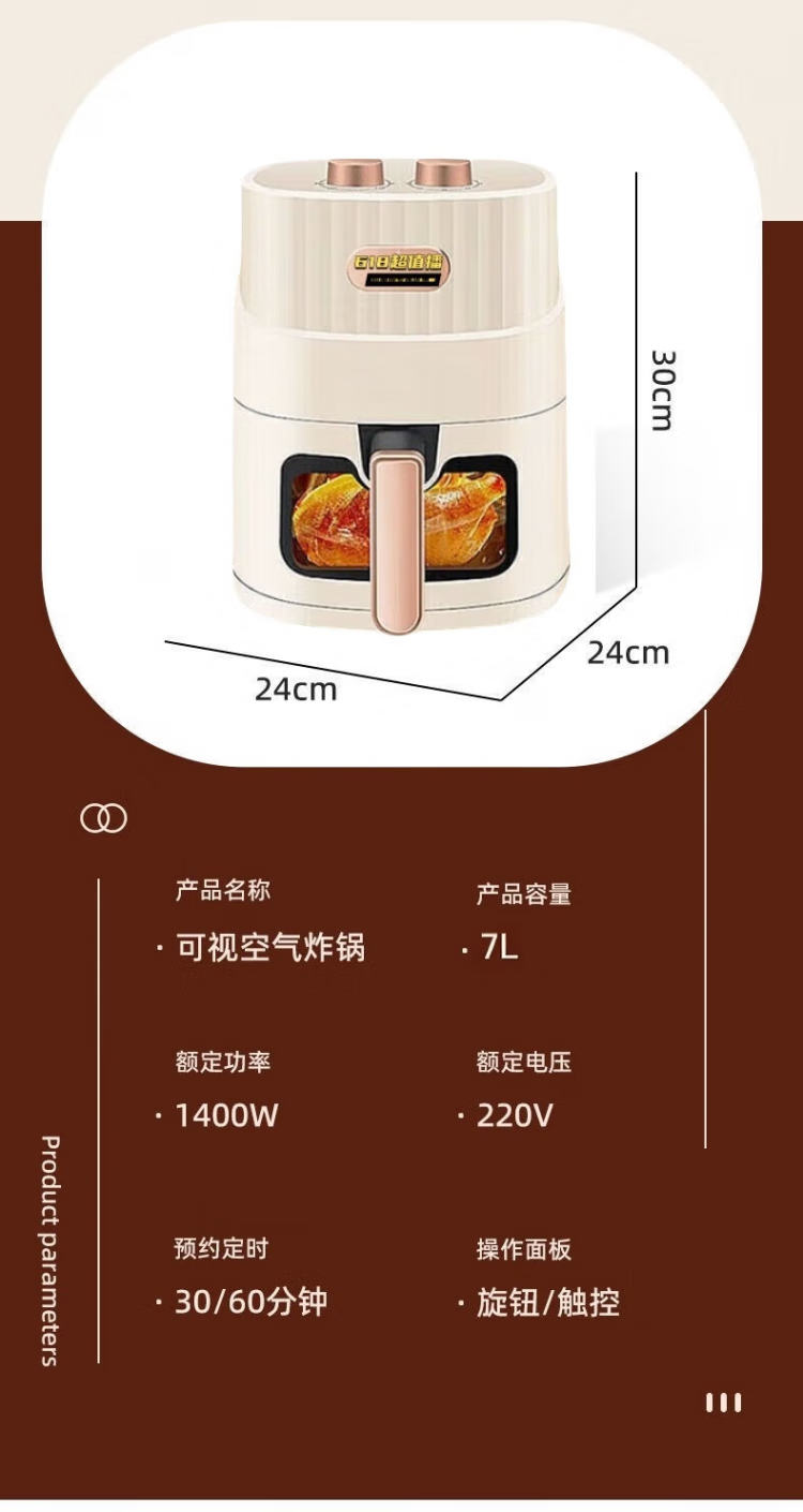 空气炸锅多功能烤箱智能7L大容量电炸锅 免翻面无油烟电炸锅低脂煎炸锅大功率 基础旋钮款(免翻面循环热风) 7L 京东快递送货到家