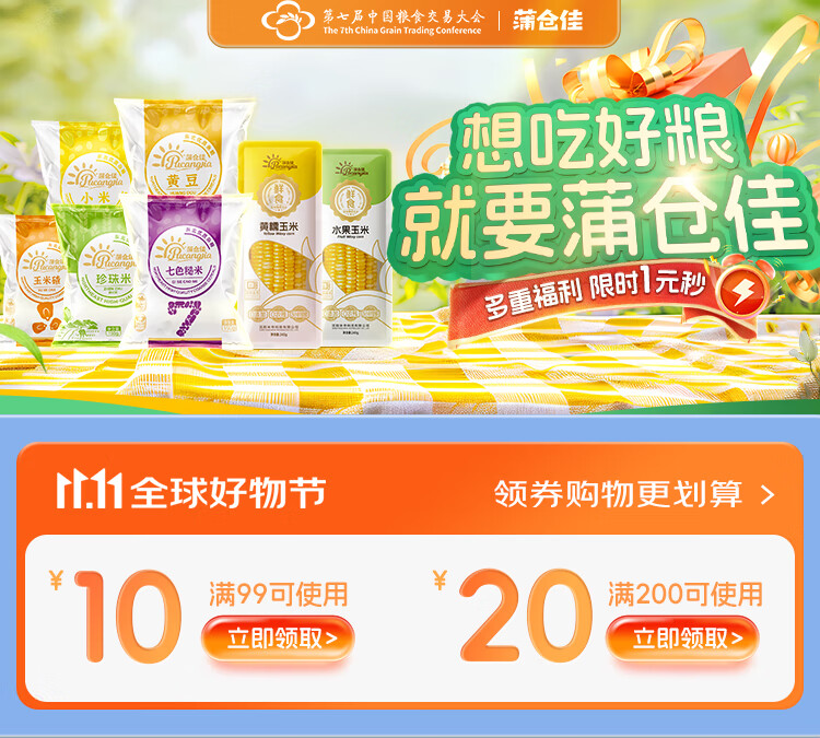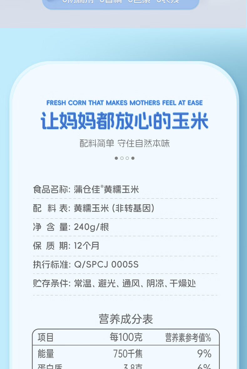 蒲仓佳黄糯玉米240g*10根>4.8斤东北软糯香甜粘玉米棒低脂真空包装早餐