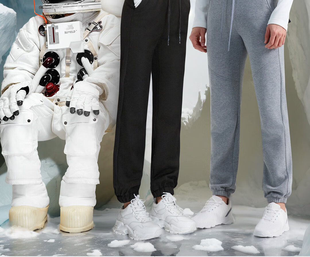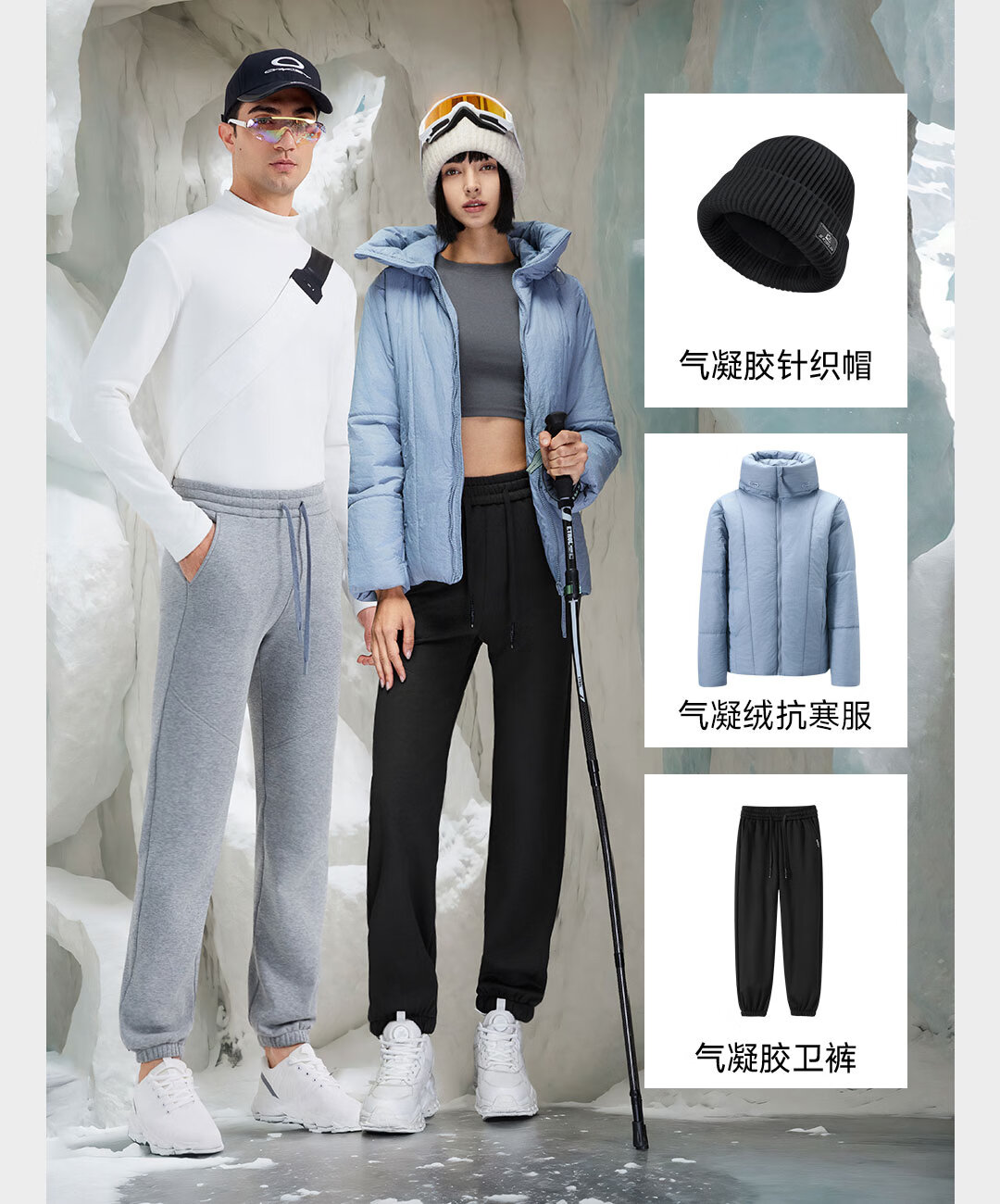 素湃气凝胶防寒卫裤男女加绒加厚运动裤冬季纯棉保暖裤 曜石黑 3XL