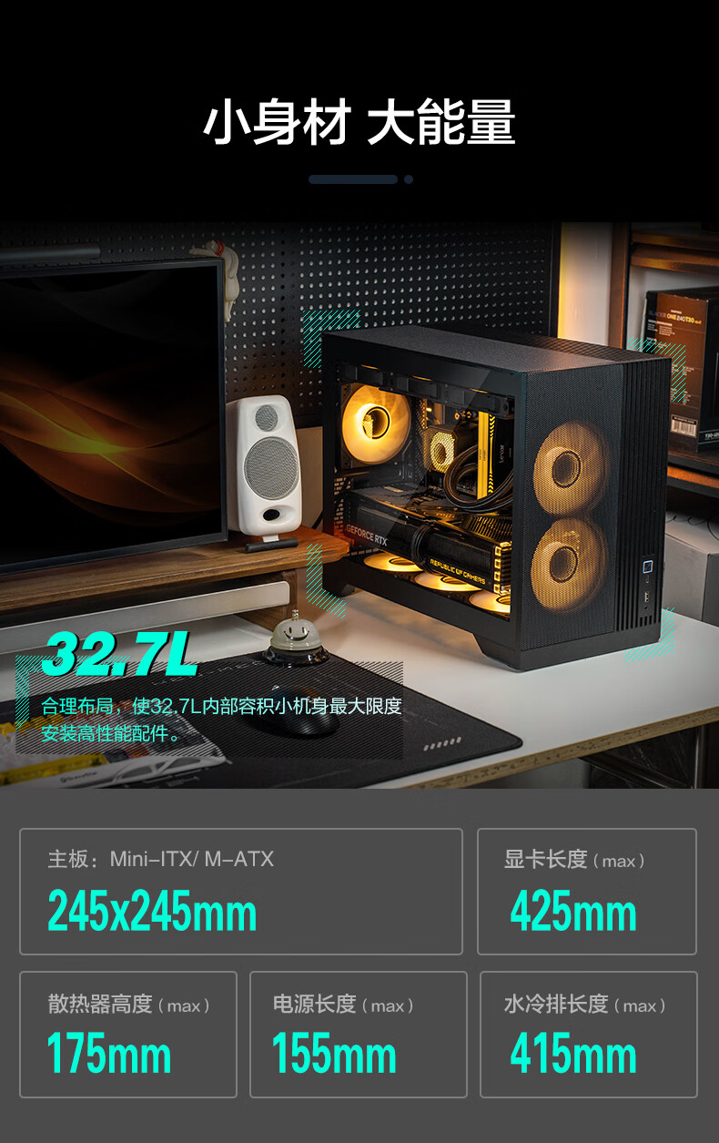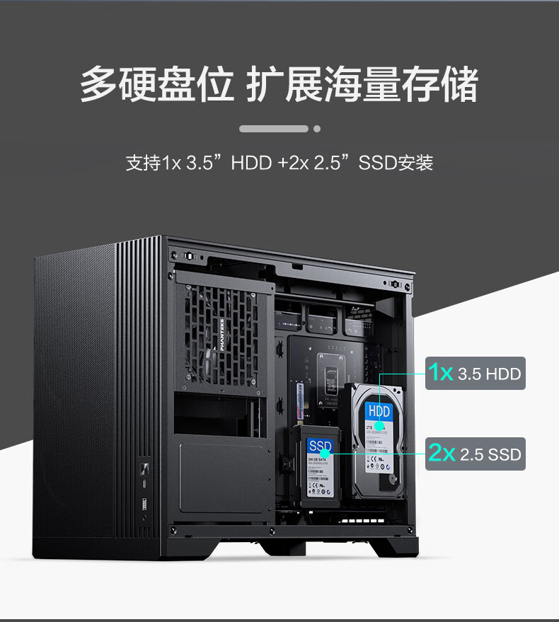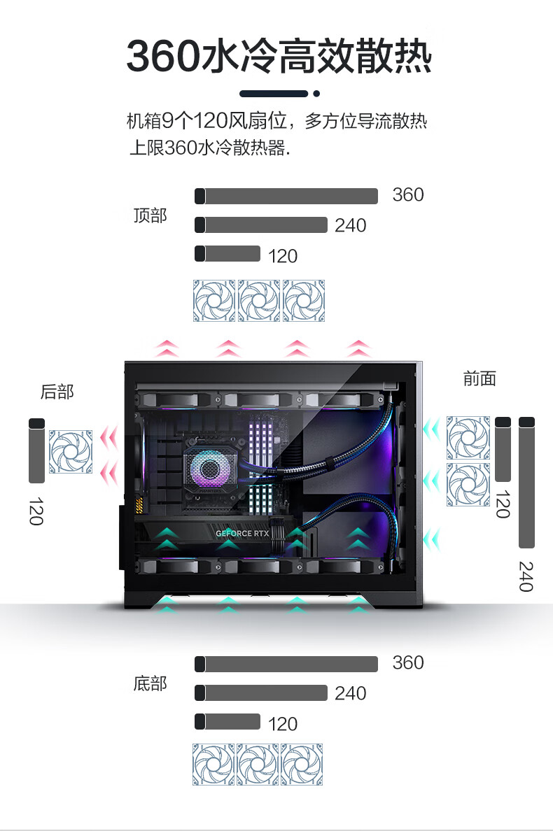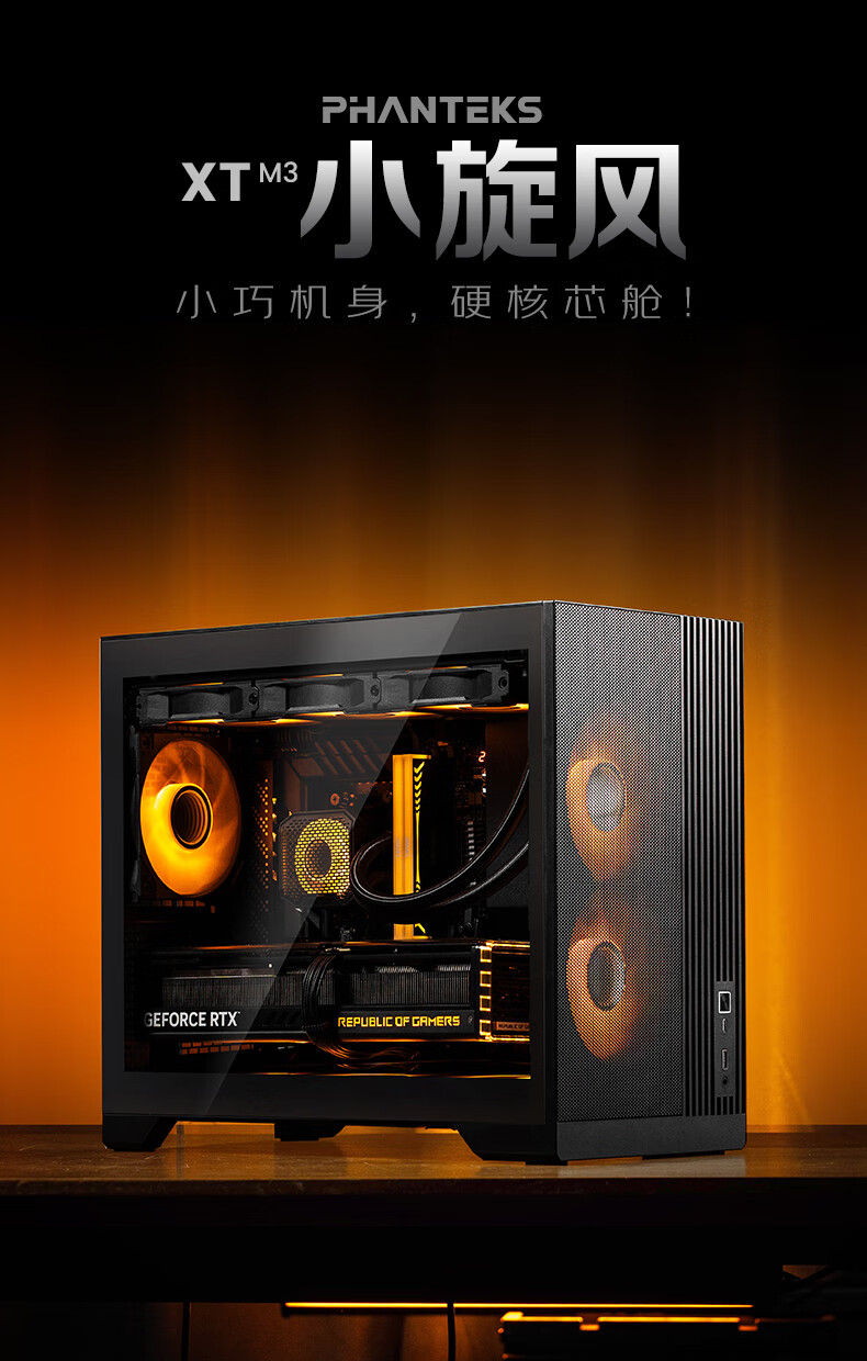 PHANTEKS追风者XT M3小旋风MATX黑色侧透散热台式电脑桌面小机箱(360水冷/9风扇位/四槽PCI/Type-C 20Gb)