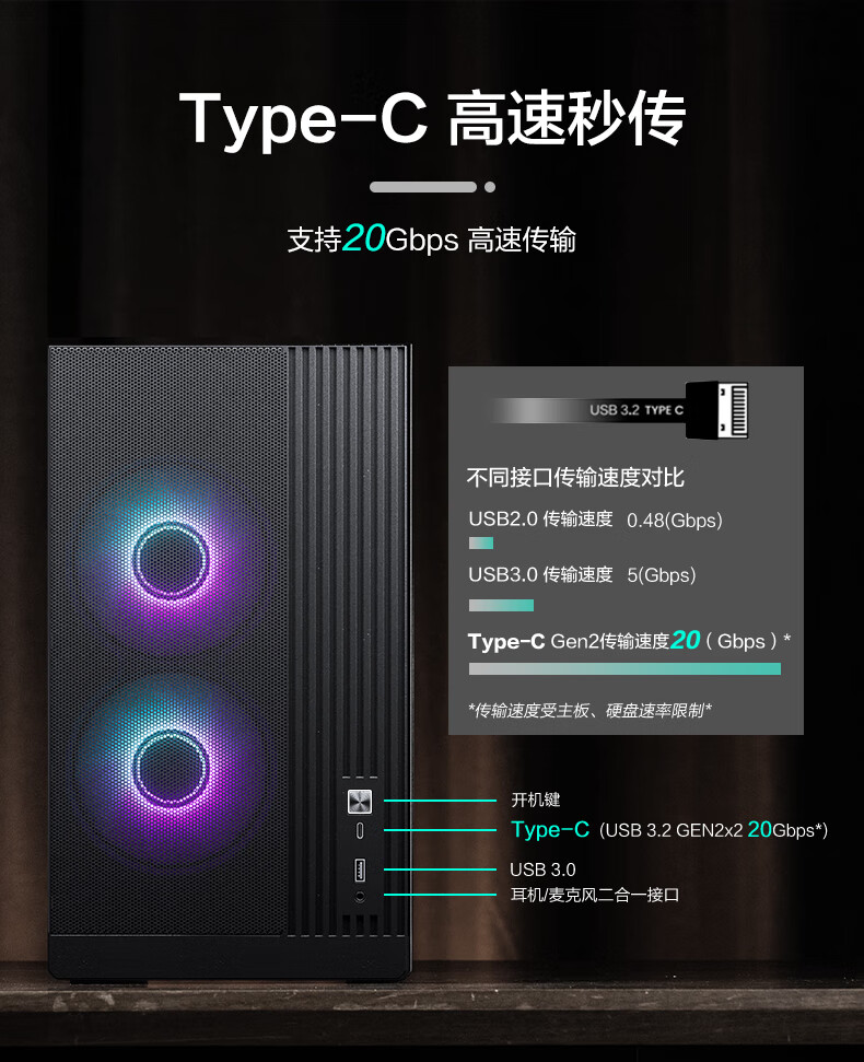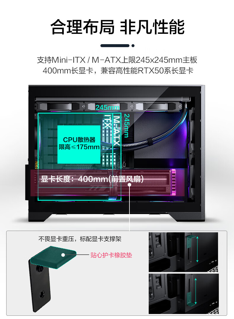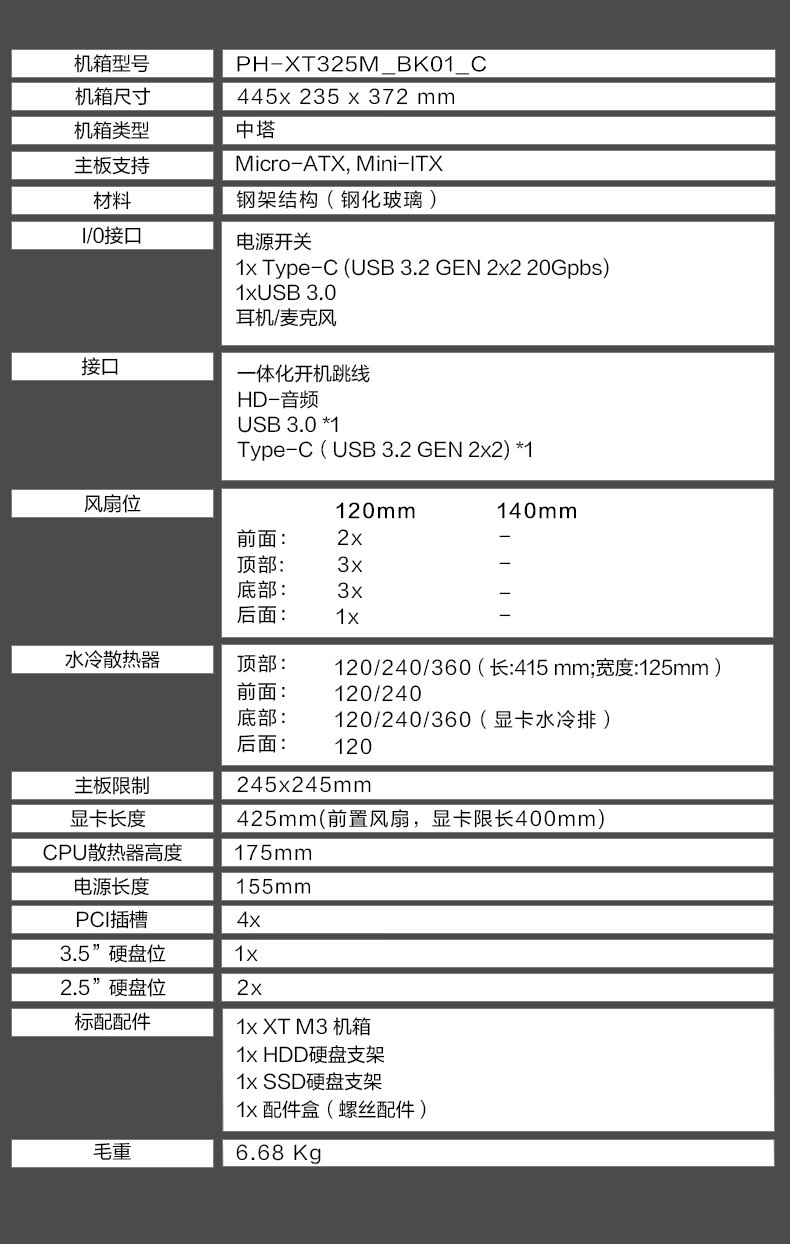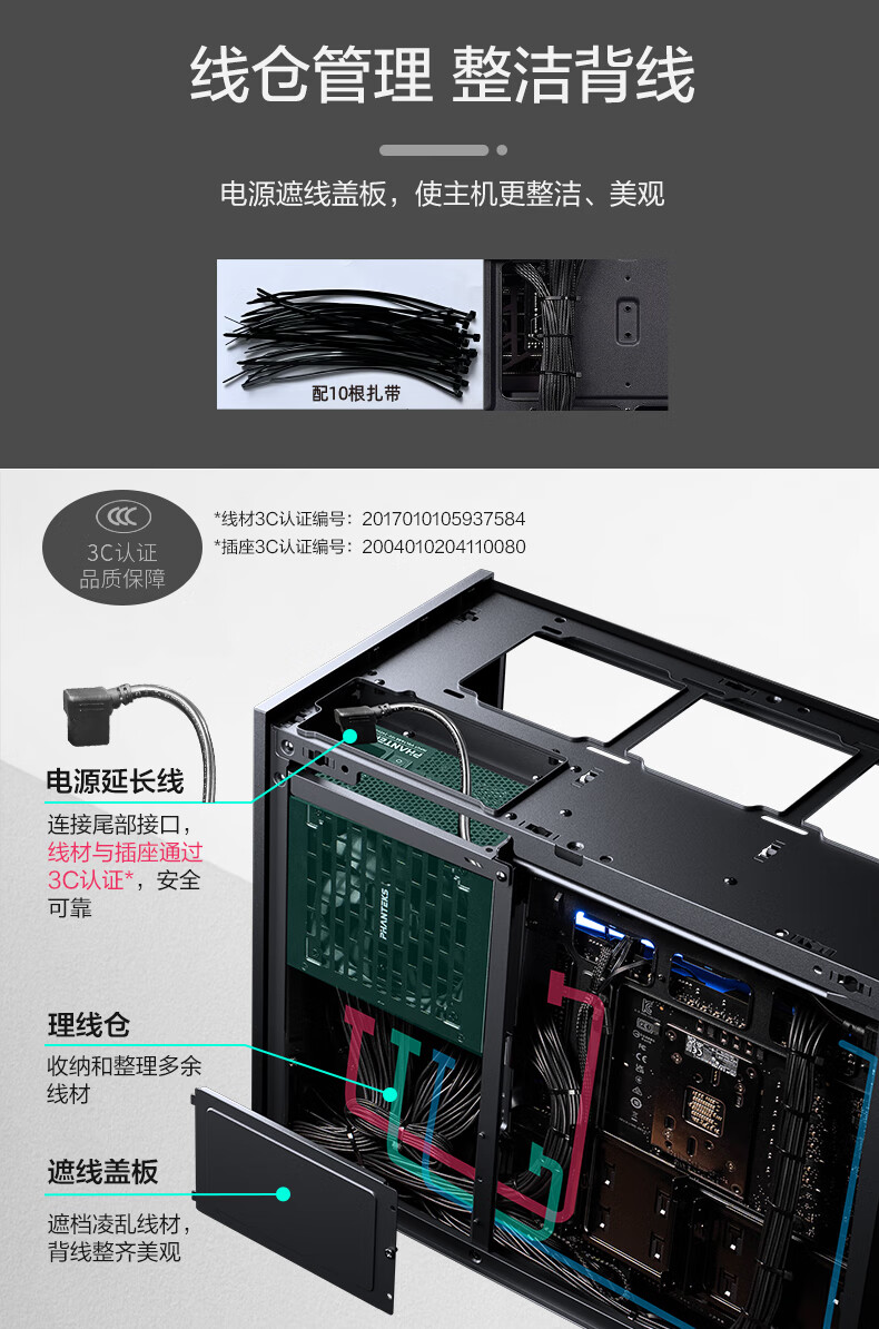 PHANTEKS追风者XT M3小旋风MATX黑色侧透散热台式电脑桌面小机箱(360水冷/9风扇位/四槽PCI/Type-C 20Gb)