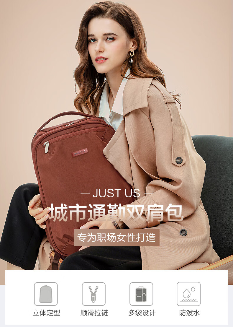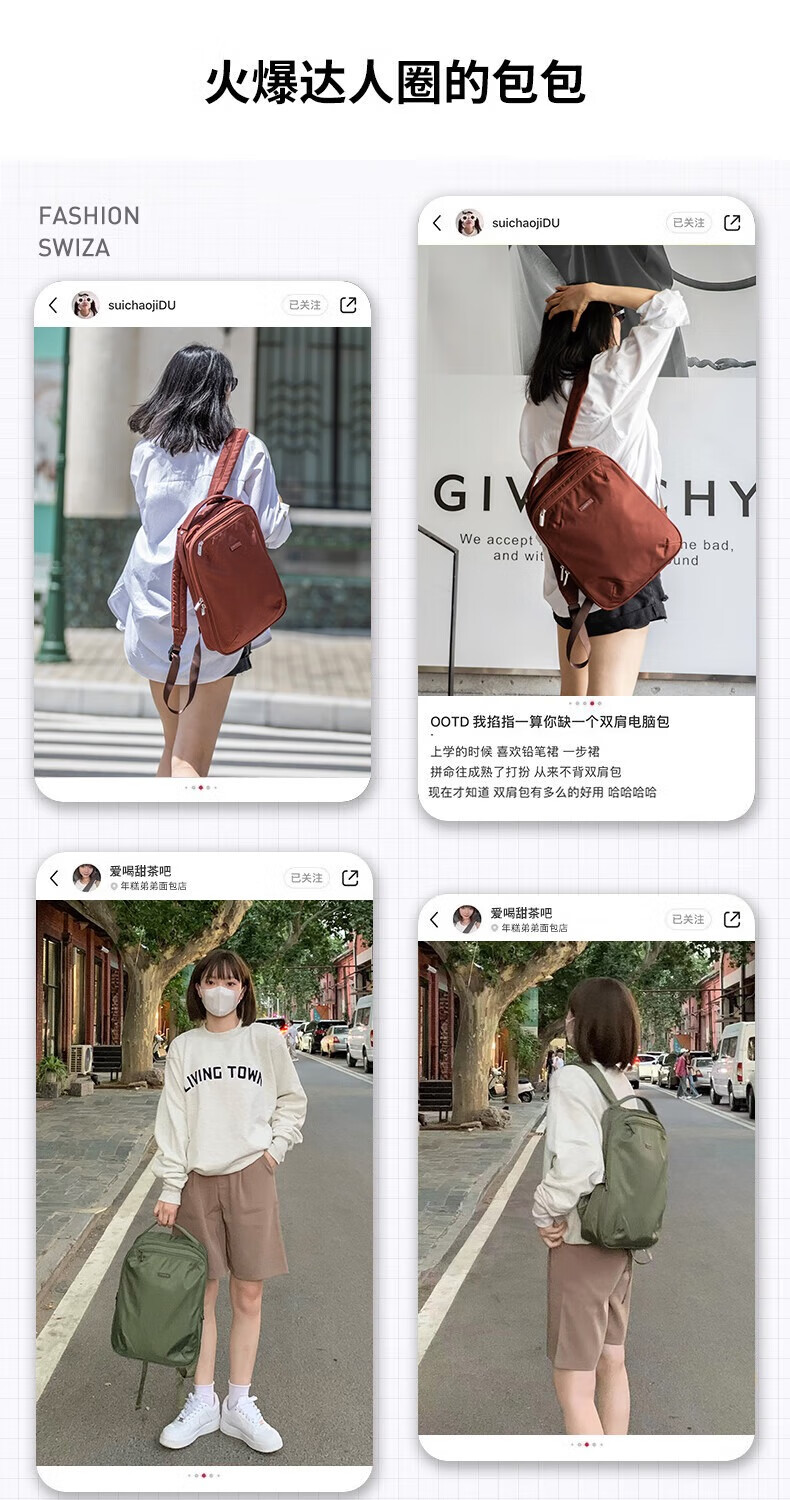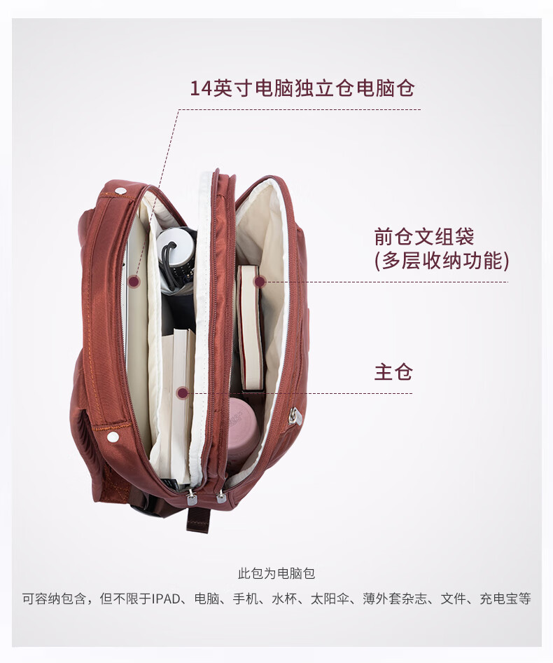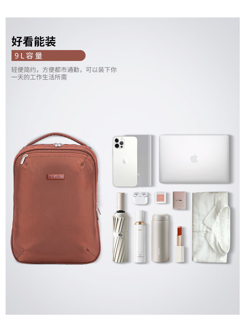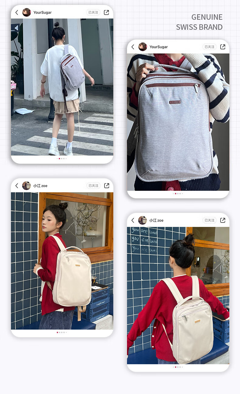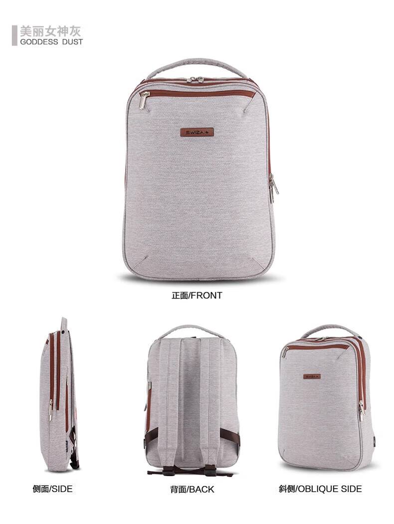 SWIZA电脑包双肩包14英寸笔记本背包大容量出差商务轻薄背包 太妃色