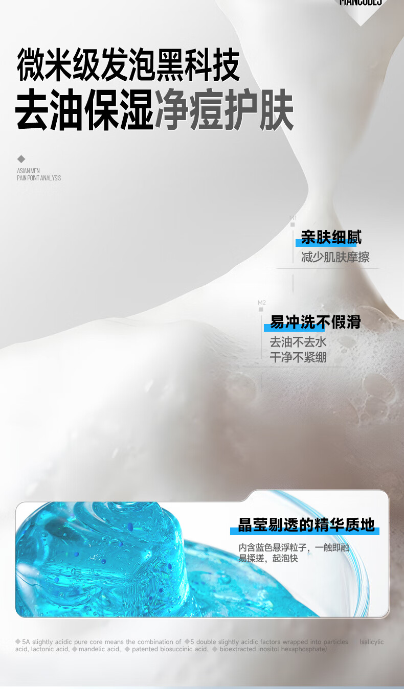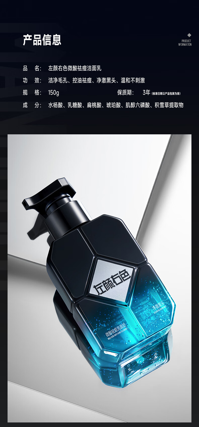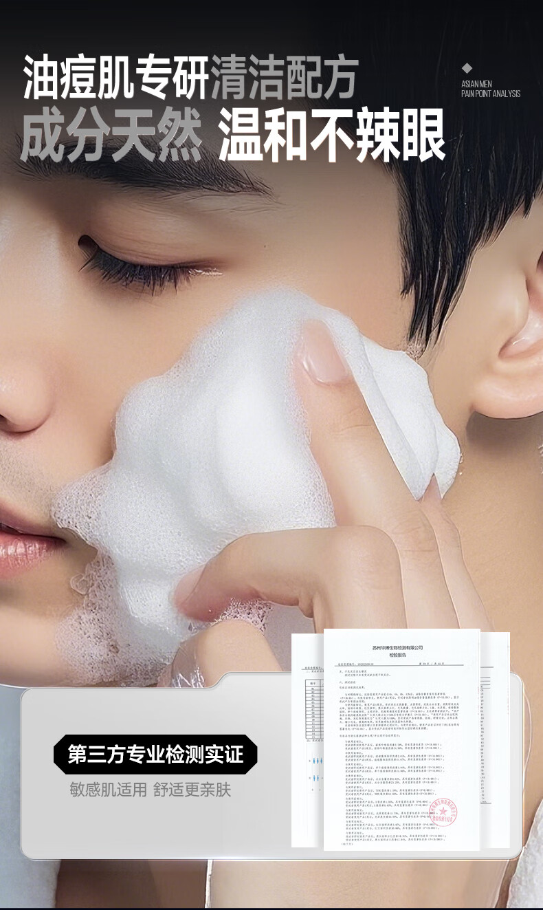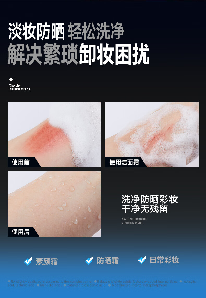 左颜右色男士微酸洗面奶水杨酸祛痘洁面乳控油去黑头缩毛孔补水保湿护肤品