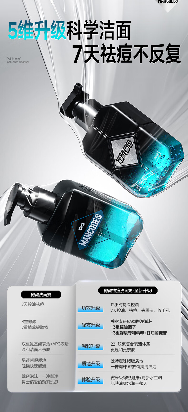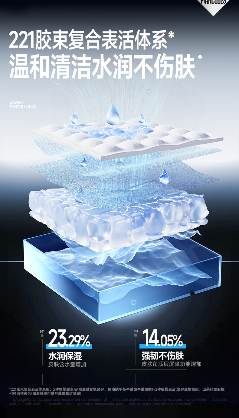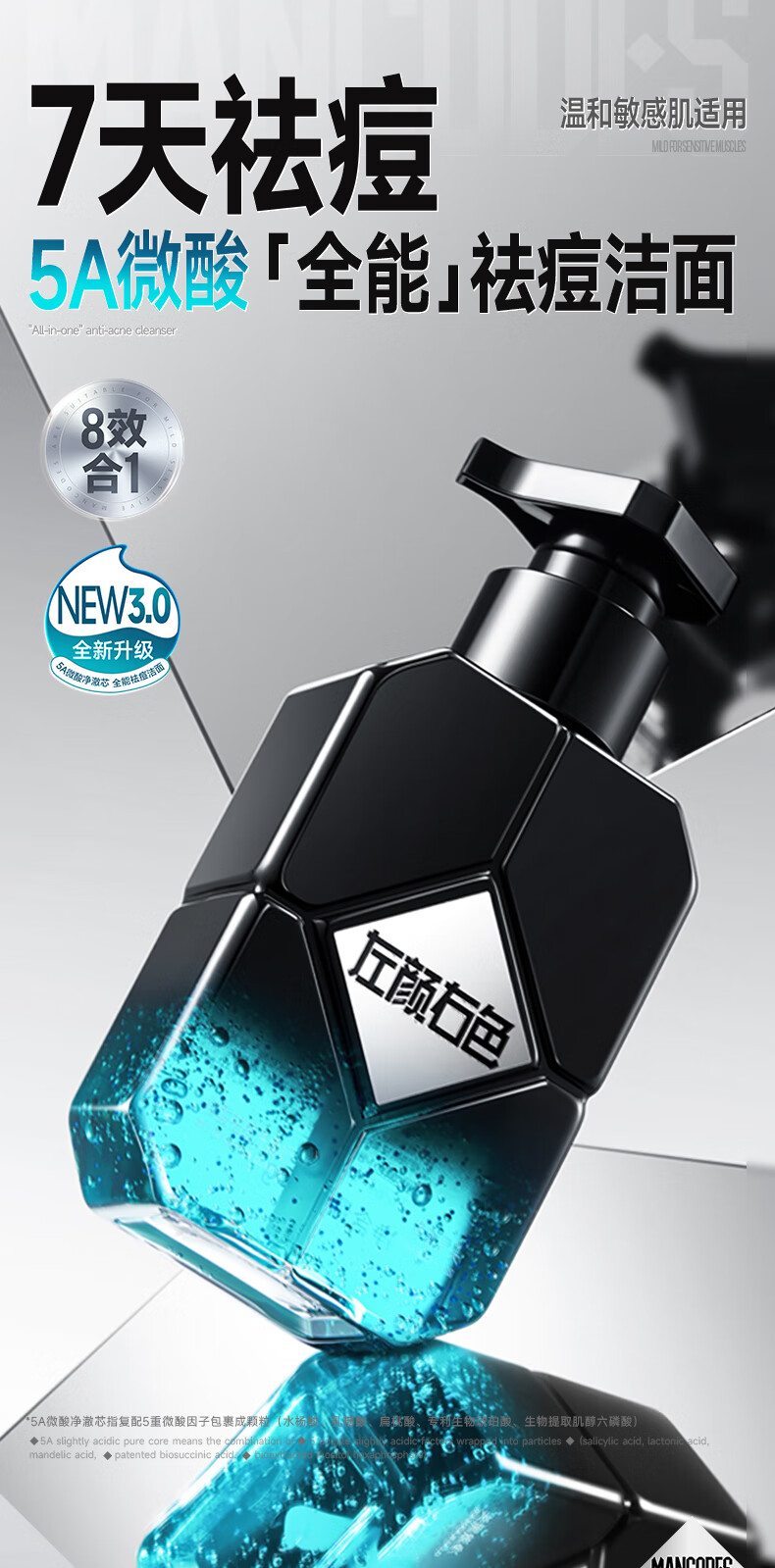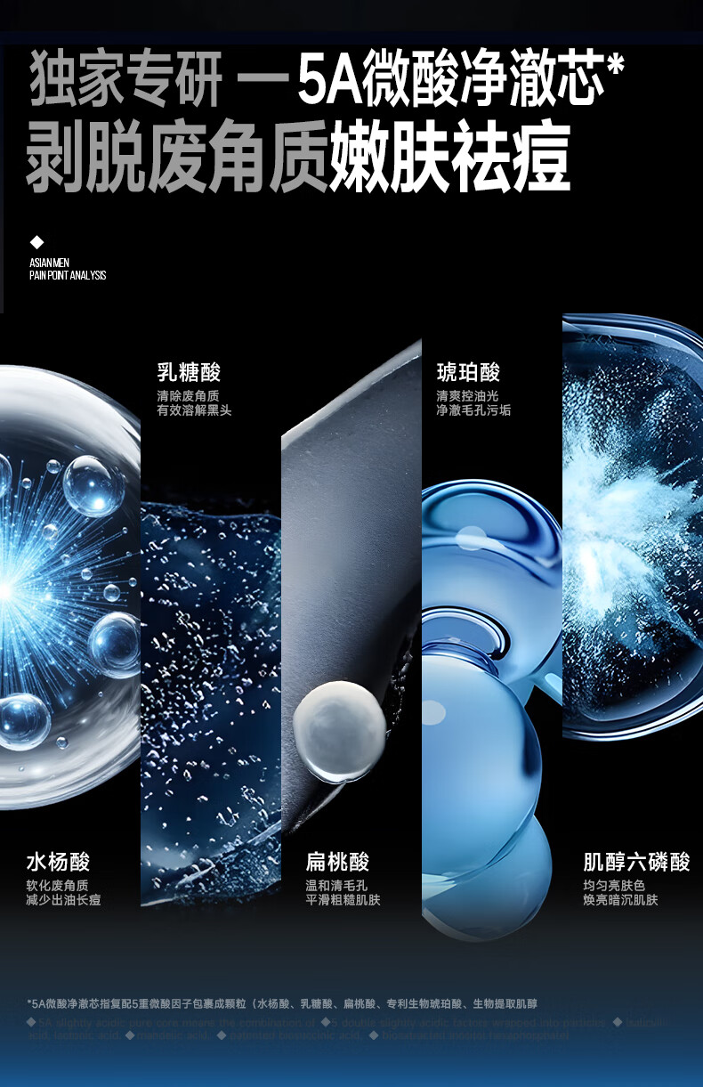 左颜右色男士微酸洗面奶水杨酸祛痘洁面乳控油去黑头缩毛孔补水保湿护肤品