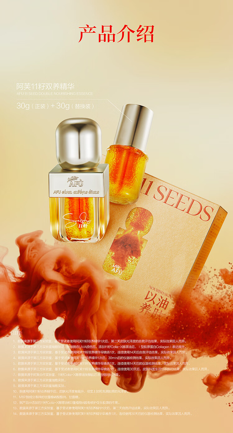 阿芙(AFU)【董洁代言】11籽双养精华双仓抗氧抗糖紧致淡纹护肤送礼物 礼盒装60g