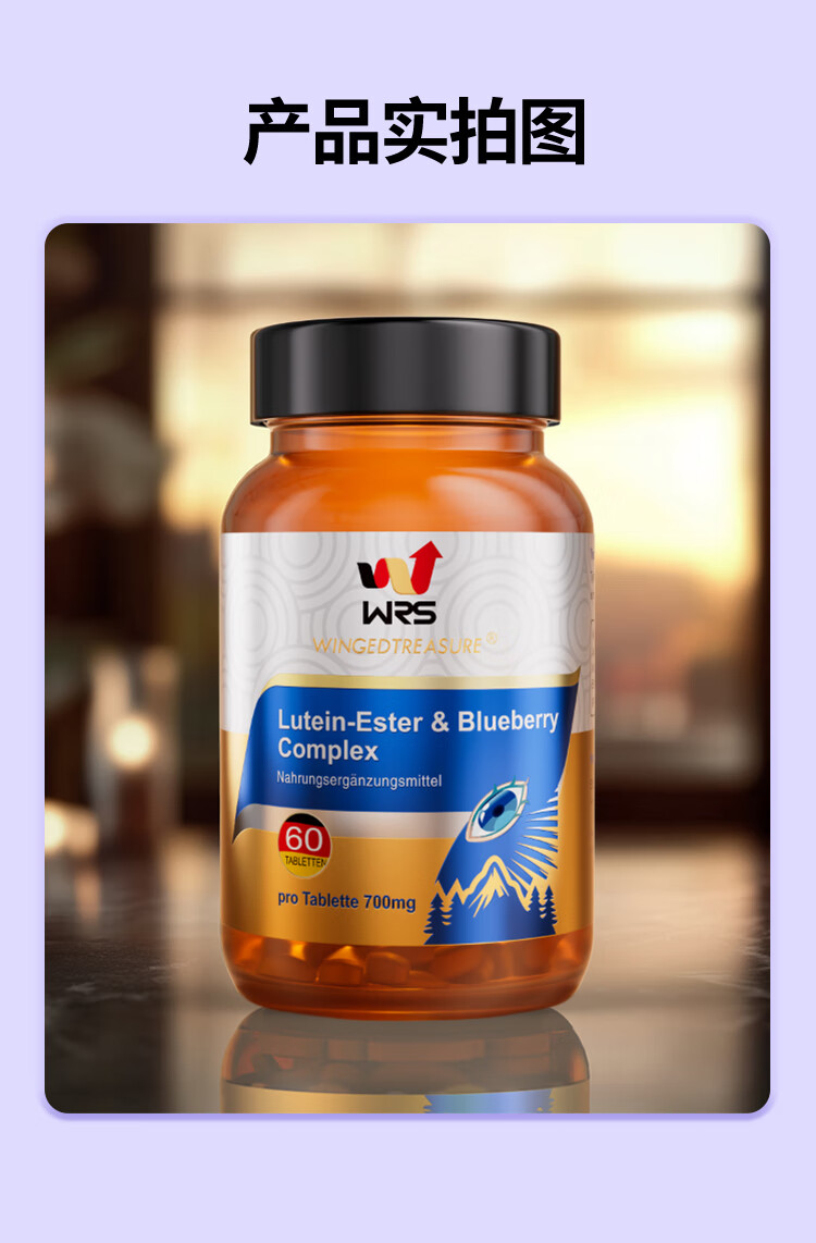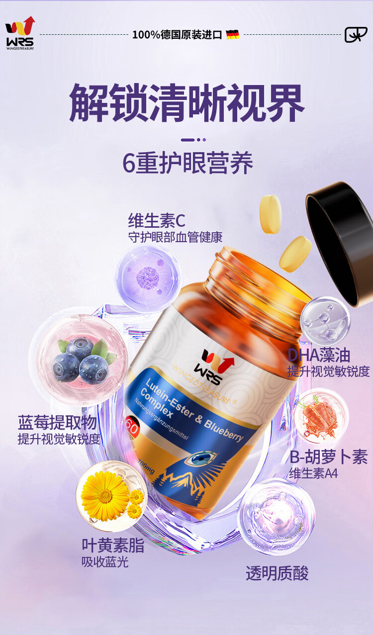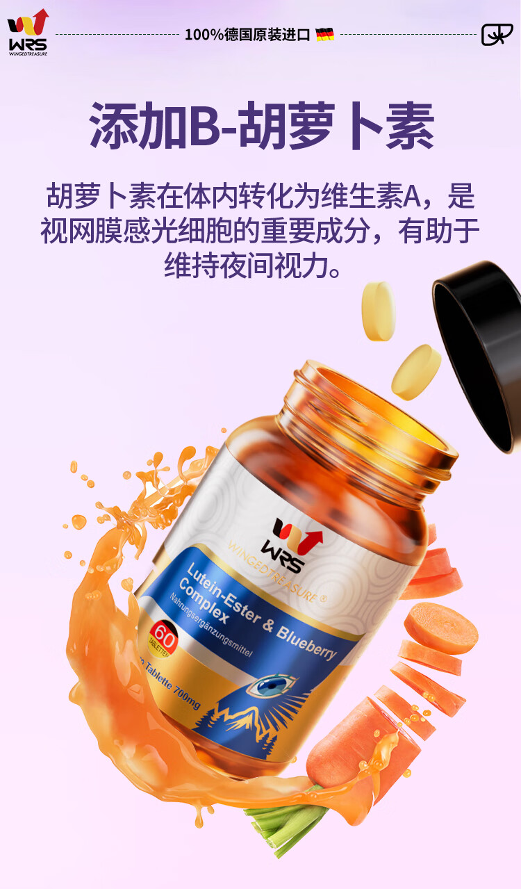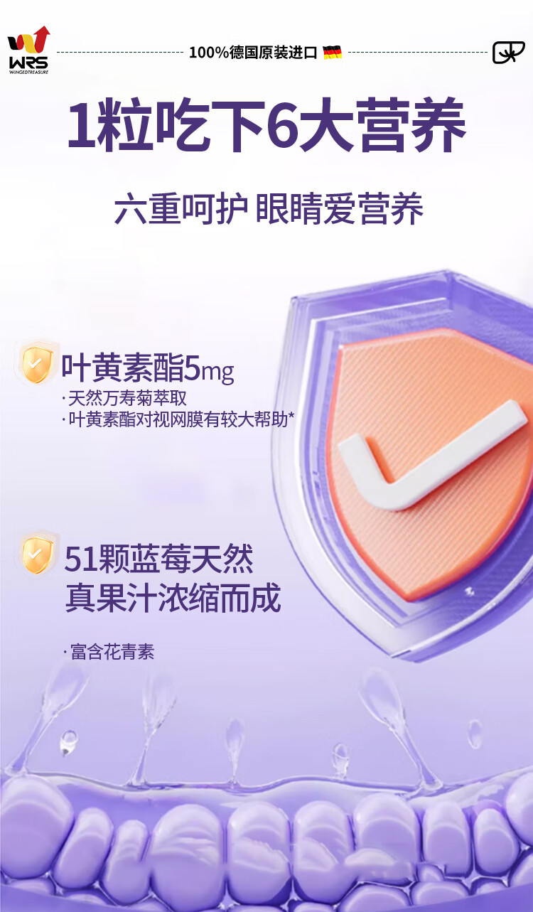 WRS德国原装进口蓝莓叶黄素护眼片剂眼干眼涩眼疲劳60粒/瓶 WRS叶黄素蓝莓片