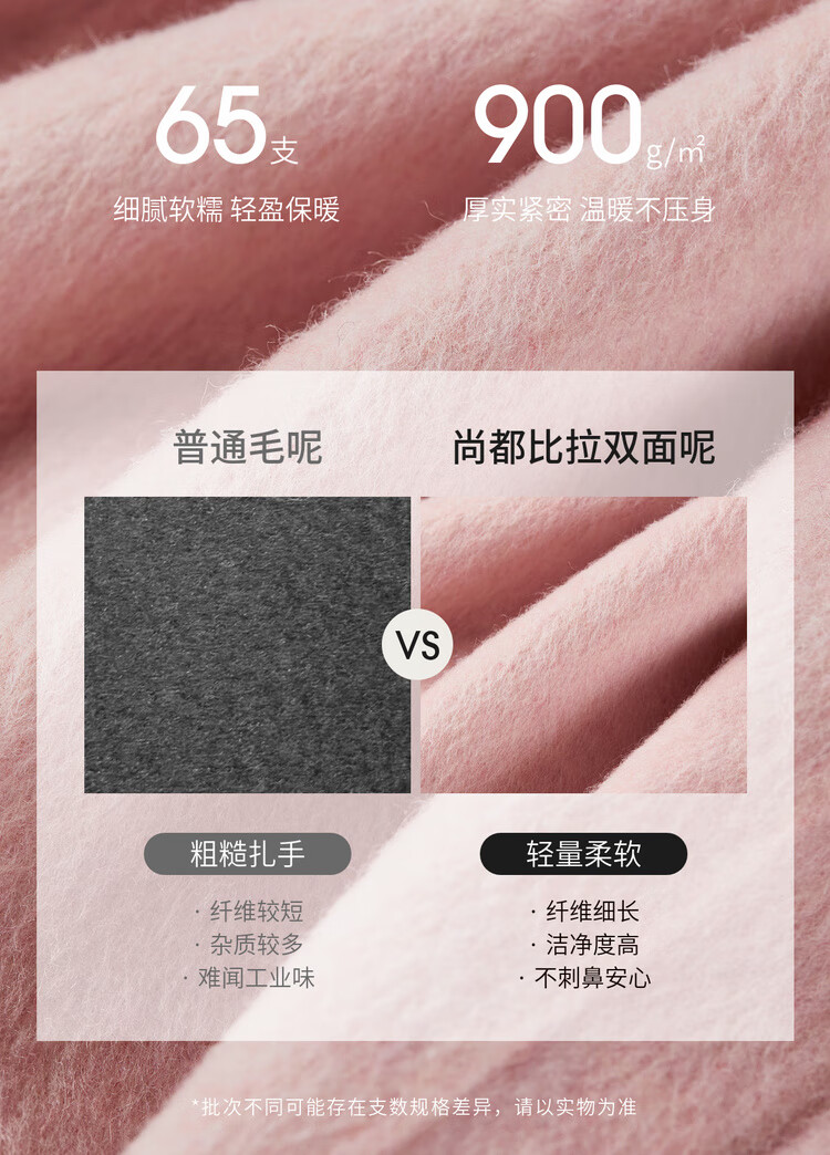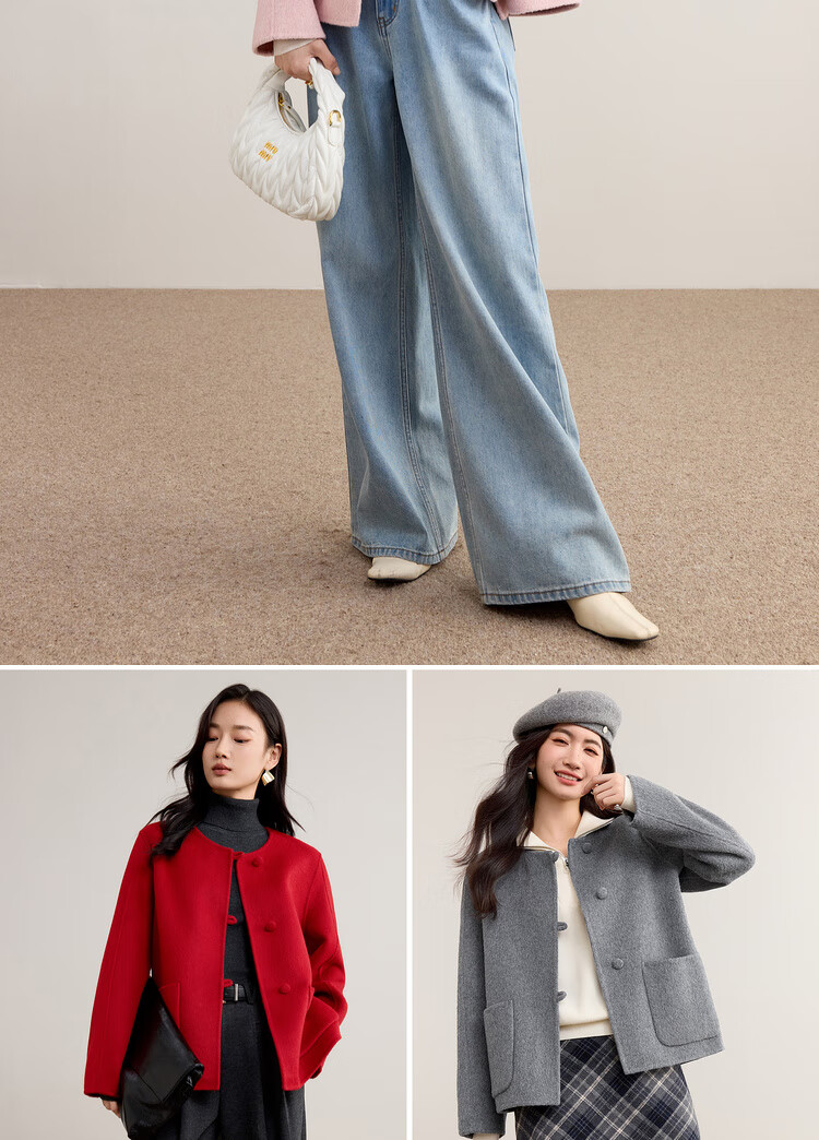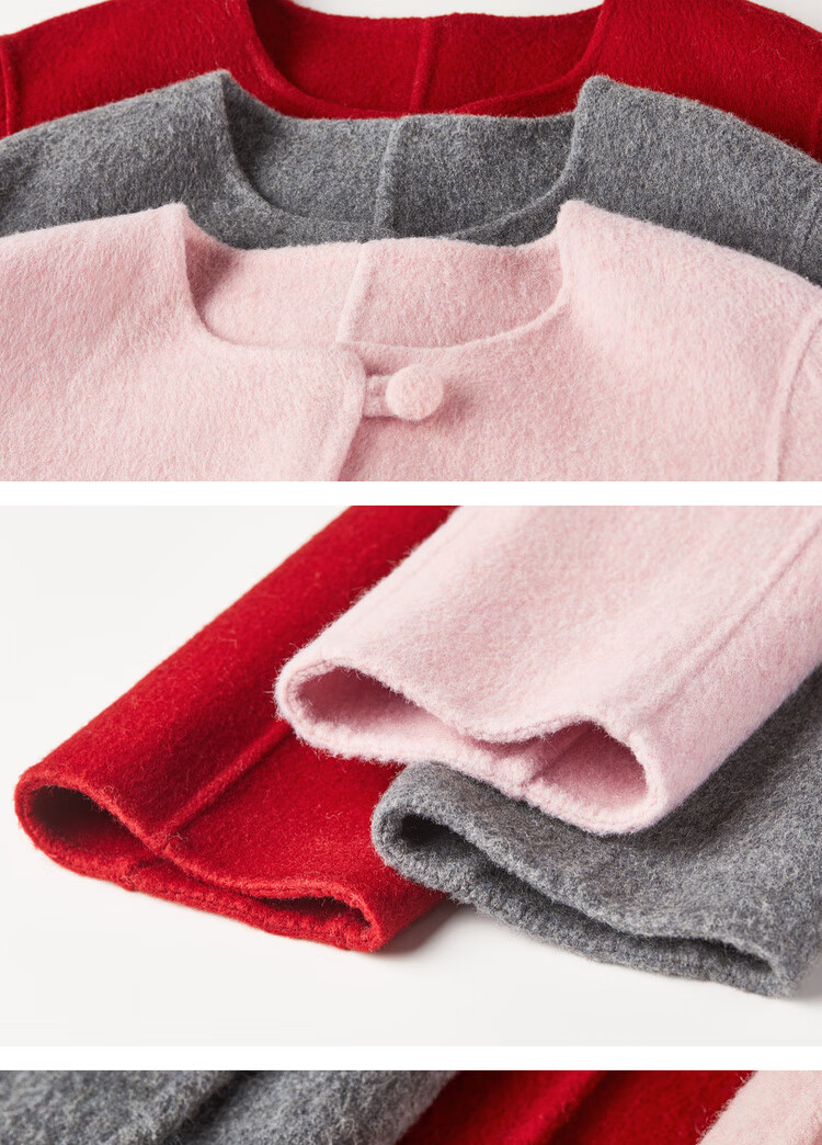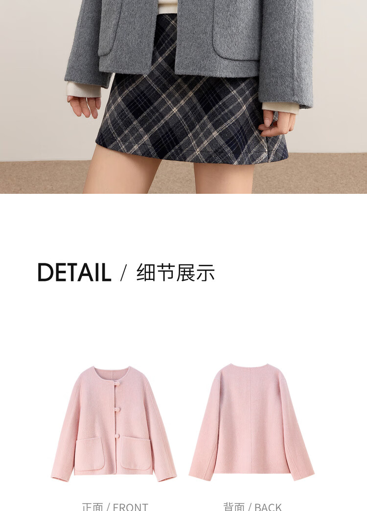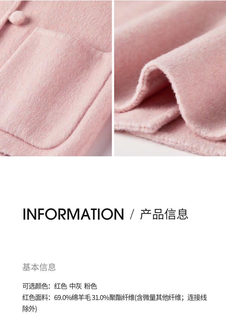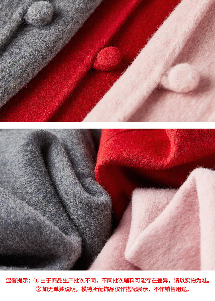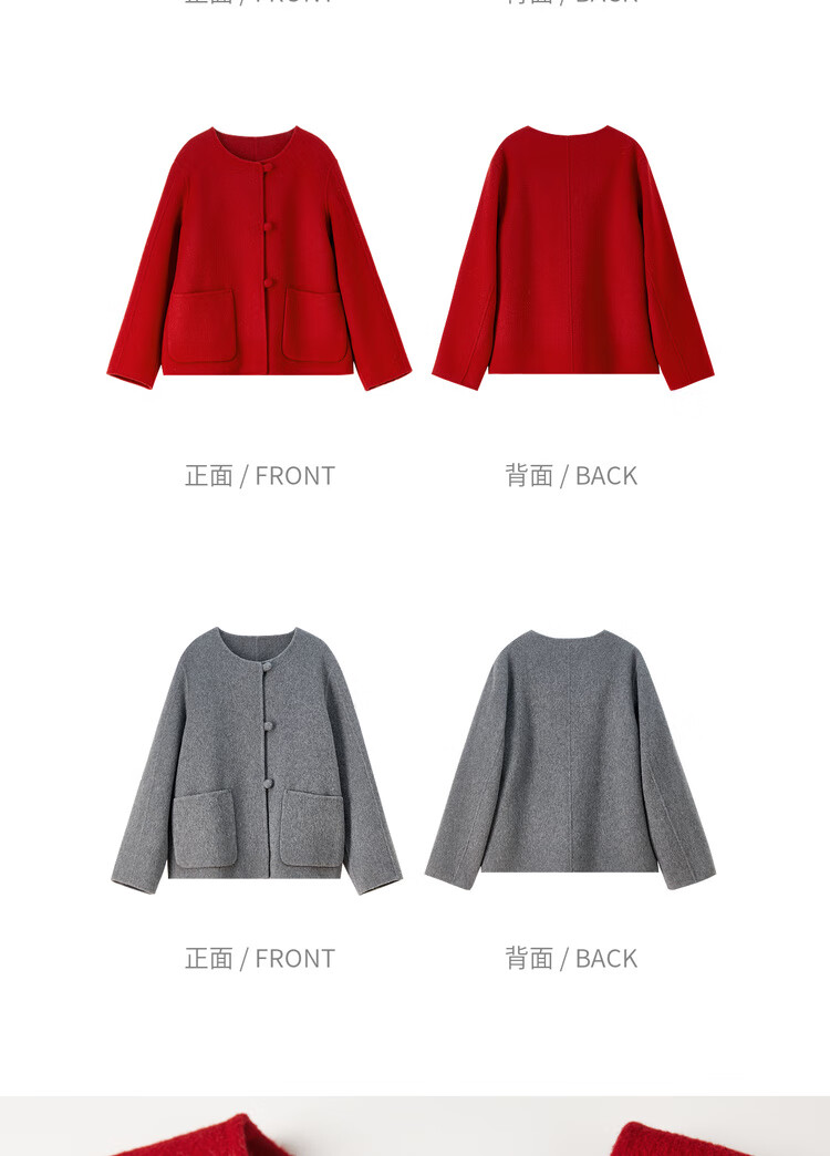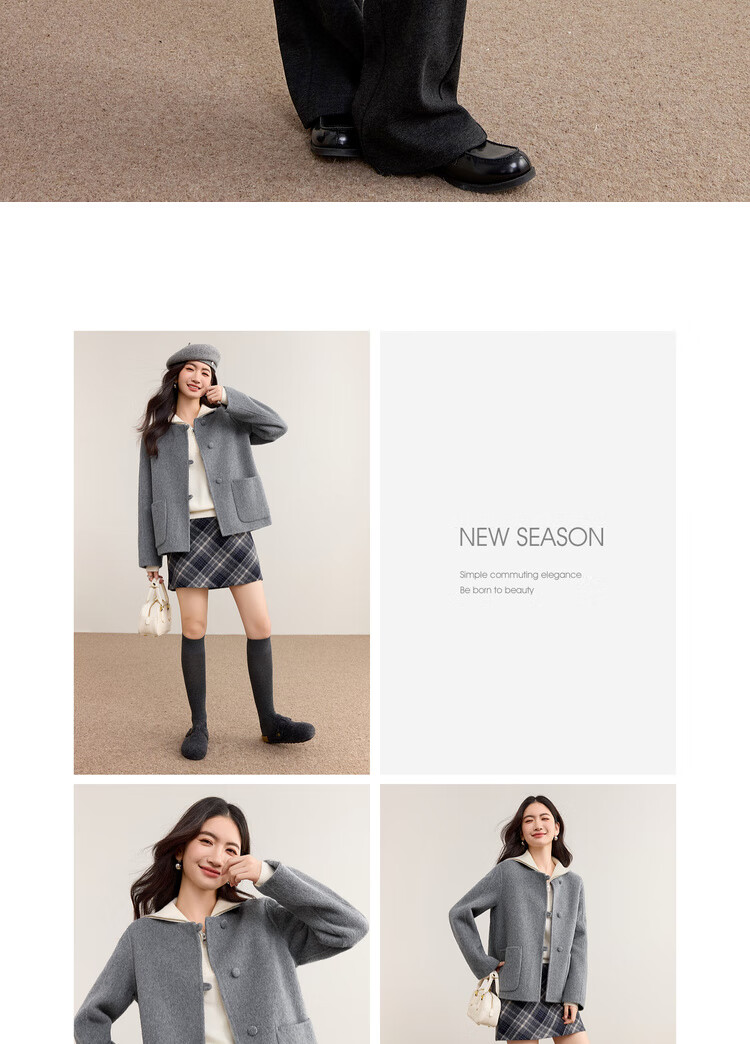 尚都比拉含绵羊毛保暖毛呢大衣女冬季名媛风圆领厚双面呢直筒外套轻奢开衫