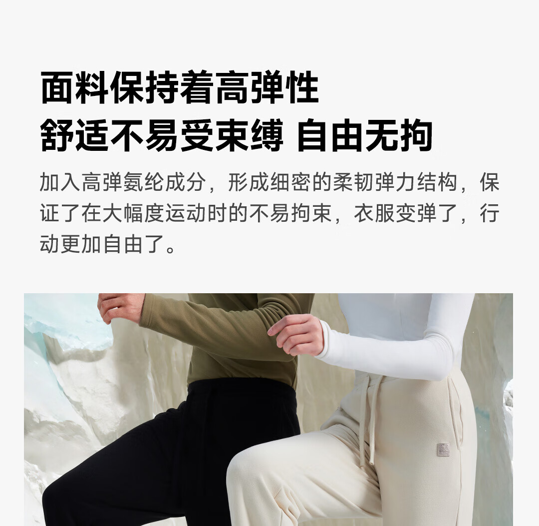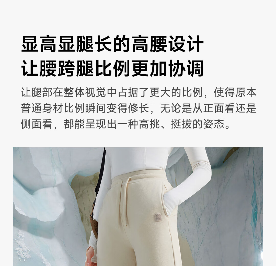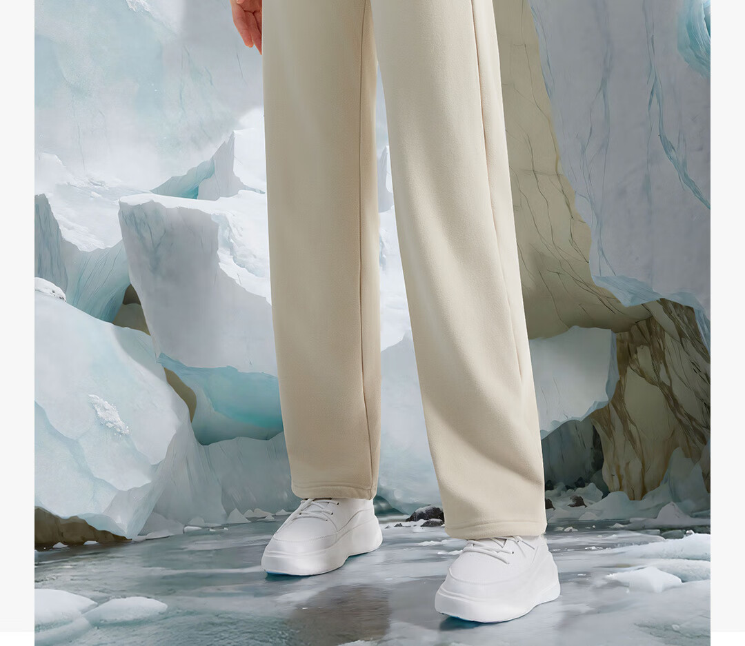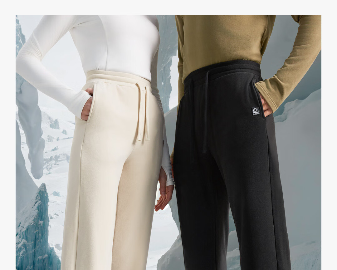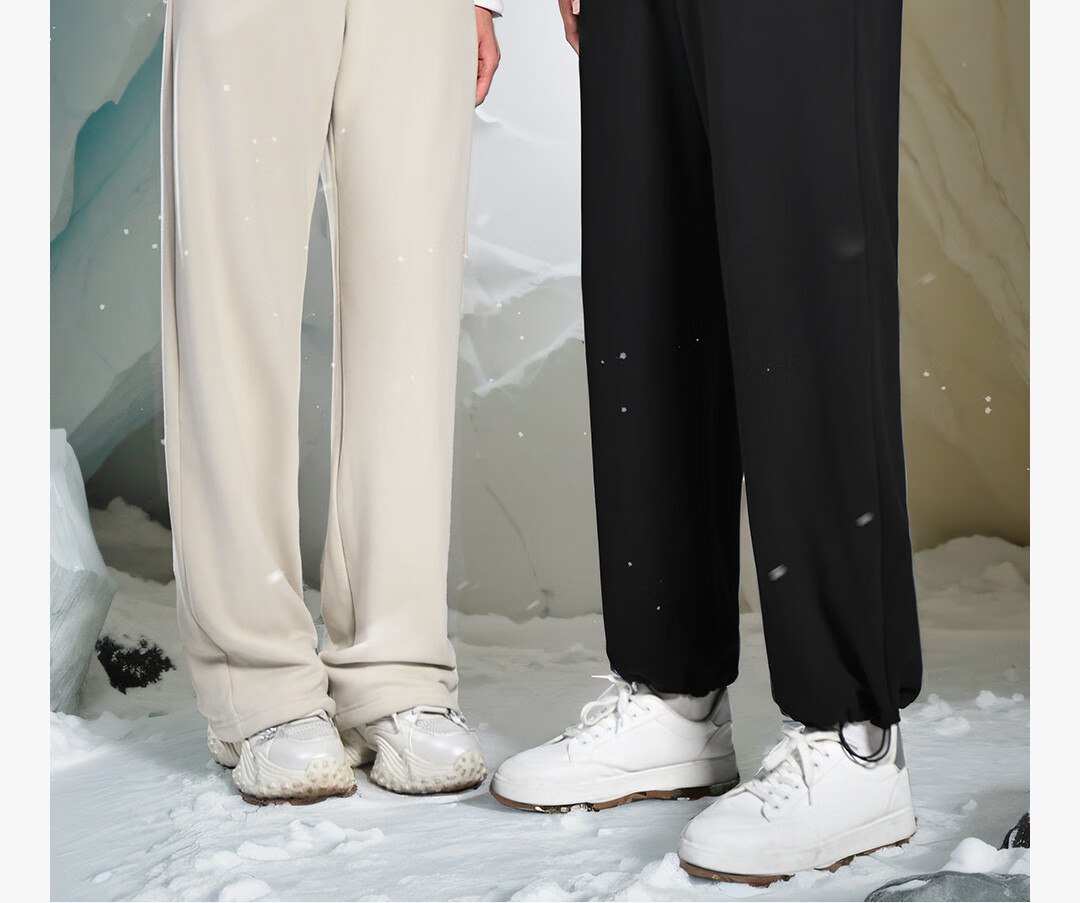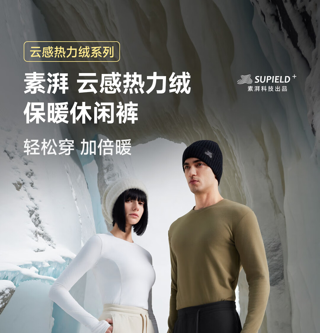 素湃云感热力绒宽松卫裤高弹秋冬保暖休闲裤男女长裤子 奶杏米 M